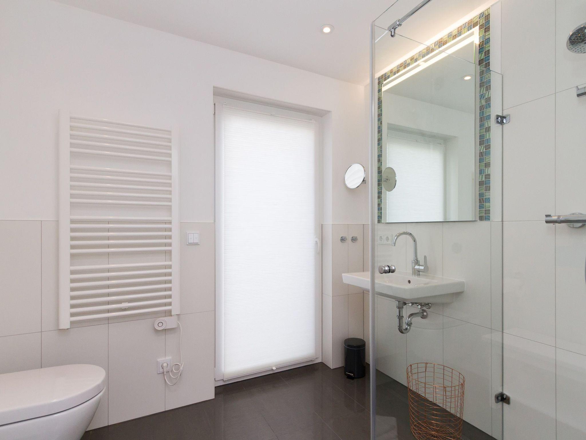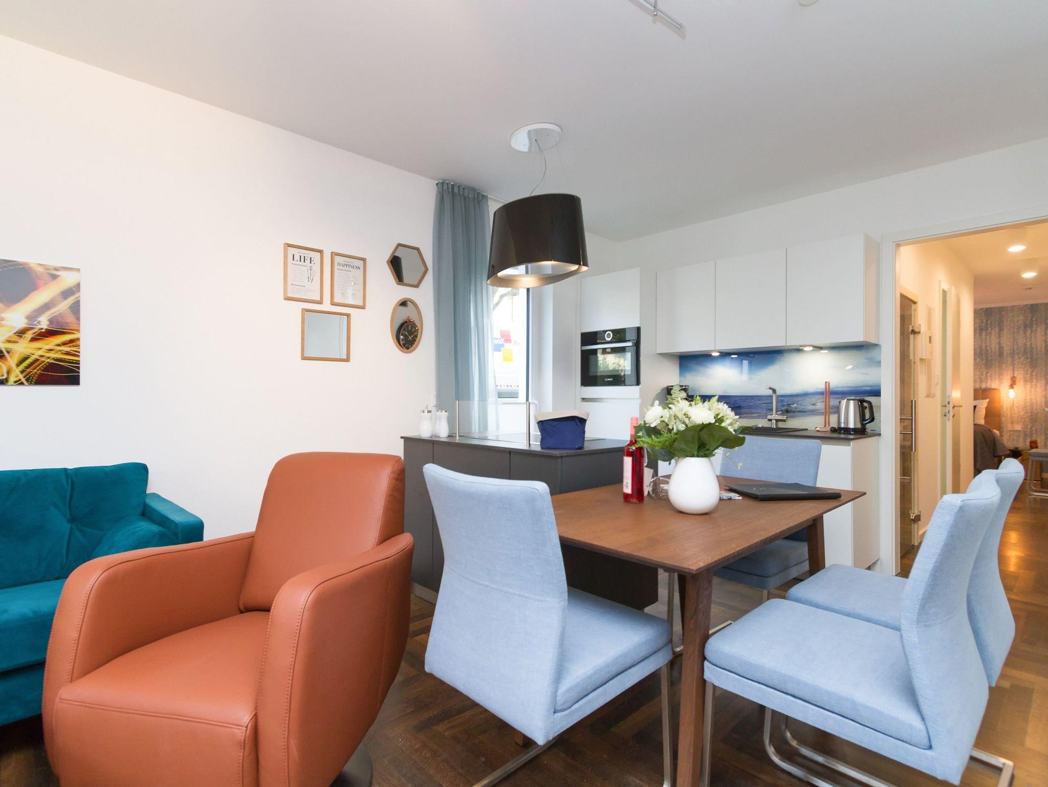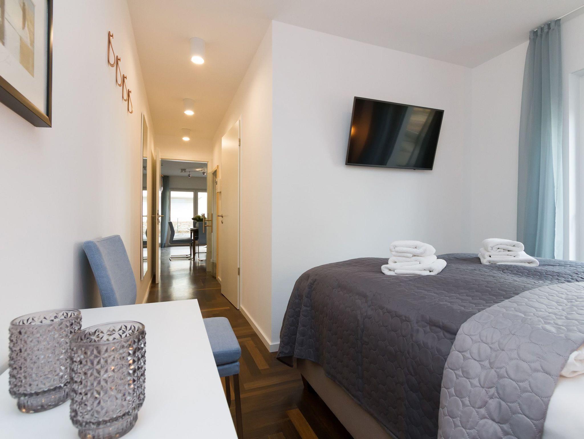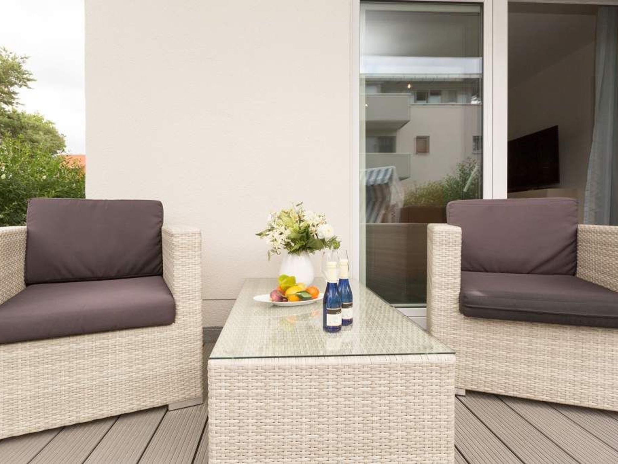 In der Ferienwohnung 01 (Erdgeschoss) erwartet Sie eine frische, moderne Urlaubswelt, die durch Hochwertigkeit, Stil und geschmackvolle Ausstattung überzeugt. Klare Linien - dennoch kuschelig, moderne Farben und cooler Style. Die von Innenarchitektenhand designte 3-Raum-Ferienwohnung (60 qm) ist für 2 bis 4 Personen (inklusive Kleinkind) ideal, um erholsame Tage auf Ihrer Lieblingsinsel zu verbringen. Schon nach dem Eintreten öffnet sich der Blick in den Wohnbereich mit gemütlicher Sitzgruppe, Flat-TV und modernem Elektrokamin, der per Knopfdruck Wohlfühlatmosphäre schafft. Der gut ausgestattete Küchenbereich mit schönem Essplatz schließt sich an. Das erste Schlafzimmer ist mit einem komfortablen Boxspringbett (1,80m x 2,00m), Einbauschrank und Flat-TV ausgestattet. Von hier hat man ebenfalls Zugang zur Terrasse und zum eigenen kleinen Duschbad mit WC. Das zweite Schlafzimmer verfügt über ein komfortables Boxspringbett (1,60m x 2,00m) und einen Flat-TV, auch hier steht ein eigenes Duschbad mit WC zur Verfügung. Klein aber fein, die wohnungseigene Sauna bietet nicht nur in der kalten Jahreszeit eine erholsame Abwechslung. Das Appartement punktet nicht nur innen, auch die großzügige Nord-West Terrasse (20qm) verspricht Usedomer Sonne, ausgestattet mit wertigen Gartenmöbeln und einem Strandkorb, lässt es sich hier wunderbar entspannen. Für Ihren Komfort sind die Betten bei der Anreise bezogen und Handtücher liegen bereit. Ein Pkw-Stellplatz steht in der Tiefgarage zur Verfügung (max. Einfahrtshöhe 1,93 m). Für den Tag am Meer steht Ihnen als besonderes Bonbon von Mitte Mai bis Ende September (je nach Witterung) ein Strandkorb am Strand kostenlos zur Verfügung.