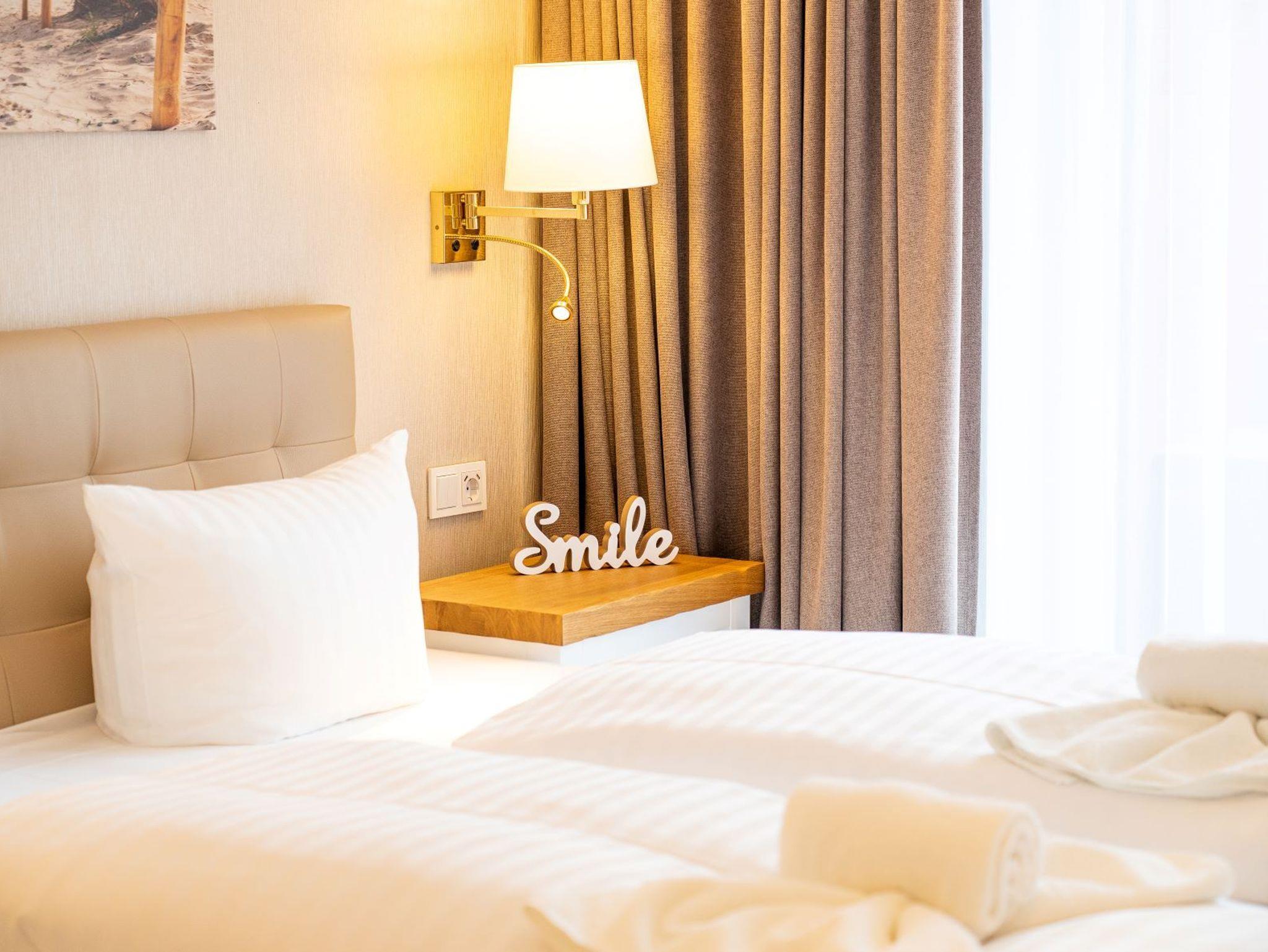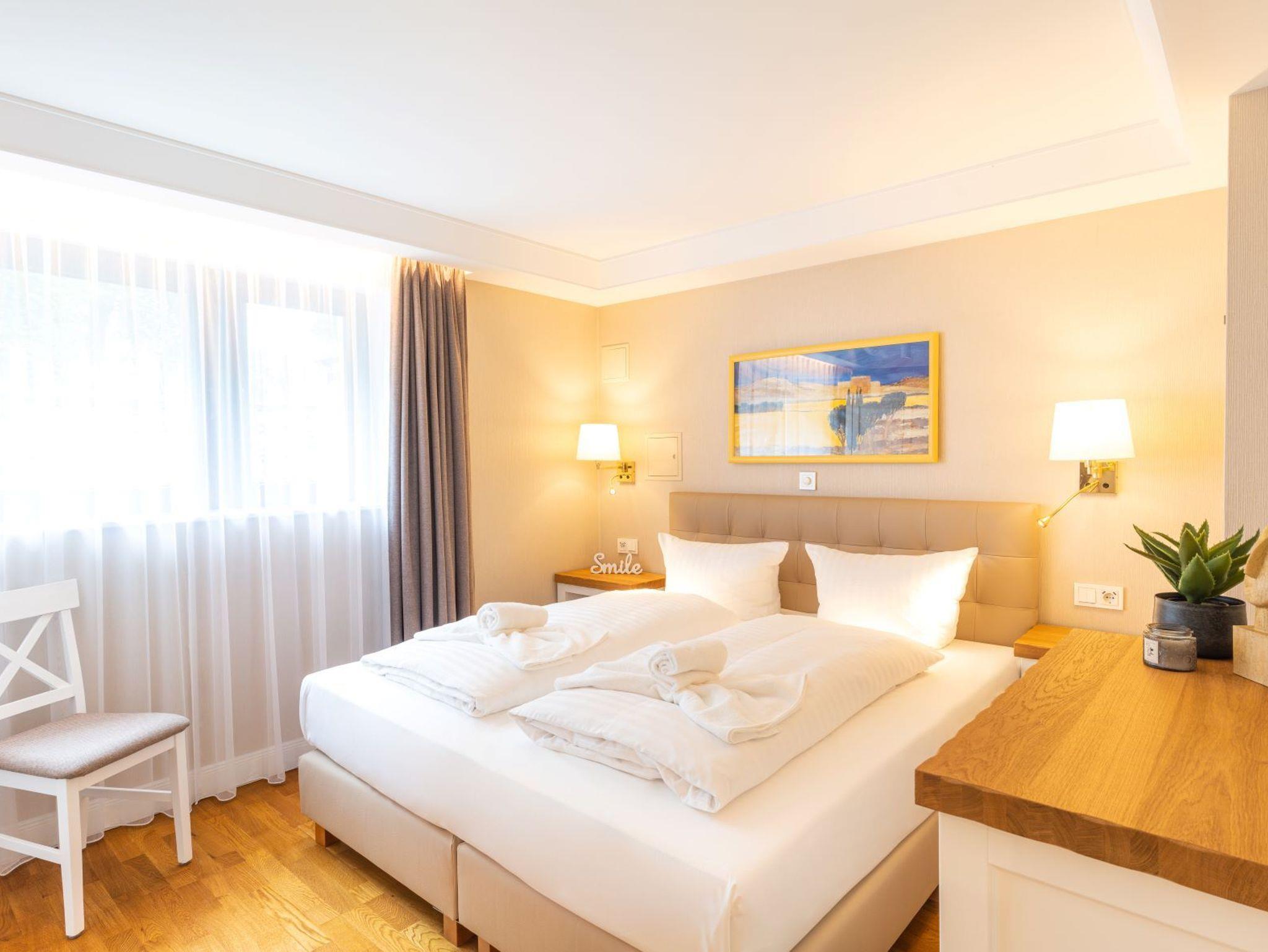 Damit Sie Ihre wohlverdiente Urlaubszeit bereits am Anreisetag in vollen Zügen genießen können haben wir das Bett für Sie und das für Ihre lieben Mitreisenden bereits bezogen und ein Duschtuch sowie ein kleines Handtuch bereitgelegt.
