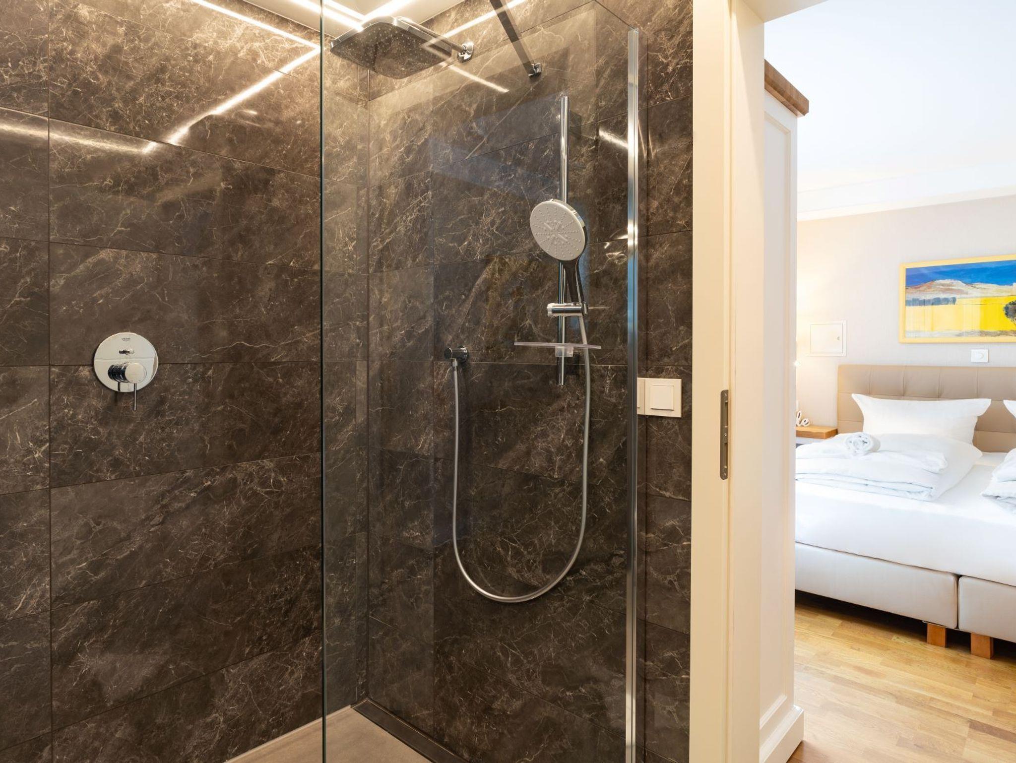 Zur Nachtruhe oder für ein Schlummerstündchen zwischendurch ziehen Sie sich in das angrenzende Schlafzimmer mit Doppelbett (180 x 200cm / zwei getrennte Matratzen) und Kleiderschrank zum Verstauen Ihrer Habseligkeiten zurück. Ein Einzelbett (90 x 200cm) kann als Aufbettung für die dritte Person im Schlafzimmer genutzt werden. Das zweite Schlafzimmer erreichen Sie vom Flur dieses verfügt über ein Doppelbett (180 x 200cm) sowie ein Bad en Suite mit Dusche, WC und einem Haartrockner. Ein zweites Badezimmer mit Dusche, WC und Haarfön ist vom Flurbereich des Appartements begehbar.