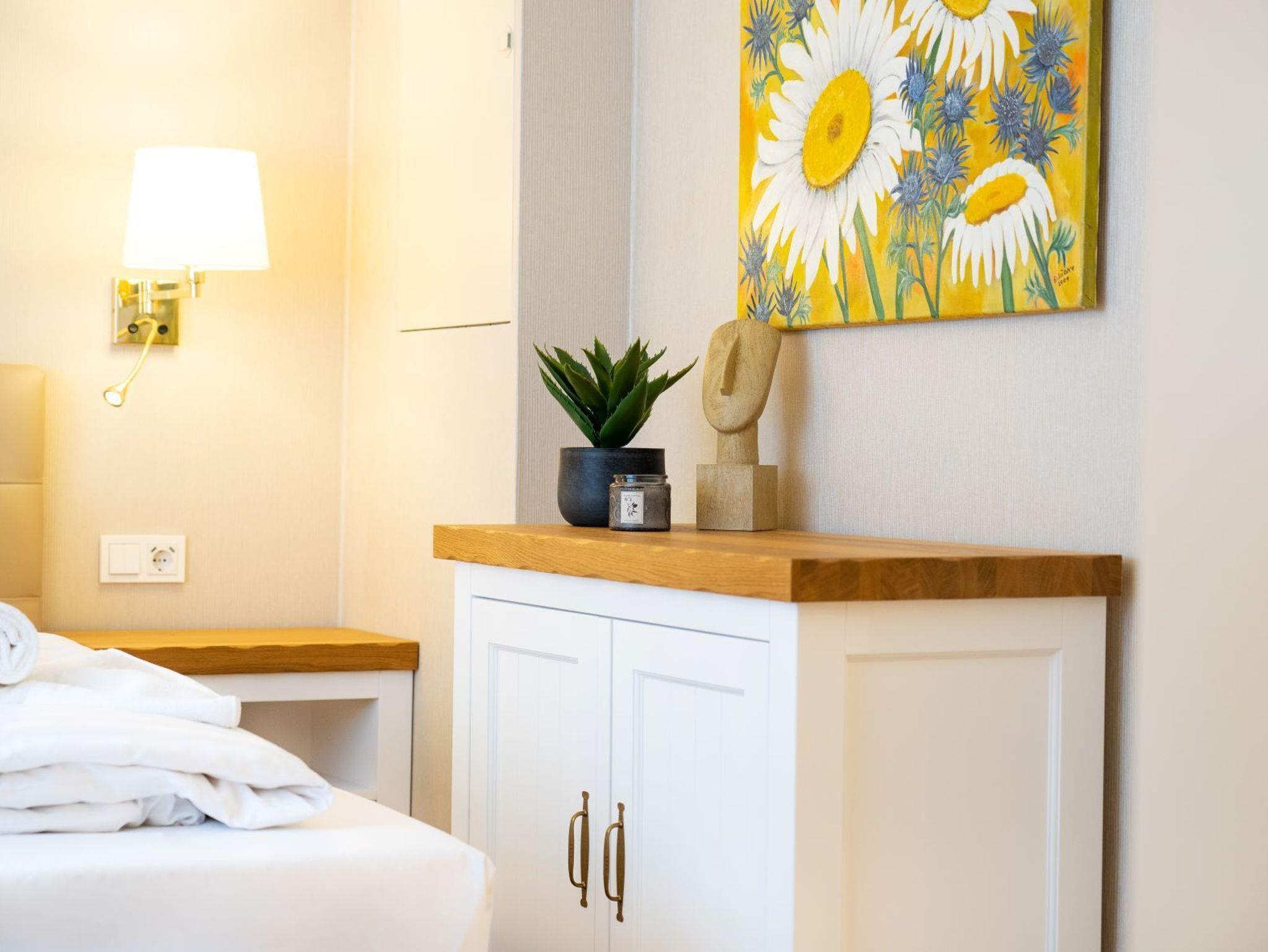 Im Schlafzimmer ist die Aufbettung mit einem Kleinkind bis 3 Jahre in einem Babyreisebett möglich. Das Babyreisebett können Sie gegen Gebühr hinzubuchen.