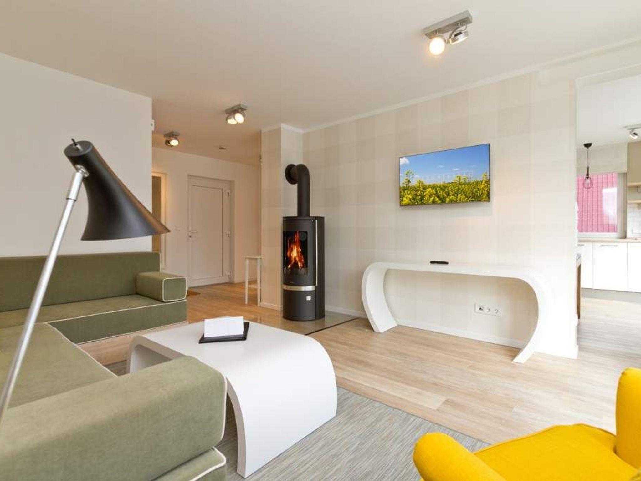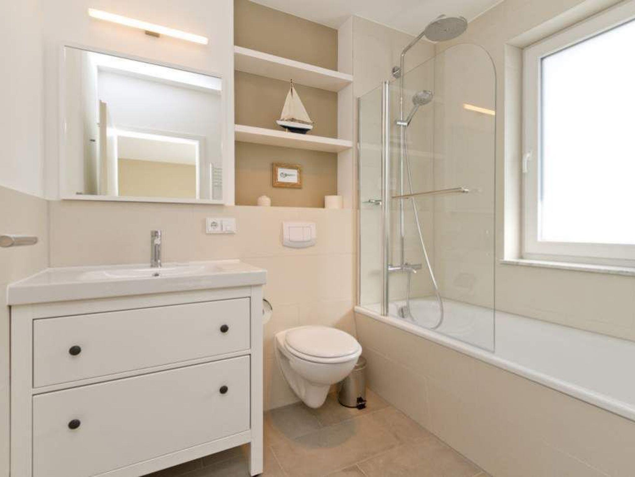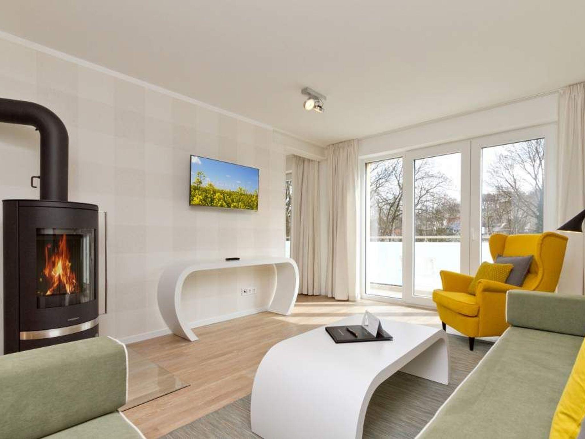 Wer luftige Leichtigkeit, viel Platz und eine stylische, minimalistische Einrichtung in einem harmonischen Farbkonzept liebt, wird sich in den beiden Etagen der Wohnung 6 absolut wohlfühlen. Wann haben Sie das letzte Mal gekocht, wie ein Sternekoch? Das tun Sie jeden Tag? Dann freuen Sie sich auf die großzügige und wunderschön gestaltete und komplett ausgestattete Küche. Metrofliesen und moderne Geräte verleihen der Küchenzeile ein schickes und funktionelles Design. Die große Arbeitsfläche aus Holz bietet reichlich Platz zum Austoben an Herd und Co. Ein schöner großer Holztisch lädt hernach zum ausgiebigen Schlemmen und Zusammensitzen ein. Spielt das Wetter mit, spricht nichts gegen ein Frühstück oder Abendessen auf dem Balkon. Da dieser nach Osten ausgerichtet ist, haben Sie hier schon zum Frühstück herrlichsten Sonnenschein und zum Nachmittag wunderbare Kühle an heißen Ostseesommertagen. Gleich nebenan wartet ein helles und großes Wohnzimmer mit Kaminofen und Flat-TV nur darauf, Ihnen schöne Stunden zu bescheren. Eine bequeme Design-Sofalandschaft und ein senfgelber Ohrensessel laden zum Entspannen ein. Auch von hier gibt es einen Zugang zum Balkon. Der knapp 81 Quadratmeter große Ferientraum setzt sich in einer zweiten Etage fort. In den beiden Schlafzimmern im schwedischen Landhausstil mit viel weißem Holz und sanften Naturtönen können bis zu vier Personen nächtigen. Ein Schlafzimmer besitzt ein großes Doppelbett (1,80 m x 2,00 m), einen Flat-TV und einen geräumigen Kleiderschrank. Außerdem gelangen Sie von hier ins schöne Masterbad mit Badewanne mit Regendusche, Waschtisch und WC. Das zweite Schlafzimmer beherbergt ein Boxspringdoppelbett (1,60 m x 2,00 m) und einen Kleiderschrank. Beide Zimmer haben Zugang zum umlaufenden Balkon. Die Wohnung verfügt über ein zweites Bad auf der Wohn- und Küchenetage. Dieses ist mit Dusche, Waschtisch und WC ausgestattet. Für einen rundum sorglosen Urlaub sind bei Anreise die Betten bezogen und Handtücher liegen bereit. Das WLAN kann kostenfrei genutzt werden. Ein Pkw-Stellplatz befindet sich am Haus.