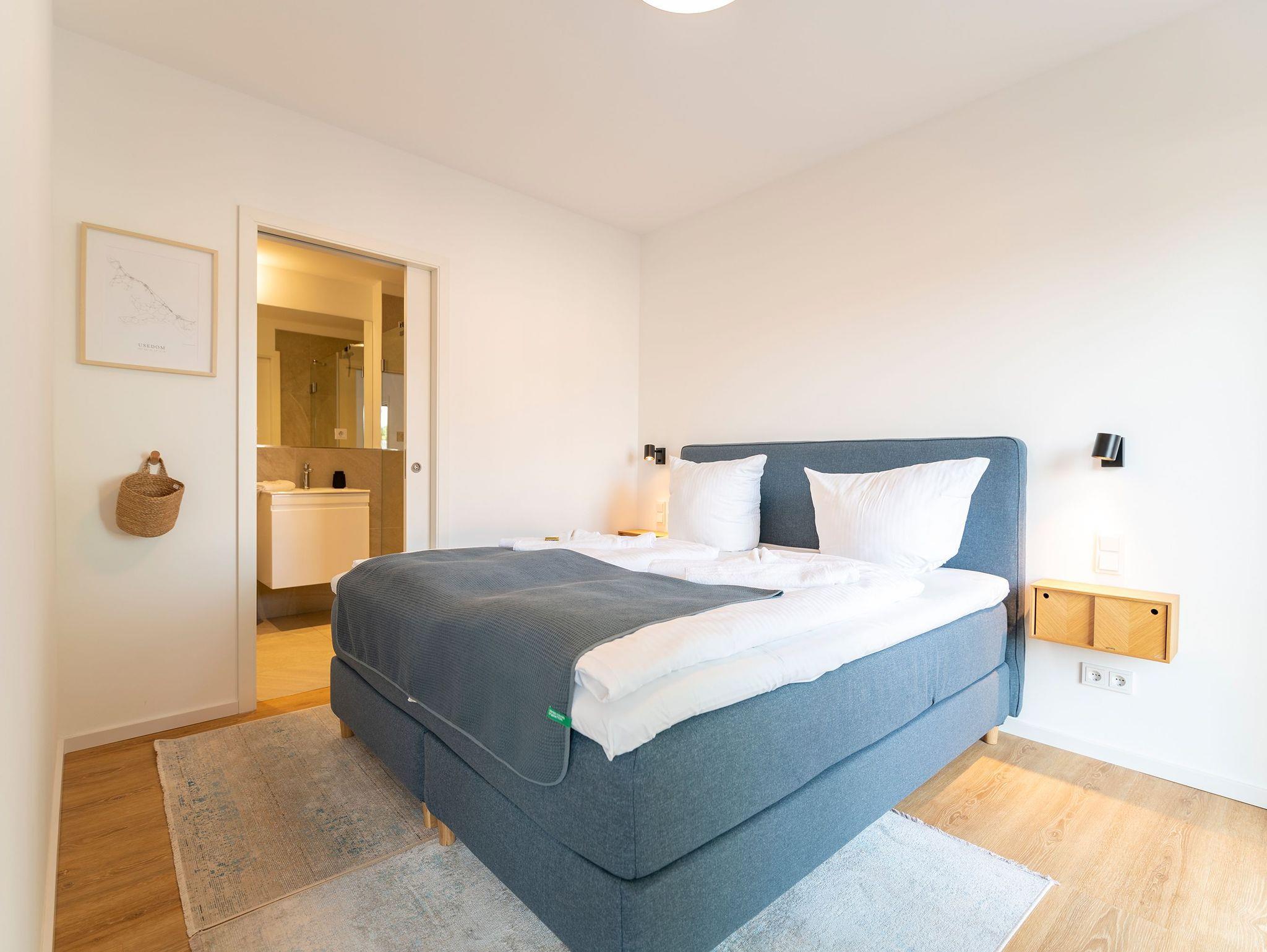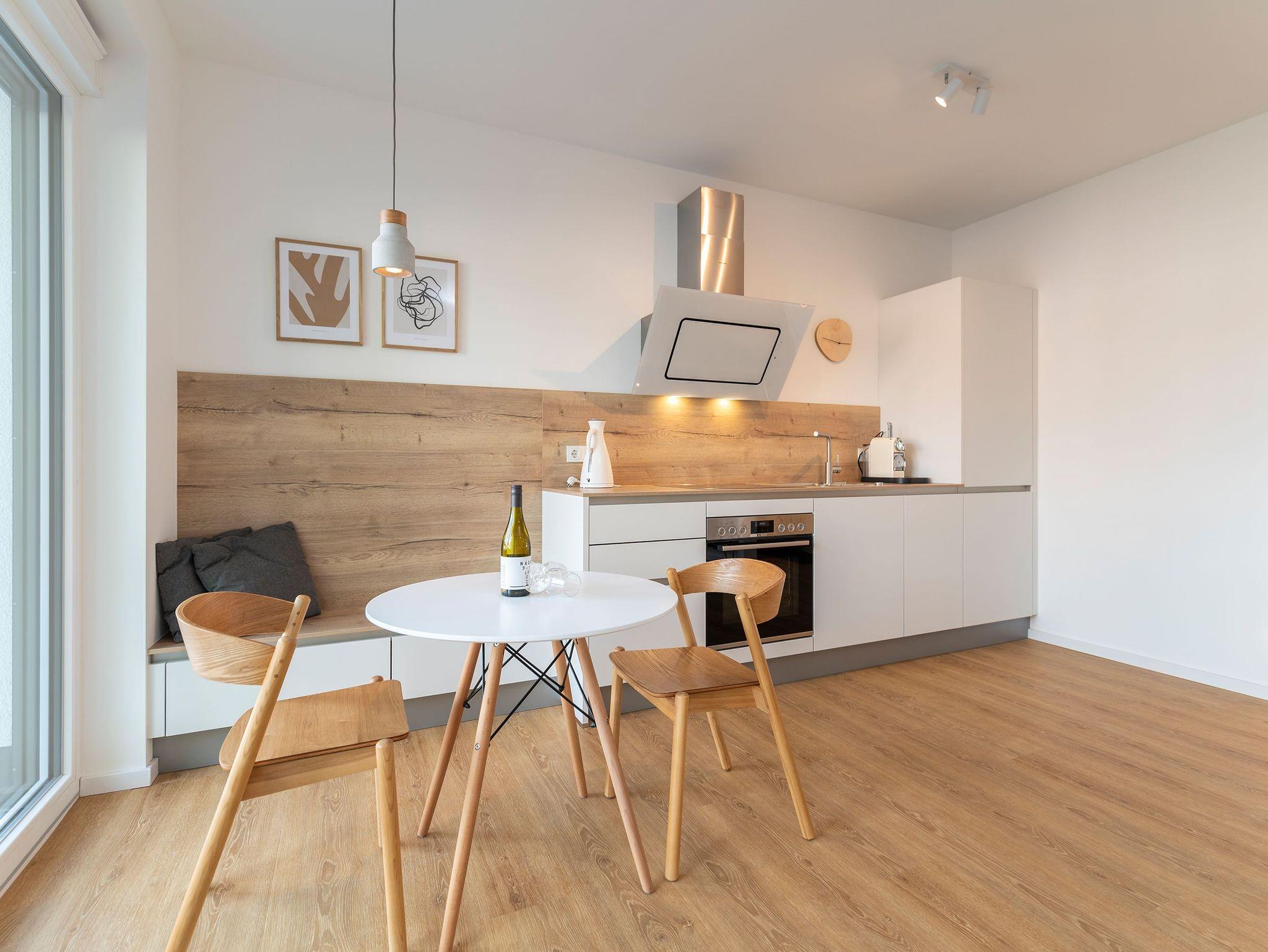 Die Wohnung 11 im Erdgeschoss empfängt bis zu 3 Personen und ein Kleinkind bis 2 Jahre, ideal für Familien oder kleine Gruppen, die Wert auf Komfort und Stil legen. Genießen Sie das hochwertige Boxspringbett im Schlafzimmer und ein zusätzliches Schlafsofa im lichtdurchfluteten Wohn- und Essbereich. Die Küchenzeile, ausgestattet mit einer Nespressomaschine, und der schöne Essplatz bieten alles für gemütliche Mahlzeiten.