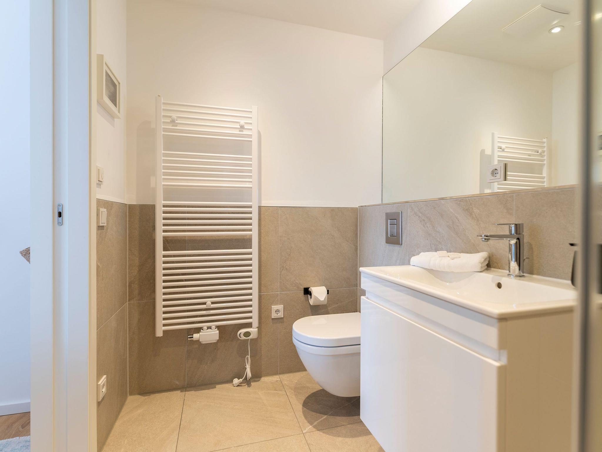Die Wohnung besticht durch moderne, hyggelige Einrichtung und geschmackvolle Dekorationen, die einen ansprechenden Urlaub garantieren. Ein modernes Badezimmer mit Dusche und ein großer Abstellraum für Ihre Koffer erhöhen den Komfort. Auf der privaten Terrasse mit Gartenmöbeln können Sie die Morgensonne bei einer Tasse Kaffee genießen. Kostenfreies WLAN und ein Tiefgaragenparkplatz, sowie ein Fahrradraum für Ihre Fahrräder, runden das Angebot ab.