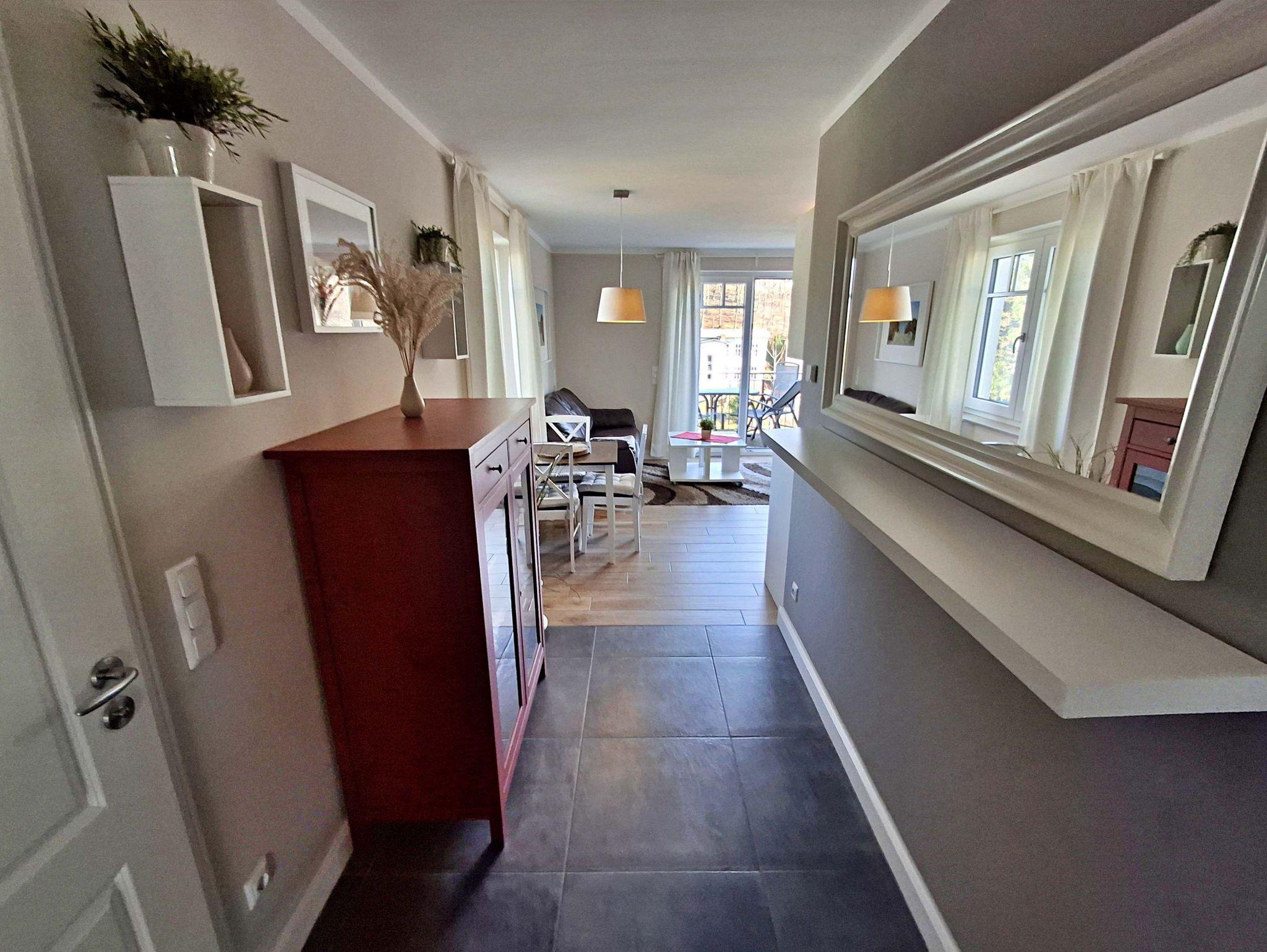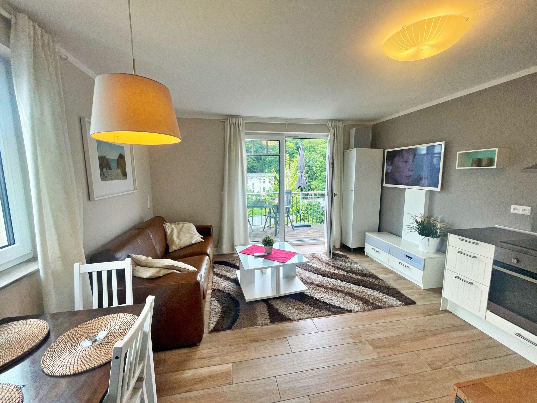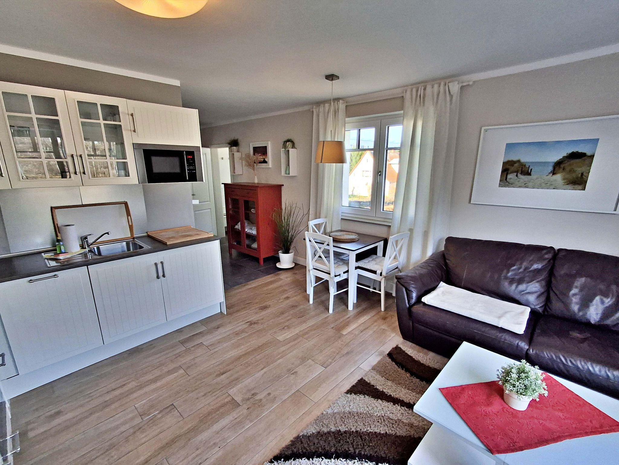 Diese einladende und charmante Unterkunft im zweiten Obergeschoss bietet Platz für bis zu 4 Personen und ist der perfekte Ort für einen erholsamen Urlaub im malerischen Heringsdorf. Die Ferienwohnung verfügt über eine voll ausgestattete Wohnküche, in der Sie mit Herd, Backofen, Spülmaschine, Mikrowelle und Kaffeemaschine alles finden, was Sie für Ihre kulinarischen Abenteuer benötigen. Der gemütliche Wohnbereich lädt zum Entspannen ein und bietet eine Schlafcouch, die Platz für zwei weitere Gäste bietet, sowie einen Flachbild-TV und eine einladende Sitzecke. Das Tageslicht-Badezimmer ist mit einer Dusche und WC ausgestattet und sorgt für zusätzlichen Komfort. Das liebevoll eingerichtete Schlafzimmer mit Doppelbett und Flat-TV verspricht erholsame Nächte. Vom Wohnzimmer aus gelangen Sie auf den Balkon - der ideale Ort, um die frische Luft zu genießen oder um mit einem Kaffee in den Tag zu starten. Für Ihren Pkw steht ein Parkplatz direkt am Haus zur Verfügung und auch Ihre Fahrräder finden in der bereitgestellten Unterstellmöglichkeit einen sicheren Platz. Selbstverständlich ist auch das WLAN-Netz kostenfrei.