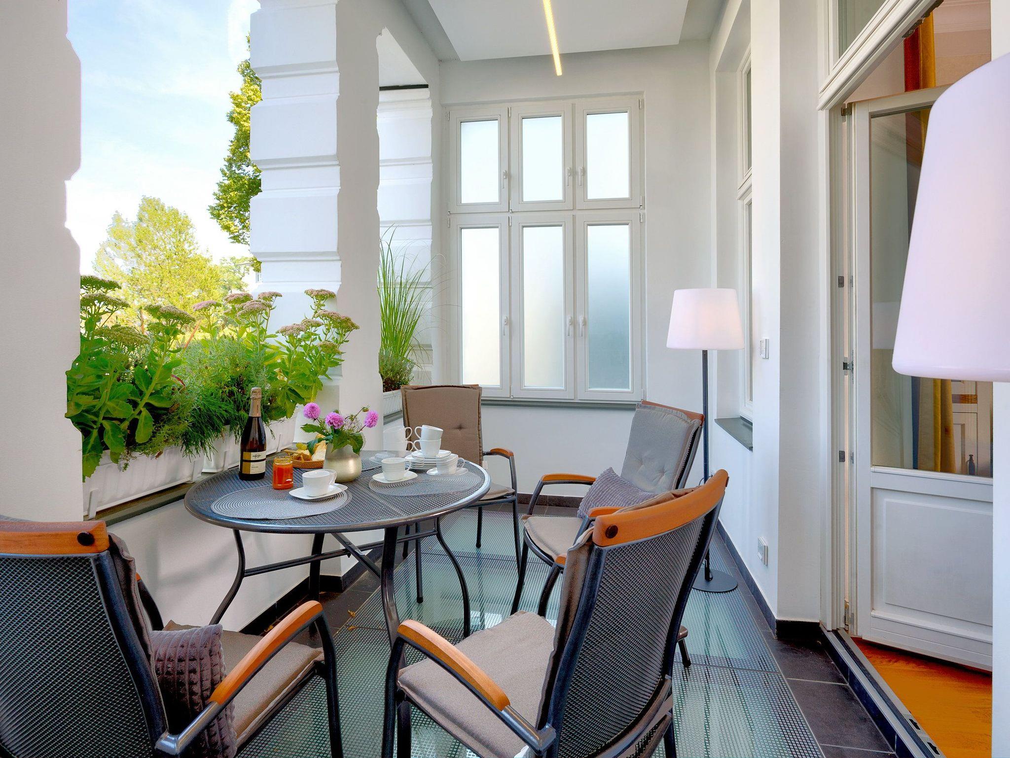 Vom Wohn- und Essbereich haben Sie Zugang zum sonnigen Süd-West-Balkon: lauschen Sie dem Rauschen der Ostsee und Entspannen Sie bei gemeinsamen Erzählungen über Ihre Urlaubserlebnisse.