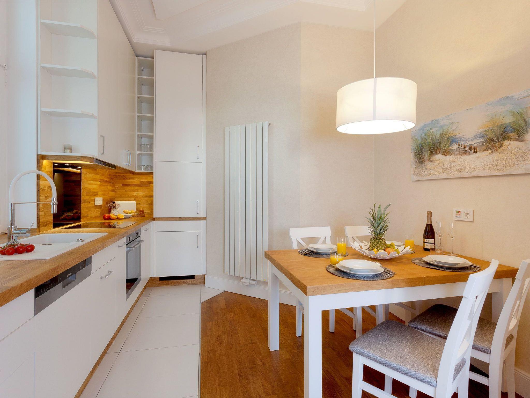 Die vollausgestattete Küche ergänzt die Annehmlichkeiten dieses neuen Appartements mit allen Raffinessen: Backofen, Mikrowelle, Kühlschrank mit Gefrierfach, Toaster, Wasserkocher, Kaffeemaschine sowie einem Essplatz für 4 Personen.