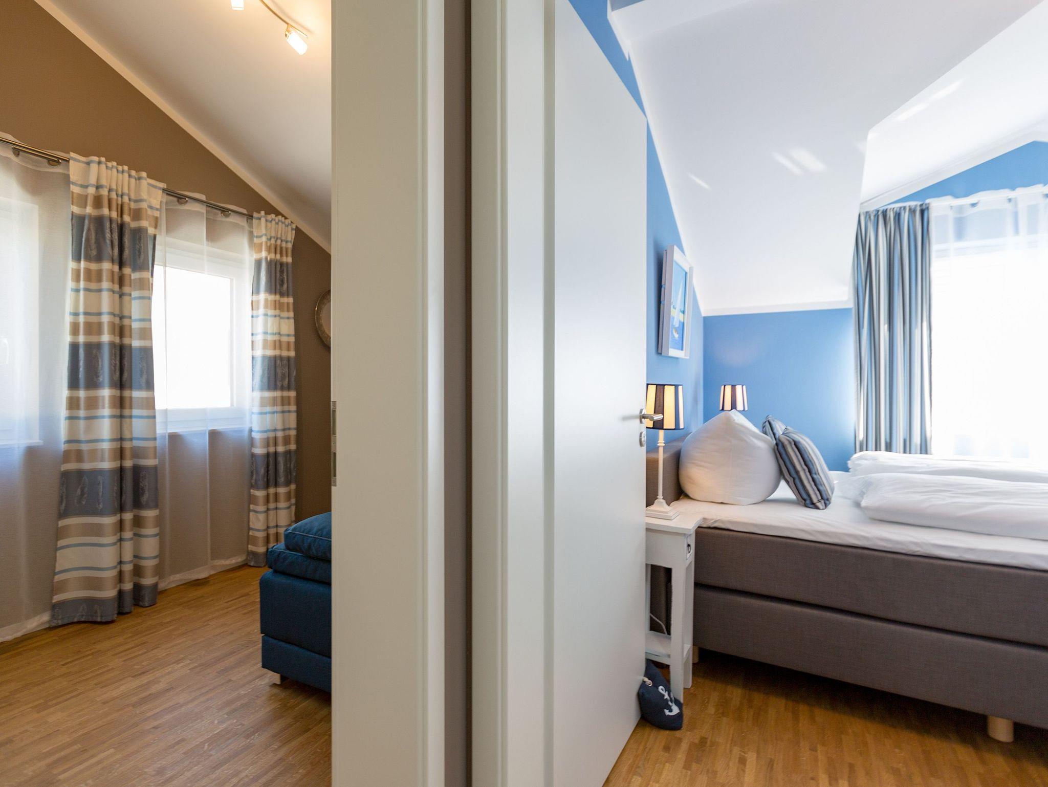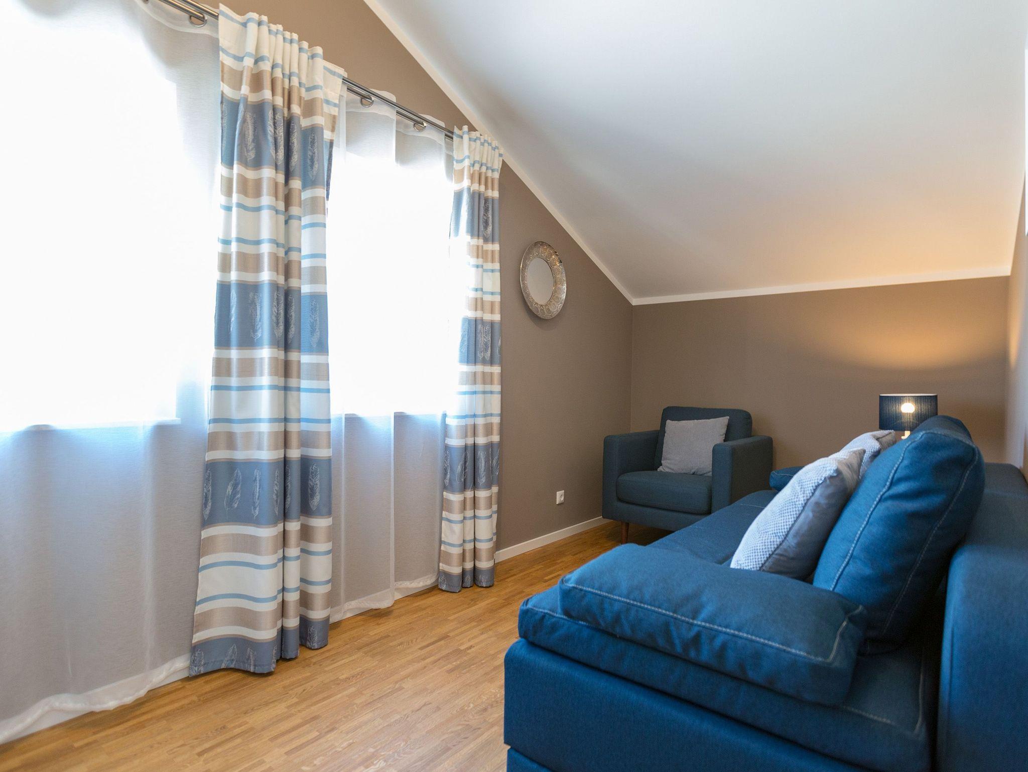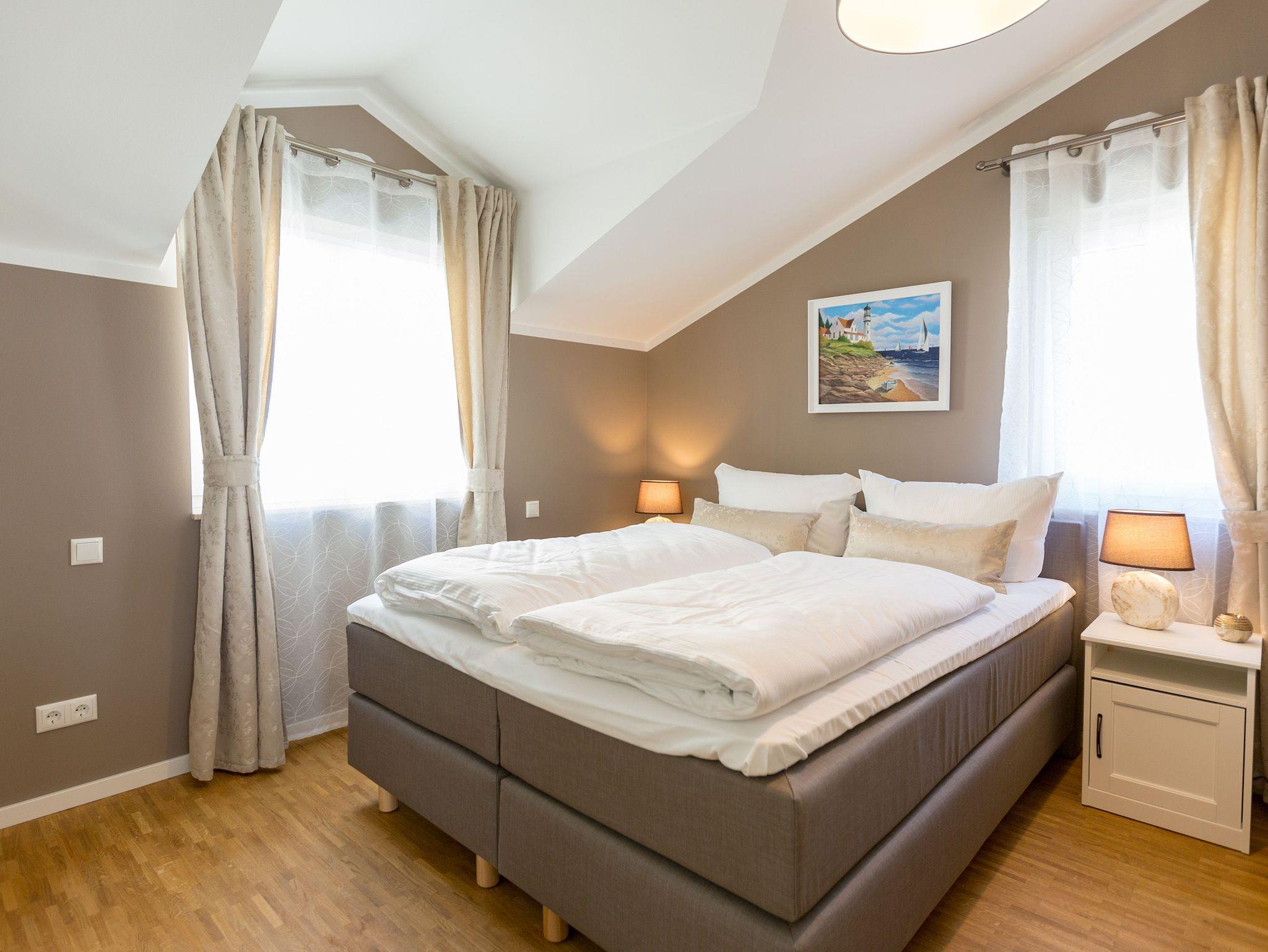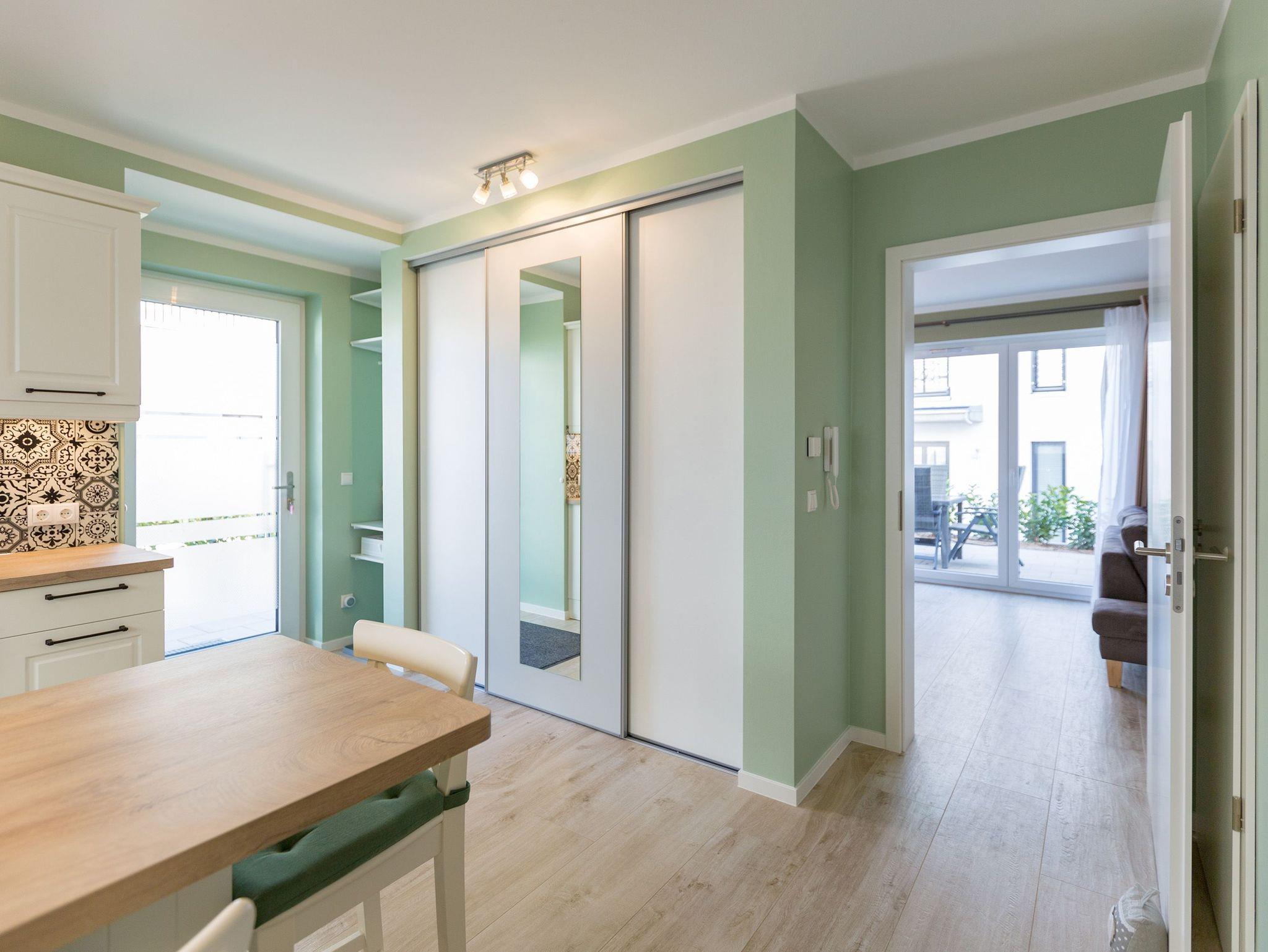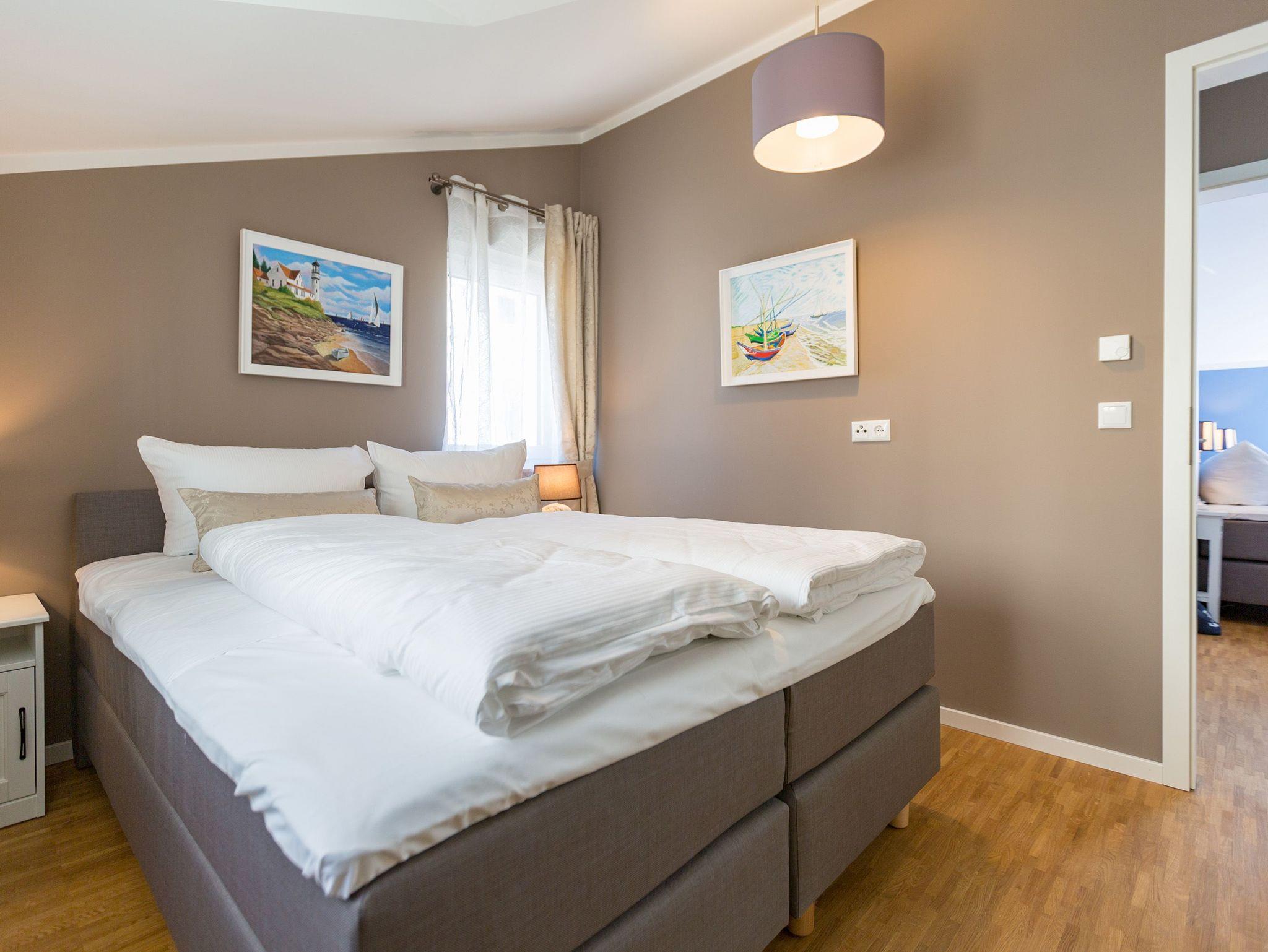 Inmitten des Urlaubstrubels der Kaiserbäder ist das komplett abgeschlossene Appartement Nummer 2 im Gartenhaus des Quartiers am Waldschloss ein exklusives Ruhereich über zwei Etagen. Auf seinen 82 Quadratmetern bietet es Platz für bis zu 5 Personen. Ein Kleinkind bis 2 Jahre kann im Kinderreisebett ebenfalls aufgebettet werden. Hier darf getrost auch der geliebte Vierbeiner mitgebracht werden, das Grundstück ist komplett eingezäunt. So wird der Urlaub an der Ostsee ein rundum gelungenes Erlebnis für Familien und Freunde. Eine wunderschöne, große Küche empfängt Sie gleich beim Eintreten. Vintage-Fliesen und viel weißes Holz im skandinavischen Landhaus-Stil geben Ihnen vom ersten Moment an das Gefühl, genau am richtigen Ort Urlaub zu machen. Hier finden Sie übrigens alle Geräte wie Herd, Spülmaschine, Gefrierschrank, die Sie für gemeinsame Mahlzeiten brauchen können. Inklusive einer urigen Theke für den kleinen Plausch zwischendurch. Von der Küche aus geht es in das helle und großzügige Wohn-Ess-Zimmer. Hier wartet eine große und komfortable Sofalandschaft nur darauf, dass Sie sich fallen lassen und ausgiebig relaxen. Dabei können Sie den Blick auf das Flammenspiel des Gas-Kamins oder aber einen spannenden Film auf dem großen Flat-TV genießen. Die Einrichtung strahlt viel Gemütlichkeit aus. An einem schönen Holztisch können Sie die Mahlzeiten gemeinsam einnehmen. Oder sie setzen sich nach draußen auf die Terrasse. Im Erdgeschoss befindet sich zudem ein separates WC mit Waschbecken, Dusche und Waschmaschine. Zum Schlafen geht?s eine Etage nach oben. Zwei Schlafzimmer mit komfortablen Boxspringdoppelbetten ( 1,60m x 2,00m), davon eines mit Flat-TV und Kleiderschrank sowie ein drittes Schlafzimmer mit einer Sofa-Sitzgruppe, die zu einer Schlafcouch ( 1,80m x 2,00m)[nbsp][nbsp]für eine 5. Person umfunktioniert werden kann sorgen für erholsames Schlafvergnügen. Ein lichtdurchflutetes Badezimmer mit Eckdusche, Waschbecken und WC ist Ihr kleiner Wellness-Bereich. Handtücher liegen für Sie bereit. Und natürlich sind die Betten bei Ankunft ebenfalls bezogen. Und für Ihr Auto gibt es einen für Sie reservierten Tiefgaragen-Stellplatz Nr. 11 a / WE 2 im Nachbarhaus (Einfahrthöhe max. 2,00 m, Stellplatzbreite max. 2,30m, eingeschränkte Wendemöglichkeit).