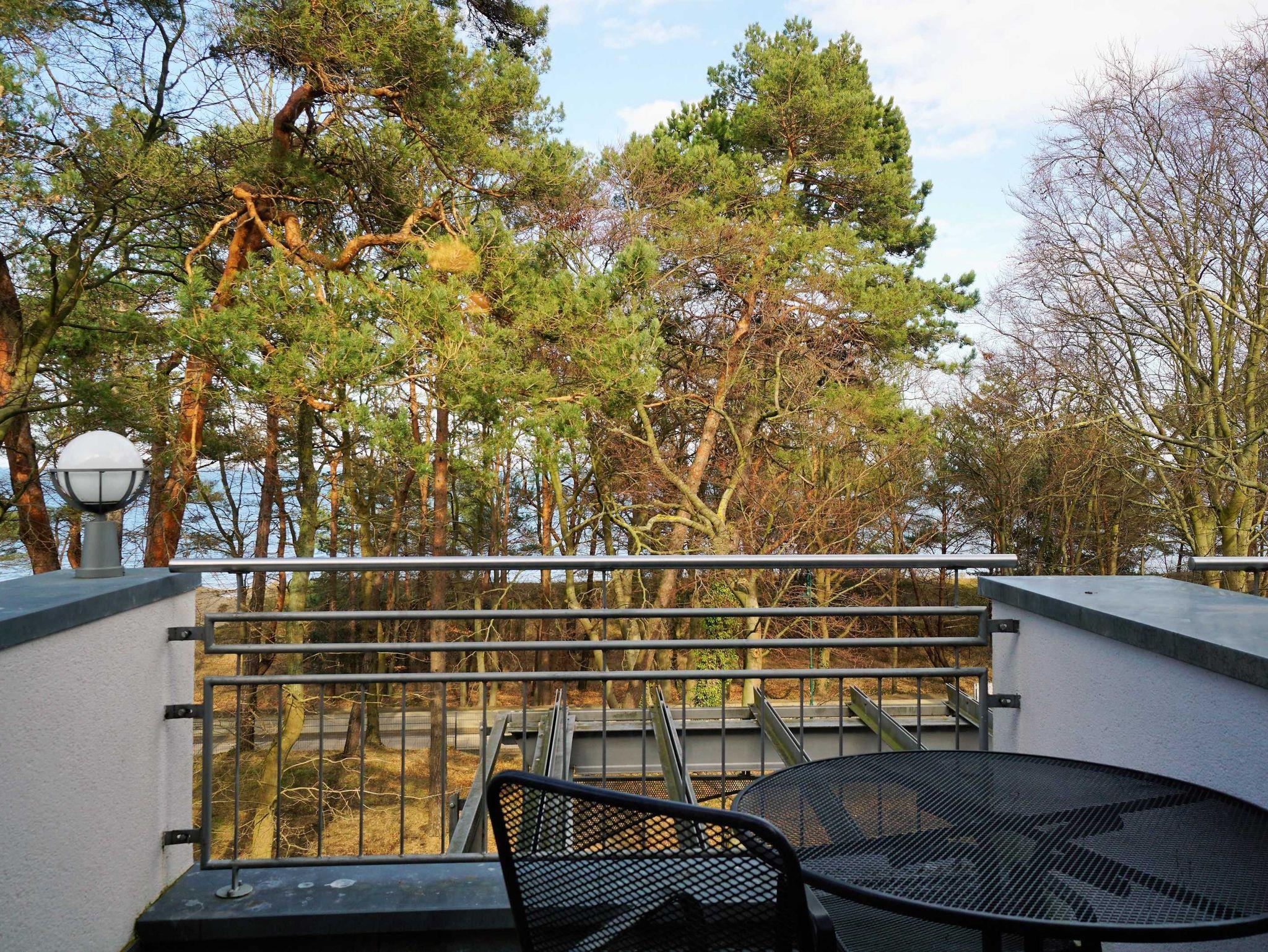 Sie bietet Ihnen von den beiden zum Himmel offenen Balkonen im Dachgeschoss einen schönen Blick auf die Strandpromenade und auf das große mit alten Bäumen bestandene Grundstück. Die Wohnung erreichen Sie zu Fuß oder mit dem Lift.