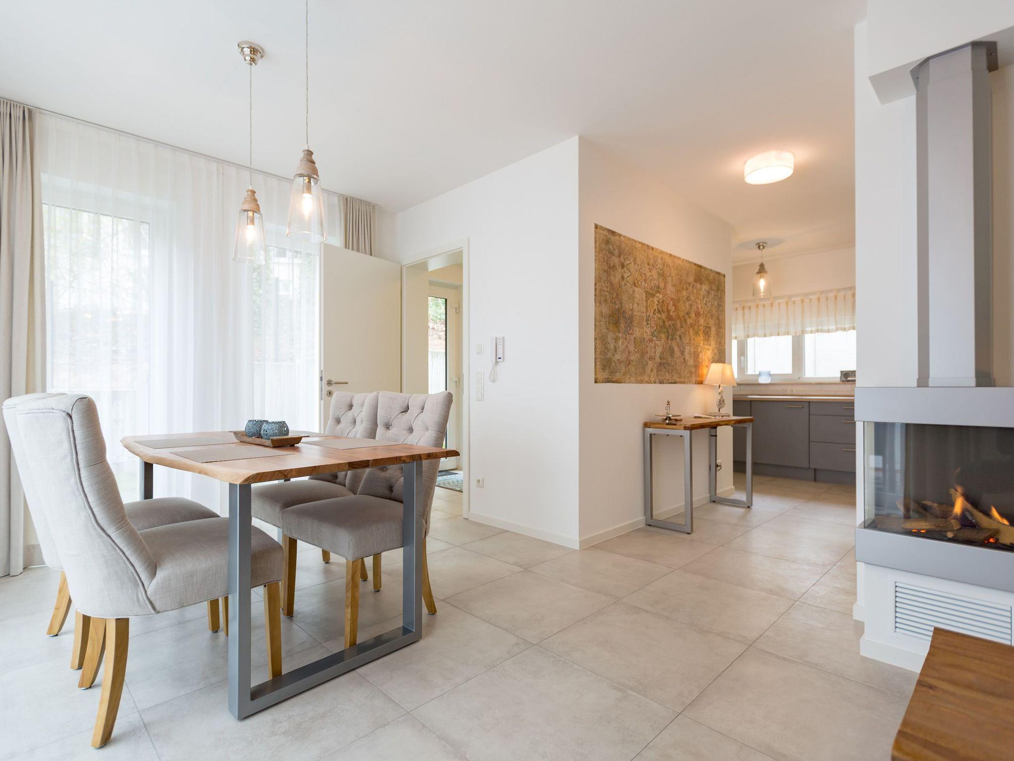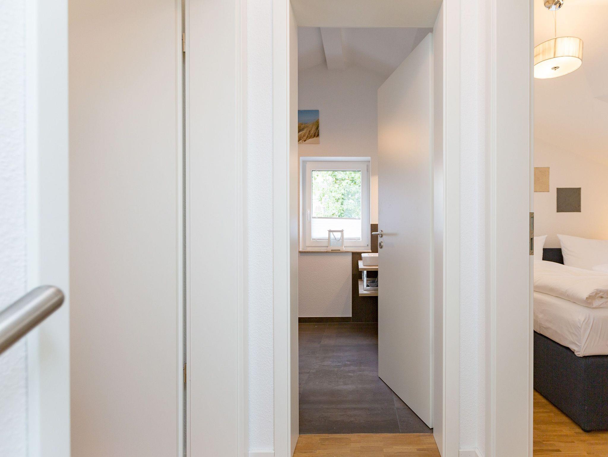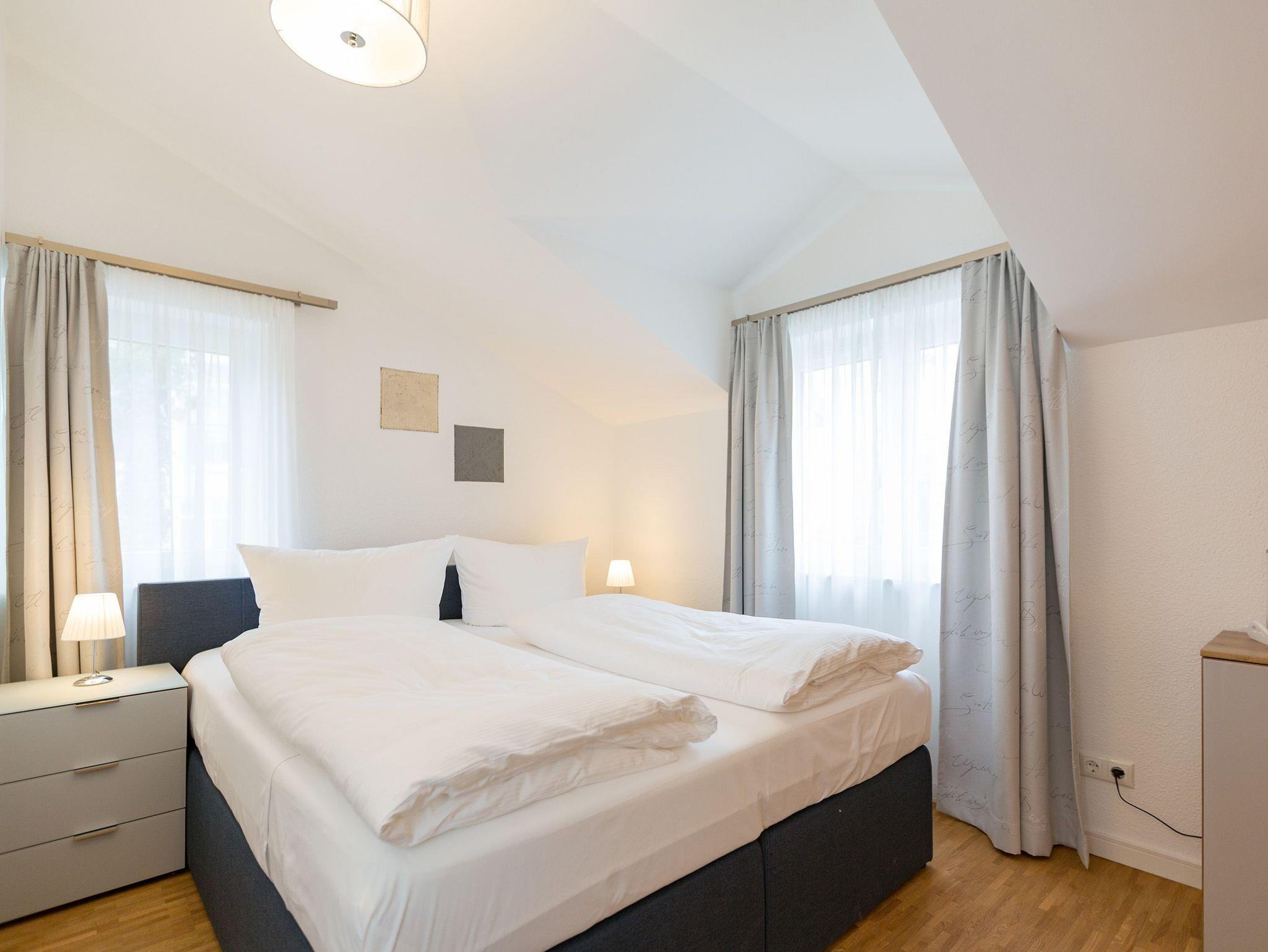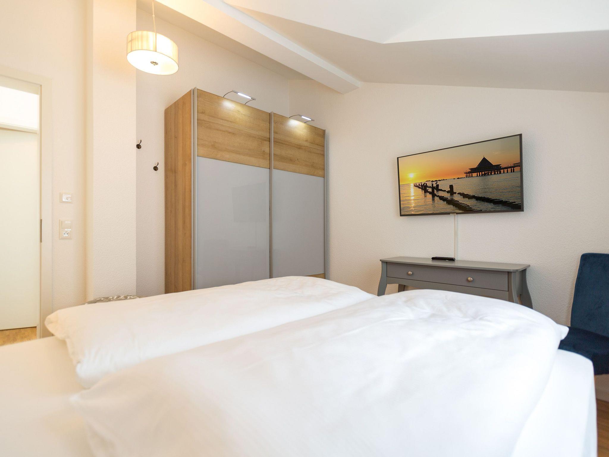 Über zwei Etagen erstreckt sich im Appartement 1 ein 83 Quadratmeter großer Urlaubstraum mit ganz besonderem Flair. Offen, großzügig und elegant ist das Drei-Zimmer-Appartement eine echte Wohlfühlzone. Bis zu vier Freunde oder Familienmitglieder können hier gemeinsam eine stilvolle Auszeit mitten im Herzen des mondänen Kaiserbades genießen. Auch ein Kleinkind bis zwei Jahre kann hier zusätzlich im Kinderreisebett untergebracht werden. Wie ein kleines Loft gehen im Erdgeschoss das Wohnzimmer in das Esszimmer und in die voll ausgestattete Küche über. Lichtdurchflutet und gemütlich ist das Interieur. Die große Sofalandschaft eignet sich ideal zum Filme anschauen auf dem Flat-TV oder für gesellige Abende vor dem Gaskamin. Per Knopfdruck können Sie mit ihm eine kuschelige Atmosphäre zaubern. Vom Wohnzimmer gelangen Sie auf die Südterrasse (ca. 12qm). Am wunderschönen Industrial-Design-Holztisch mit den komfortablen Stühlen lässt es sich lecker essen. Die Küche ist mit allem ausgestattet. Mikrowelle, Gefrierschrank, Spülmaschine, Backofen ? hierbei handelt es sich durchweg um hochwertige Markengeräte. Auch Geschirr ist in den Schränken zu finden. Im Erdgeschoss befindet sich zudem ein stylisches Badezimmer mit Dusche und WC. Über eine Treppe geht?s in die Traum- und Relax-Area. Im 1. Obergeschoss befinden sich zwei gemütliche Schlafzimmer mit Boxspringdoppelbetten (1,60 m x 2,00 m und 1,80 m x 2,00 m), Schränken und je einem weiteren Flat-TV. Eines der beiden Schlafzimmer hat sogar eine separate Ankleide ? ein kleines Boudoir mit Schminktisch. Auch im Obergeschoss gibt es ein geräumiges Tageslichtbad. Neben Dusche, WC und Waschbecken verwöhnt es die Entspannungshungrigen mit einer kleinen Finnischen Sauna. Das Ferienobjekt verfügt über eine Waschmaschine. Bei Anreise sind die Betten bezogen und Handtücher liegen bereit. Das WLAN-Netz ist kostenfrei nutzbar. Für das Appartement ist ein Stellplatz im Carport reserviert. Von hier aus erreicht man den Zugang zum Haus über eine Außentreppe.