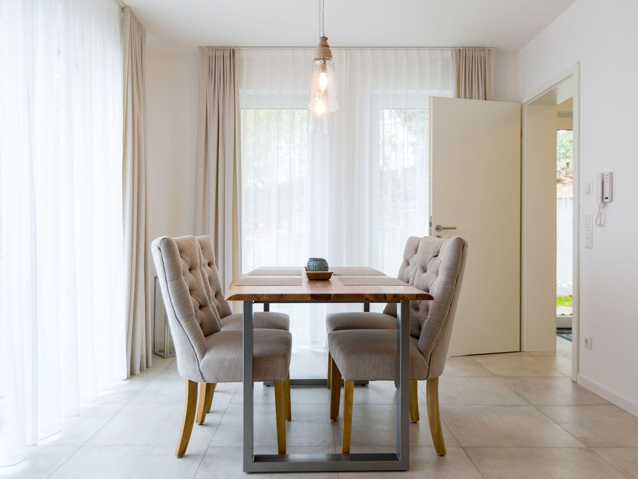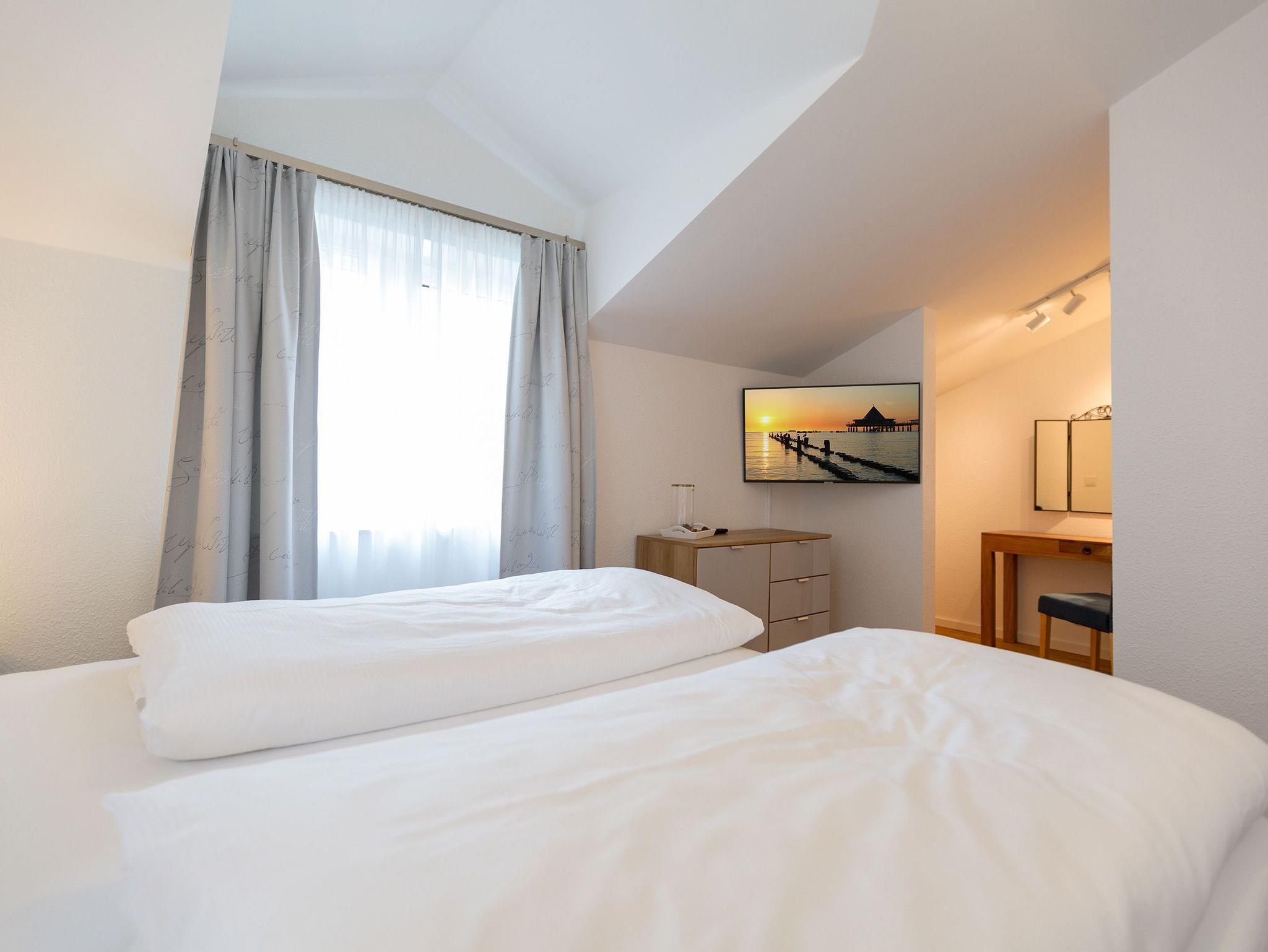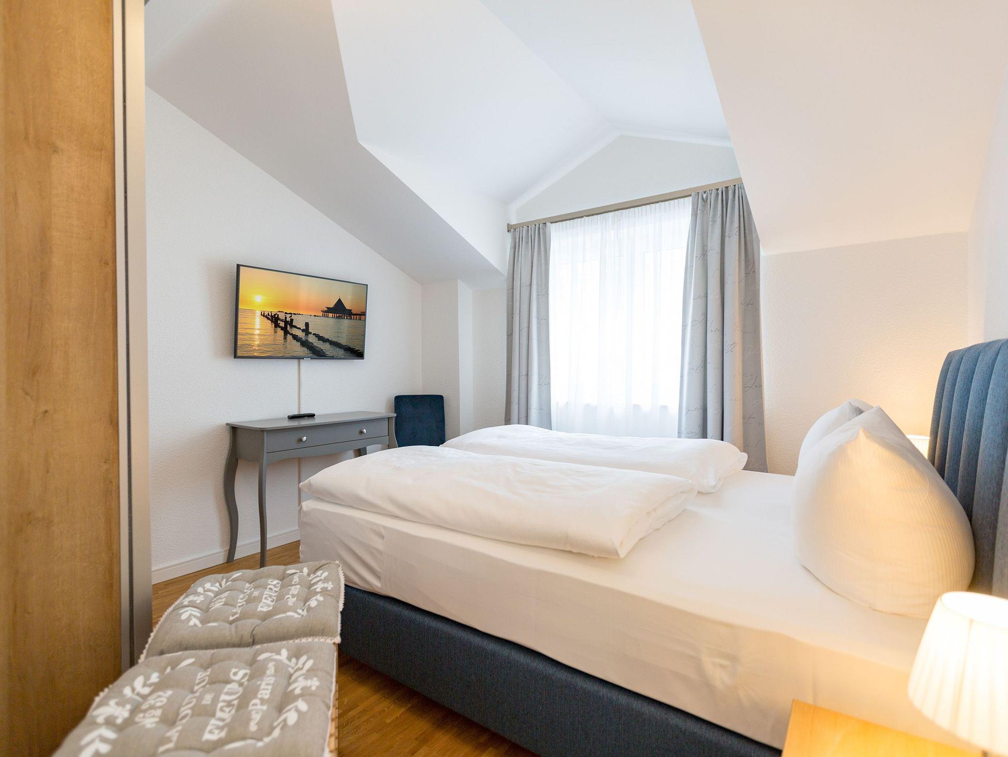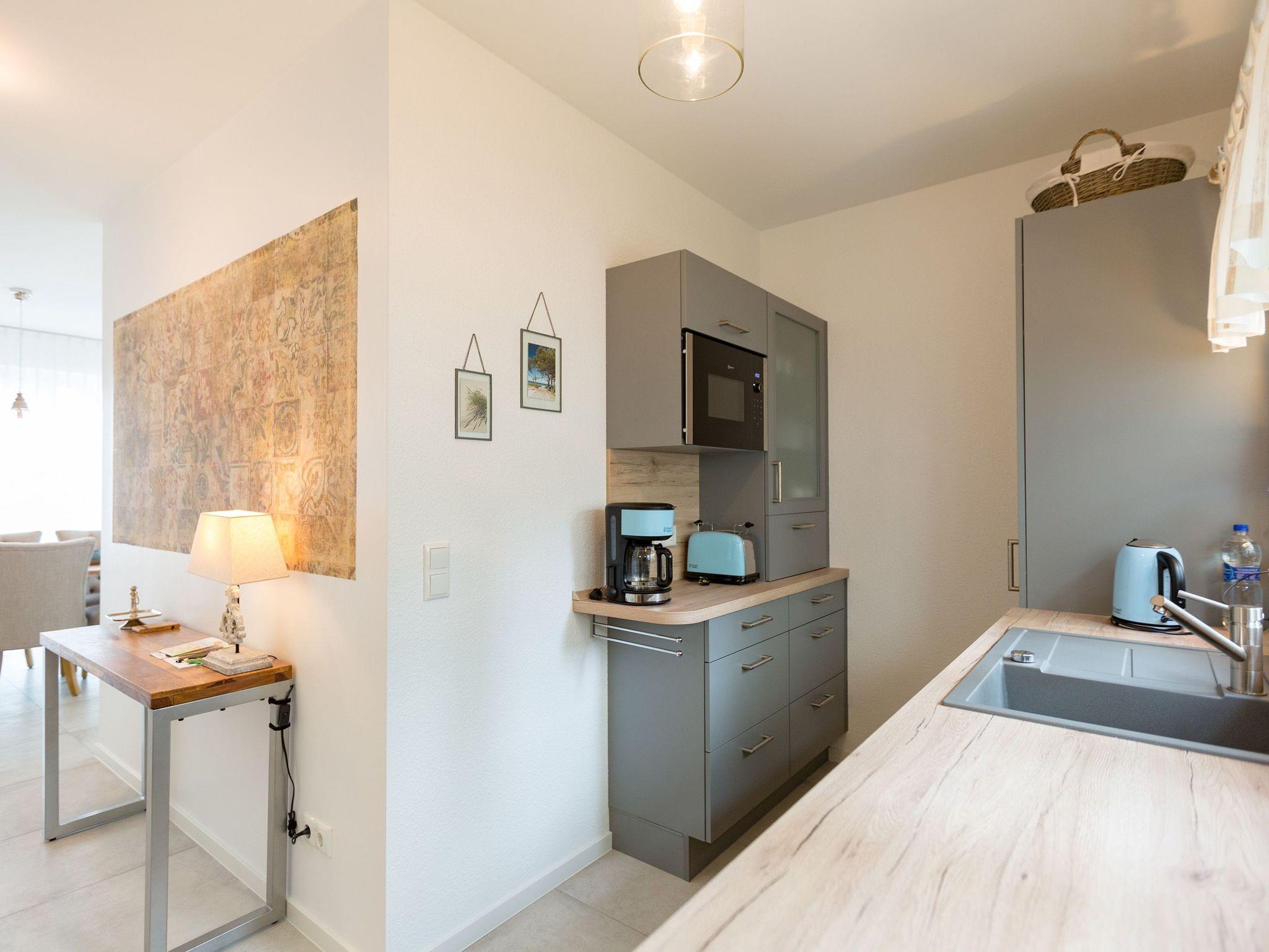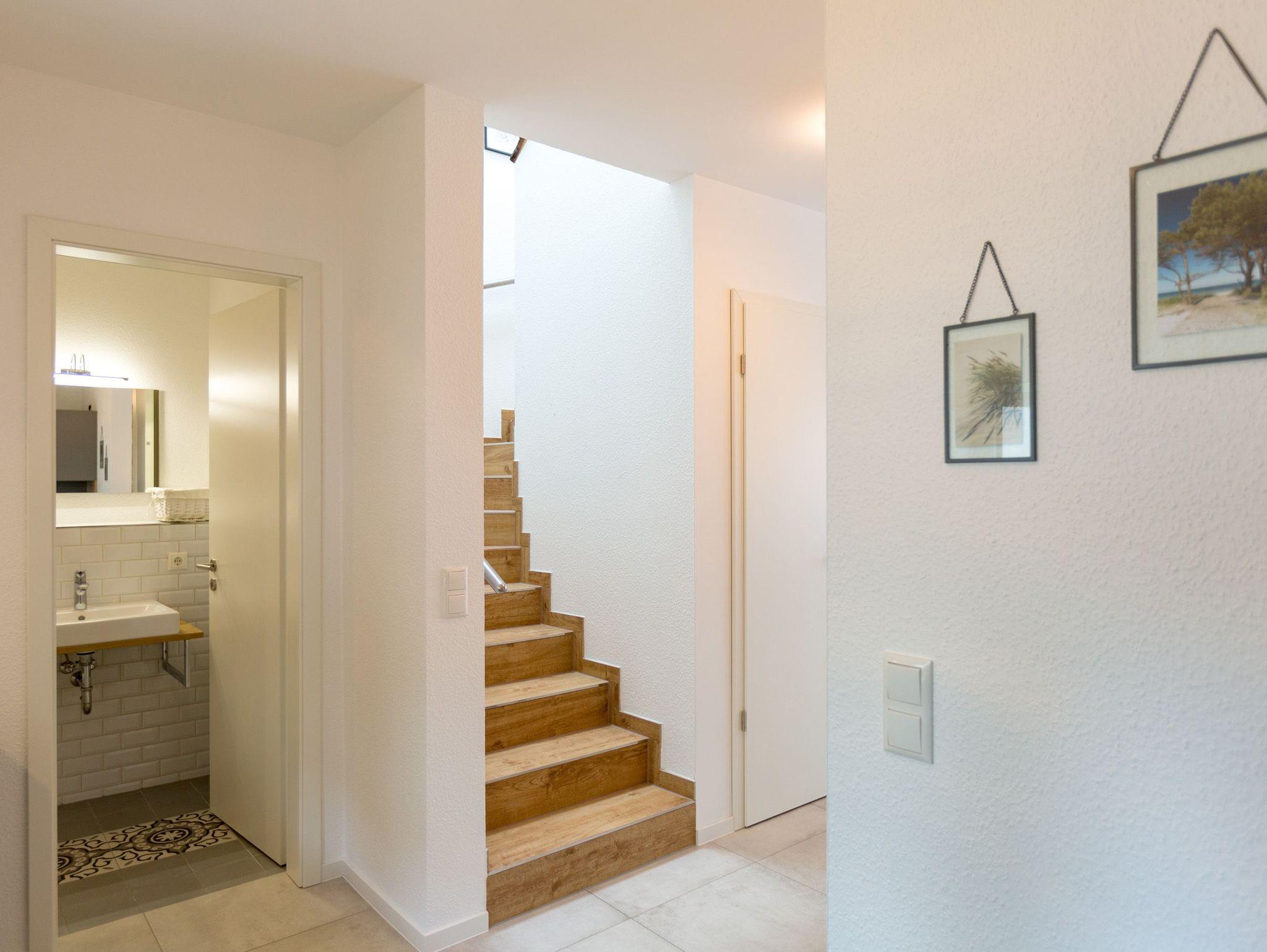 Über zwei Etagen erstreckt sich im Appartement 1 ein 83 Quadratmeter großer Urlaubstraum mit ganz besonderem Flair. Offen, großzügig und elegant ist das Drei-Zimmer-Appartement eine echte Wohlfühlzone. Bis zu vier Freunde oder Familienmitglieder können hier gemeinsam eine stilvolle Auszeit mitten im Herzen des mondänen Kaiserbades genießen. Auch ein Kleinkind bis zwei Jahre kann hier zusätzlich im Kinderreisebett untergebracht werden. Wie ein kleines Loft gehen im Erdgeschoss das Wohnzimmer in das Esszimmer und in die voll ausgestattete Küche über. Lichtdurchflutet und gemütlich ist das Interieur. Die große Sofalandschaft eignet sich ideal zum Filme anschauen auf dem Flat-TV oder für gesellige Abende vor dem Gaskamin. Per Knopfdruck können Sie mit ihm eine kuschelige Atmosphäre zaubern. Vom Wohnzimmer gelangen Sie auf die Südterrasse (ca. 12qm). Am wunderschönen Industrial-Design-Holztisch mit den komfortablen Stühlen lässt es sich lecker essen. Die Küche ist mit allem ausgestattet. Mikrowelle, Gefrierschrank, Spülmaschine, Backofen ? hierbei handelt es sich durchweg um hochwertige Markengeräte. Auch Geschirr ist in den Schränken zu finden. Im Erdgeschoss befindet sich zudem ein stylisches Badezimmer mit Dusche und WC. Über eine Treppe geht?s in die Traum- und Relax-Area. Im 1. Obergeschoss befinden sich zwei gemütliche Schlafzimmer mit Boxspringdoppelbetten (1,60 m x 2,00 m und 1,80 m x 2,00 m), Schränken und je einem weiteren Flat-TV. Eines der beiden Schlafzimmer hat sogar eine separate Ankleide ? ein kleines Boudoir mit Schminktisch. Auch im Obergeschoss gibt es ein geräumiges Tageslichtbad. Neben Dusche, WC und Waschbecken verwöhnt es die Entspannungshungrigen mit einer kleinen Finnischen Sauna. Das Ferienobjekt verfügt über eine Waschmaschine. Bei Anreise sind die Betten bezogen und Handtücher liegen bereit. Das WLAN-Netz ist kostenfrei nutzbar. Für das Appartement ist ein Stellplatz im Carport reserviert. Von hier aus erreicht man den Zugang zum Haus über eine Außentreppe.