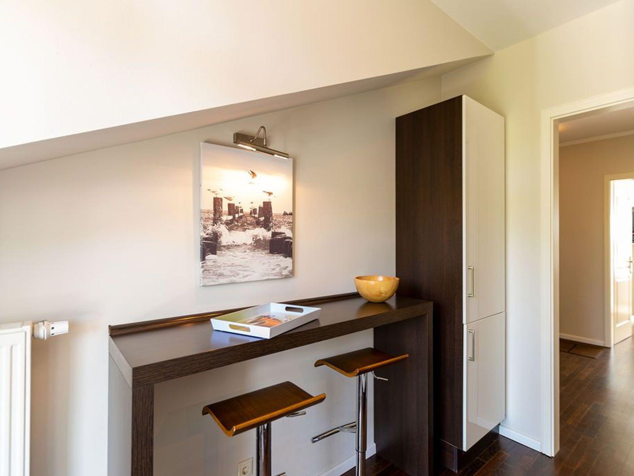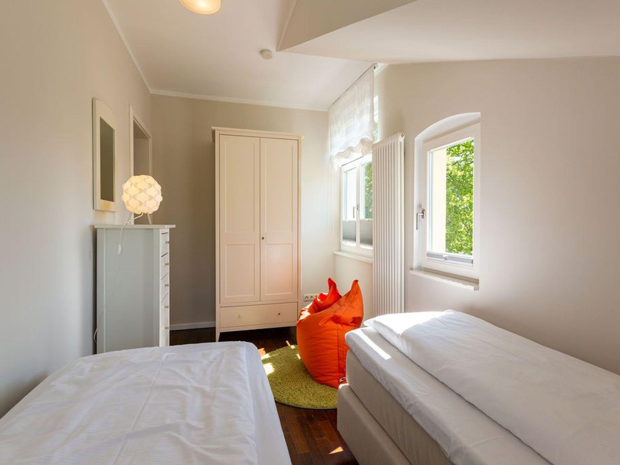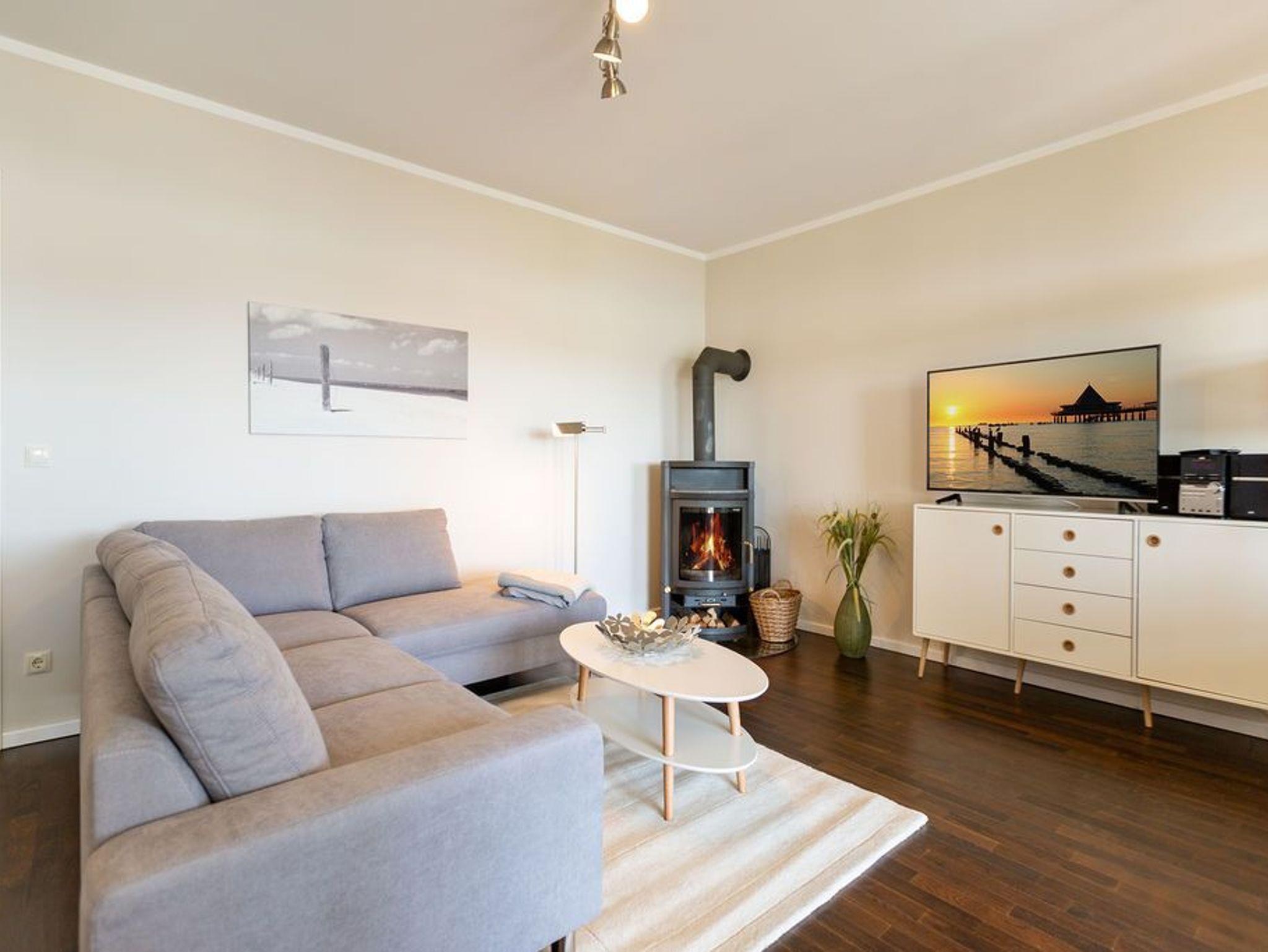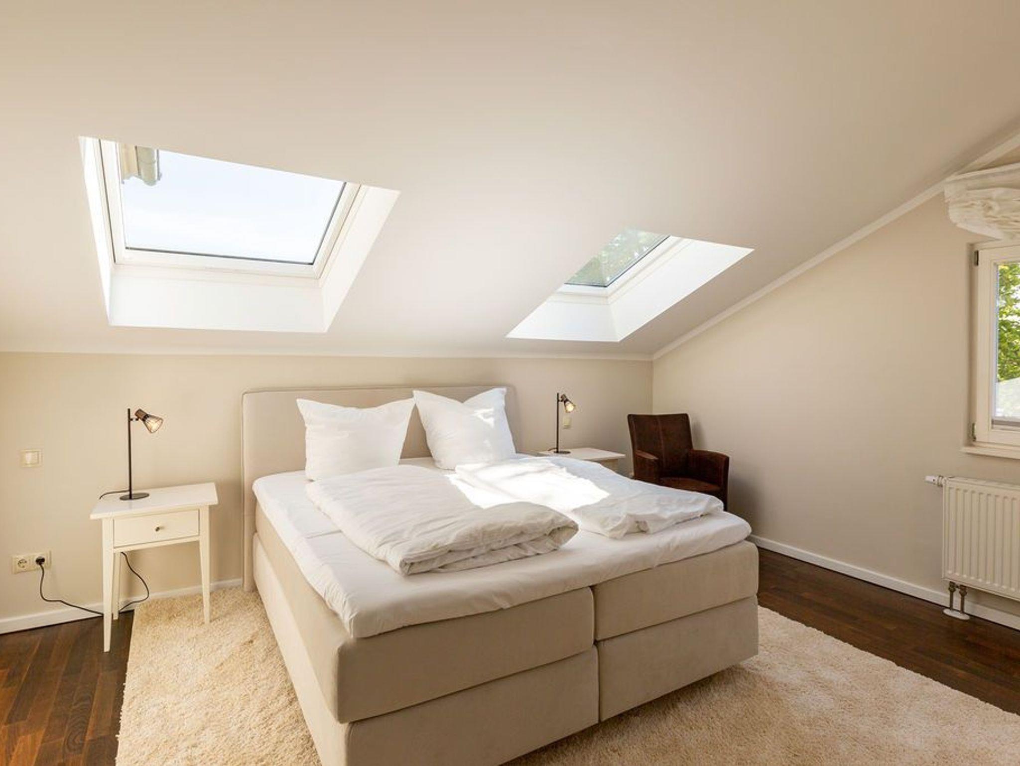 Großzügig, hochwertig und sehr detailverliebt gestaltet, erwartet Sie eine zauberhafte Wohlfühl-Wohnwelt für 4 Personen und ein Kleinkind im Reisebett. Willkommen in Charlottes Höh Nr. 8! Hier finden Sie auf opulenten 105 qm viel Raum zum Verwirklichen Ihrer Urlaubsträume. Und den fantastischen Meerblick gibt´s quasi dazu. Denn den genießen Sie in der großzügigen, verglasten Loggia am besten bei einem Glas Wein auf der Couch oder beim Frühstück am Esstisch. Im Wohnbereich machen Sie es sich auf der bequemen Couchecke gemütlich. Im heimeligen Schlafzimmer mit Boxspringdoppelbett unter der Dachschräge findet bequem auch ein zusätzliches Kinderreisebett Platz. Das zweite Schlafzimmer mit getrennten Betten ist für Kinder und Erwachsene geeignet. Die separate Küche mit Zugang zum sonnigen Südbalkon ist mit allem Komfort ausgestattet. An kalten Tagen wird es durch den knisternden Kaminofen oder in der wohnungseigenen Sauna so richtig warm und kuschelig. Ergänzt wird die Wohnung durch ein modernes Bad mit Dusche, WC und Sauna. Auf Wunsch stellen wir für unsere kleinen Gäste ein Kinderreisebett (ohne zusätzliche Matratze [&] Bettzeug) und einen Kinderhochstuhl ( gegen einen Aufpreis) zur Verfügung. Für Ihren Komfort sind die Betten bei der Anreise bezogen und Handtücher liegen bereit (Erstausstattung).