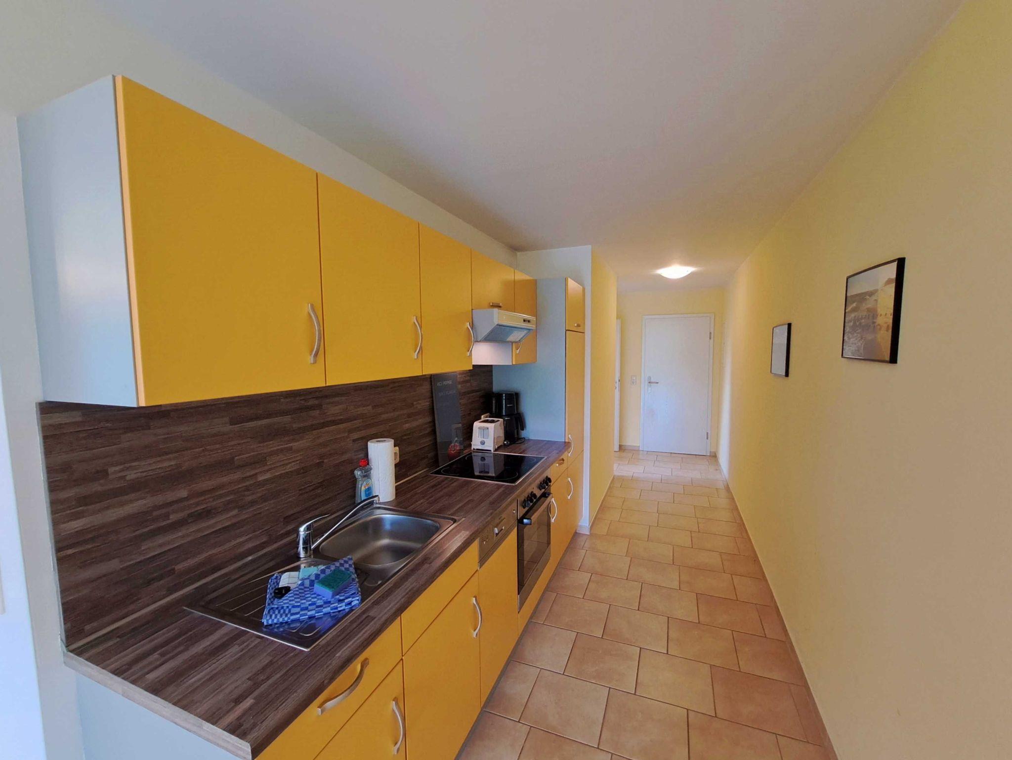 Herzlich willkommen in dieser charmanten 50 qm großen Ferienwohnung, die Platz für bis zu 3 Personen bietet! Hier erwartet Sie ein geräumiges und komfortables Wohnzimmer, das mit einer gemütlichen Couch ausgestattet ist, die auch als Schlafmöglichkeit für eine weitere Person dient. Genießen Sie entspannte Abende bei einem Film auf dem Flachbild-TV oder hören Sie Ihre Lieblingsmusik über das HiFi-Equipment. Vom Wohnzimmer aus gelangen Sie auf den Balkon, der in den Sommermonaten mit Möbeln ausgestattet ist - perfekt für entspannte Stunden im Freien. Die moderne und hochwertige Küche, die mit dem Wohnzimmer verbunden ist, lässt keine Wünsche offen: Sie finden hier einen Backofen, Kühlschrank mit Gefriermöglichkeit, Spülmaschine, Cerankochfeld sowie eine Kaffeemaschine, Wasserkocher und Toaster. Das Schlafzimmer ist mit einem komfortablen Doppelbett und einem Kleiderschrank ausgestattet, sodass Sie sich rundum wohlfühlen können. Das Badezimmer verfügt über eine Dusche und ein WC und ein separater Abstellraum mit Kleiderhaken sorgt für zusätzlichen Komfort. Für Ihren Pkw steht Ihnen ein Parkplatz direkt vor dem Haus zur Verfügung. Zudem können Sie in der gesamten Wohnung kostenfreies W-LAN nutzen.