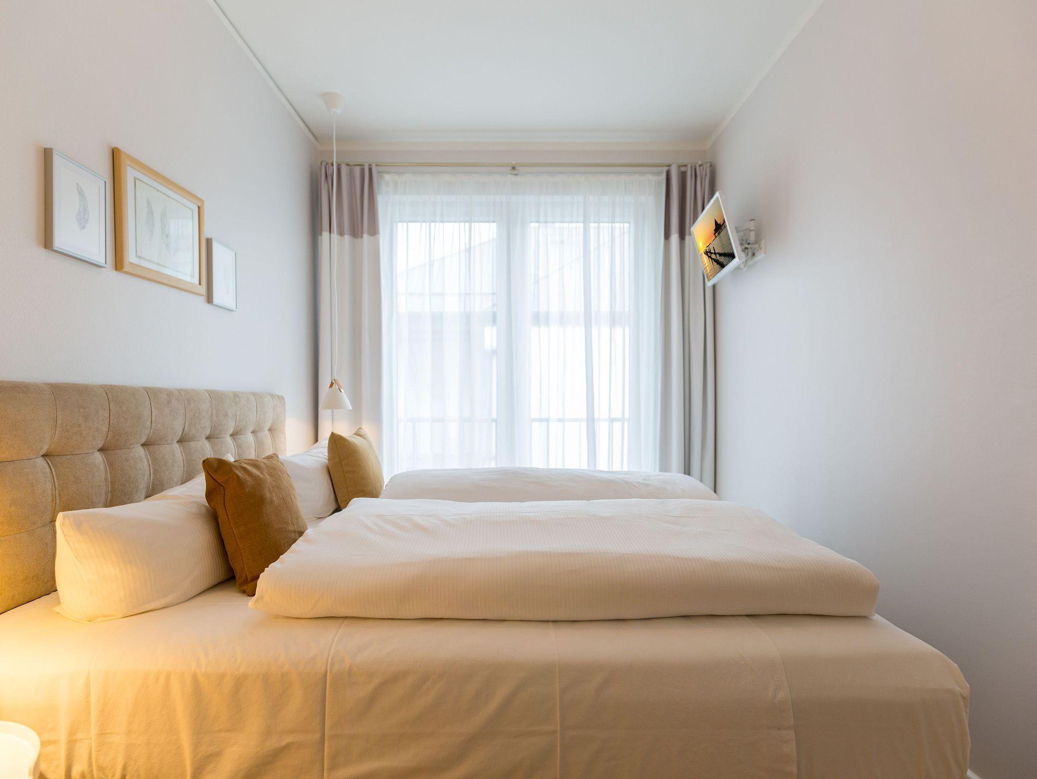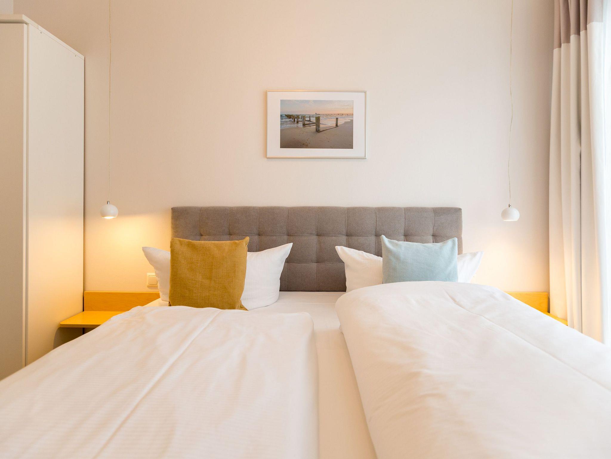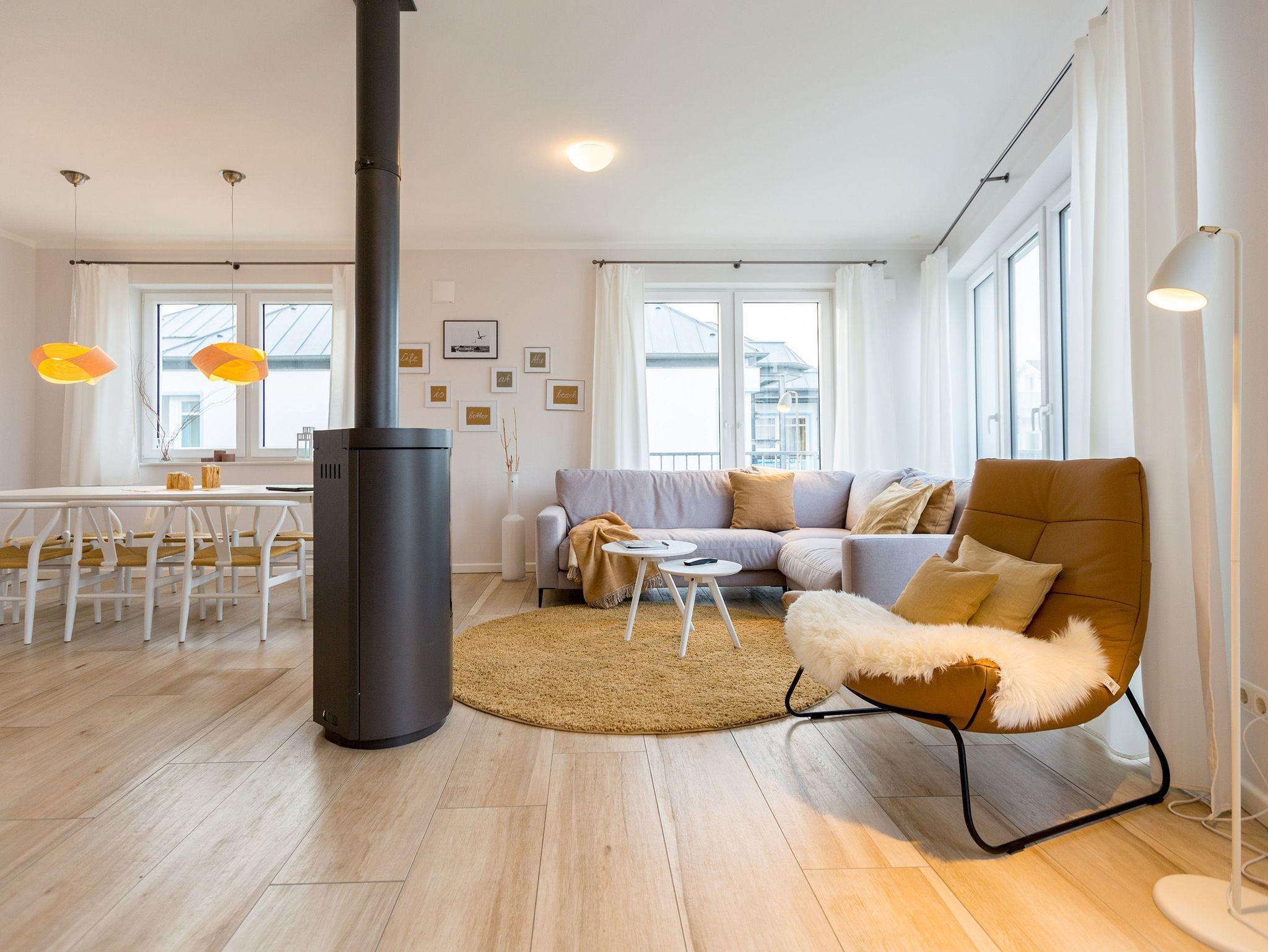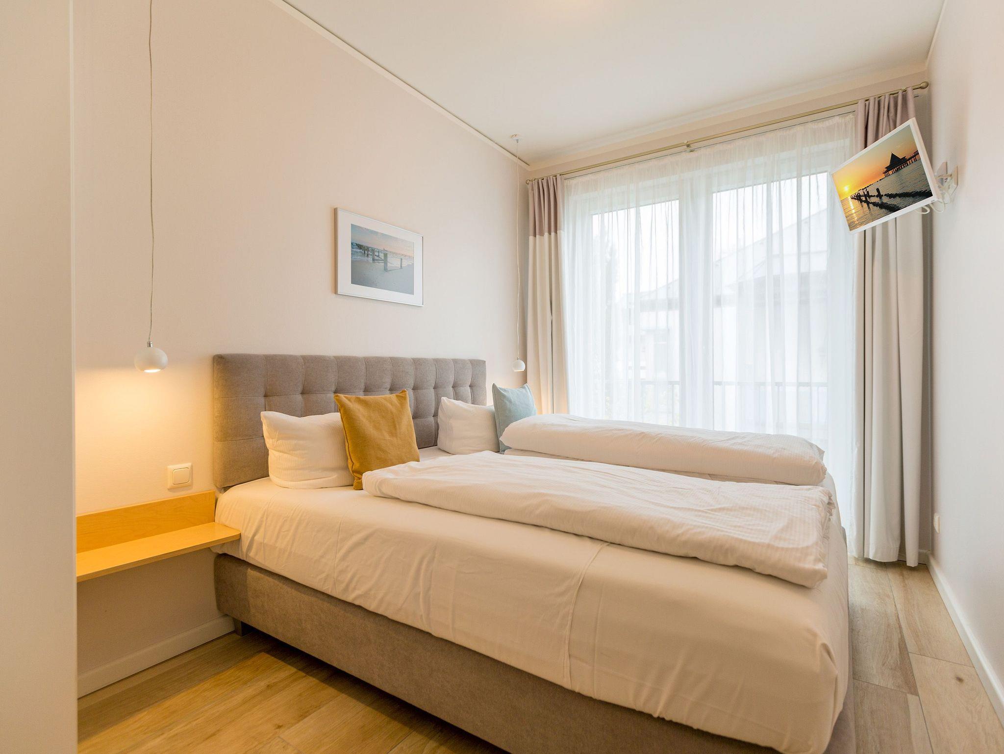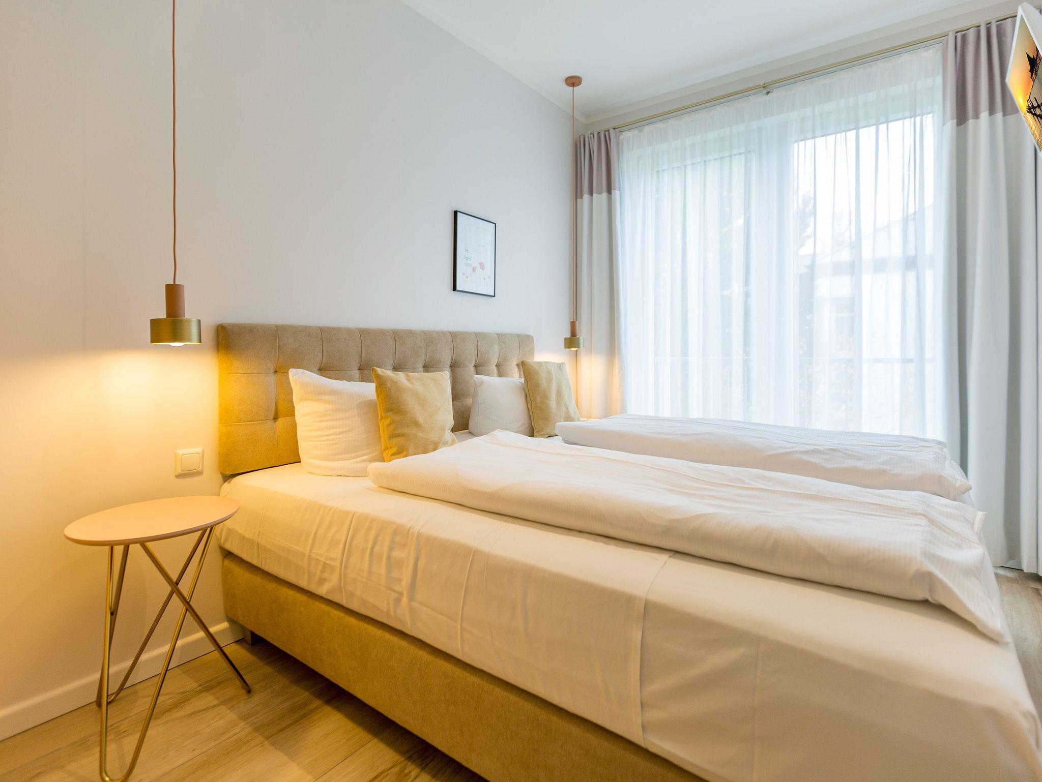 Schließen Sie die Augen und träumen Sie sich in dieses Feriendomizil an der Ostsee, dass auf großzügigen 147qm Erholung für die ganze Familie oder die besten Freunde verspricht. Auf insgesamt zwei Etagen mit 4 Schlafzimmern und 2 Bädern bietet dieses Appartement ausreichend Platz für bis zu 8 Personen und 1 Kleinkind (im Babyreisebett). Ein im Strandhaus-Stil gehaltenes Interieur, kombiniert mit hellen Naturtönen und Materialien aus Korb und Holz, komplettieren das Urlaubsgefühl. Im großzügigen Eingangsbereich im Erdgeschoss befindet sich neben einer Garderobe ein gemütlicher Loungesessel mit Leseecke, der ein Gefühl des Nachhausekommens versprüht. Das angrenzende Schlafzimmer mit eigenem Terrassenzugang und komfortablem Boxspringbett (1,80m x 2,00m) ist der perfekte Rückzugsort für Eltern oder Großeltern, die sich auf dieser Etage nach Ruhe sehnen. Ebenfalls im Erdgeschoss befindet sich eines der beiden Badezimmer mit Finnischer Sauna, die nach einem langen Strandspaziergang zu einem heißen Aufguss einlädt. Eine Dusche, ein Waschtisch sowie ein WC runden den Bereich des unteren Badezimmers ab. Außergewöhnlich könnte man das Wohnzimmer beschreiben, dass sich im Obergeschoss befindet. Der offen gestaltete Wohn-Ess-Bereich avanciert zum zentralen Treffpunkt des Appartements. Nicht zuletzt wegen des Kamins, dessen wohlige Wärme Sie direkt vom Sofa und auch vom Esstisch aus genießen können. Die integrierte moderne Küche ist voll ausgestattet und verfügt über hochwertige Küchengeräte (Mikrowelle, Backofen, Ceranfeld, Spülmaschine, Kühlschrank mit Gefrierfach). Entspannen Sie anschließend auf einem der beiden Stressless-Sessel und der bequemen Sofalandschaft vor dem Flat-TV, bevor Sie die Nacht in einem der drei Schlafzimmer im Obergeschoss verbringen, die alle über Boxspringbetten (1,80m x 2,00m), ausreichend Schrank- und Ablagefläche sowie einen Flat-TV verfügen. Eine kleine Wellness-Oase ist das Wannenbad im Obergeschoss, dass außerdem über eine Dusche, ein WC und einen Waschtisch verfügt. Bei Ihrer Anreise liegen für Sie Handtücher bereit. Auch die Betten sind bereits bezogen. Ein dem Appartement zugehöriger Stellplatz in einer Garage und ein Stellplatz am Haus für einen Kleinwagen (hier muss immer rückwärts eingeparkt werden) sowie ein paar wenige Fahrradabstellmöglichkeiten in der Garage zählen ebenso zu diesem Feriendomizil wie kostenfreies WLAN.