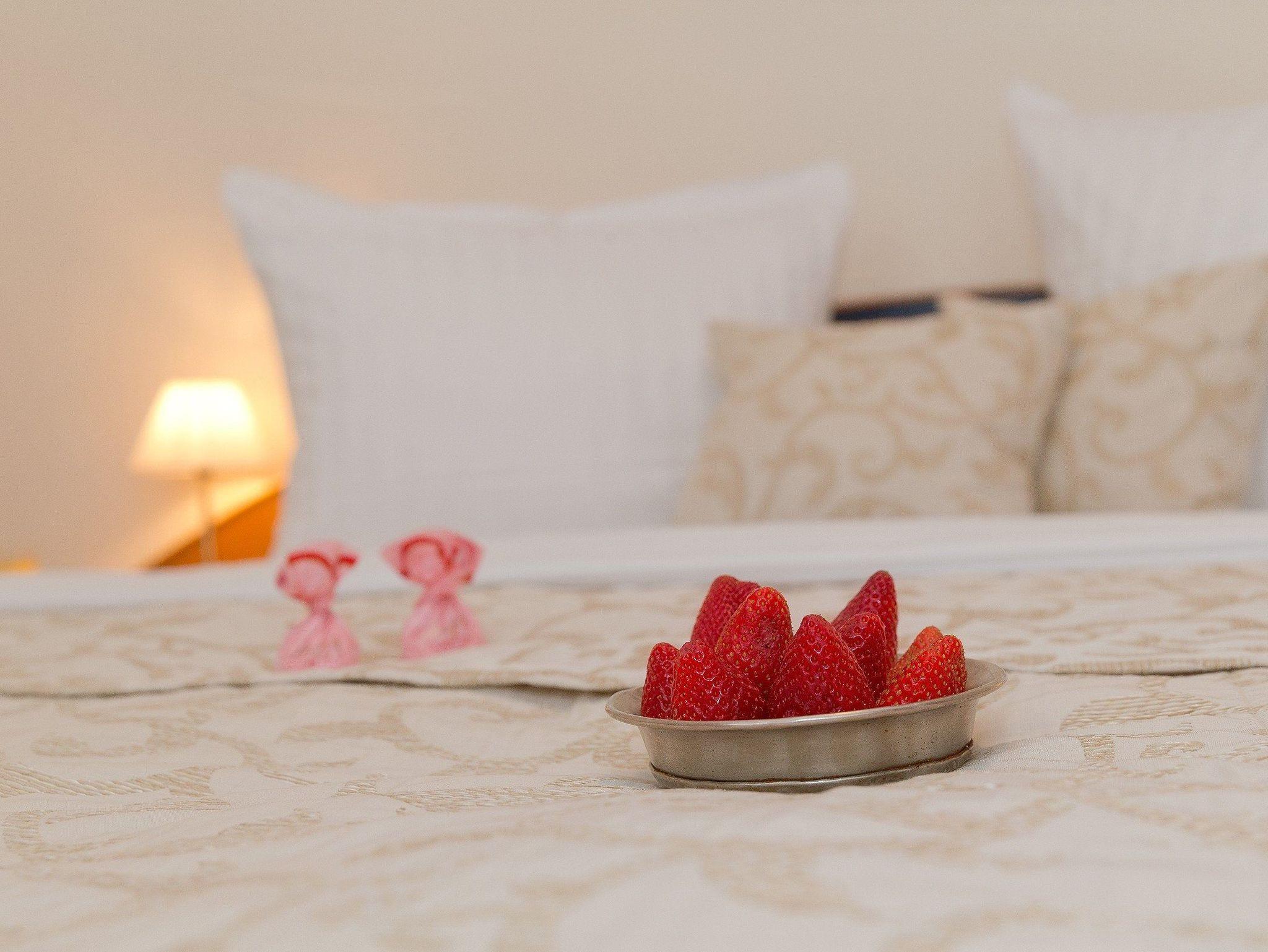 Zur Nachtruhe lassen Sie sich in das bequeme Doppelbett (180 x 200cm / zwei getrennte Matratzen) fallen und starten gut erholt in den nächsten Urlaubstag. Damit Sie Ihre wohlverdiente Urlaubszeit bereits am Anreisetag in vollen Zügen genießen können, haben wir das Bett für Sie und das für Ihre lieben Mitreisenden bereits bezogen und ein Duschtuch sowie ein kleines Handtuch bereitgelegt.