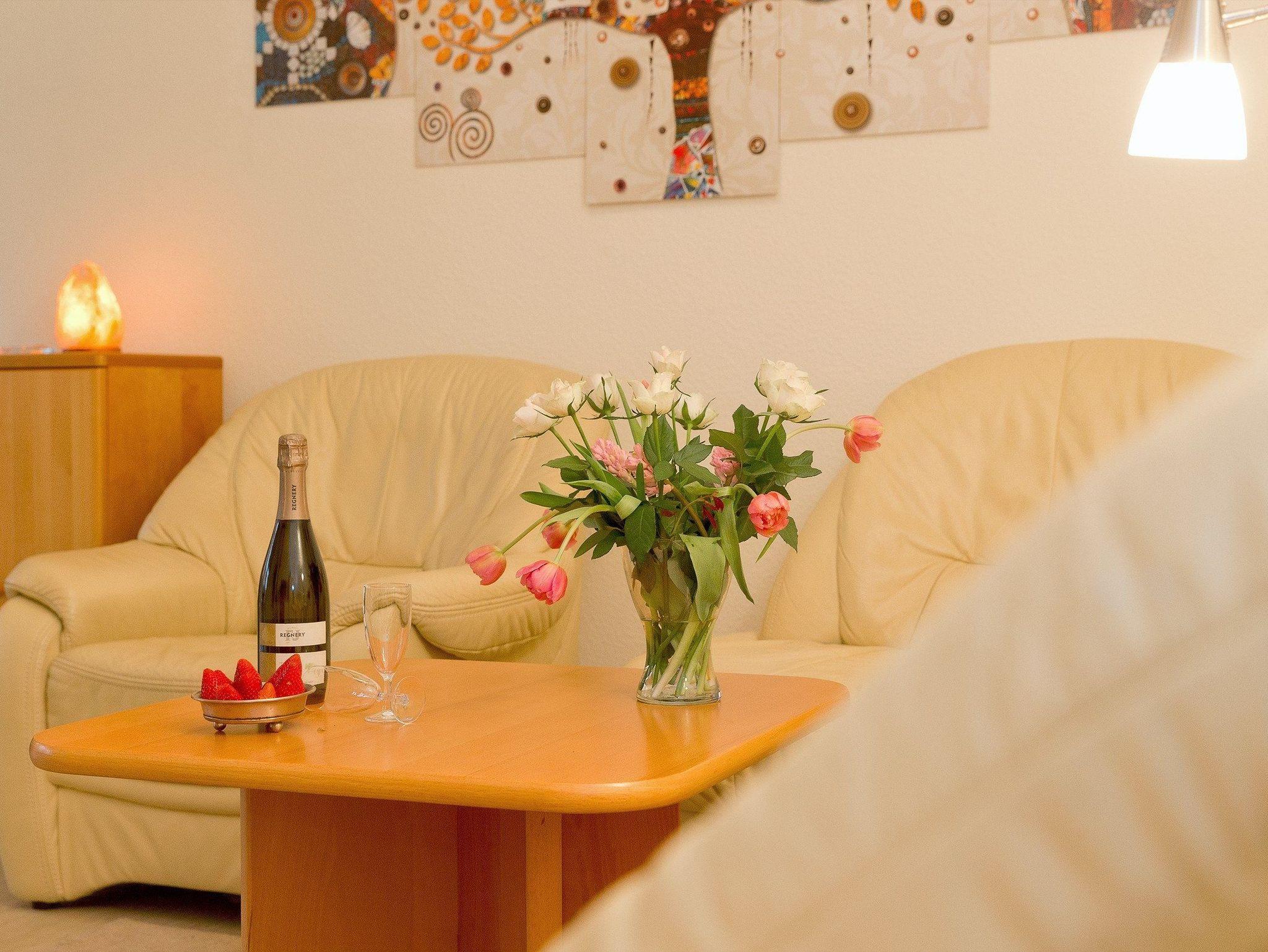 Im Wohnzimmer ist die Aufbettung mit einem Kleinkind bis 3 Jahre in einem Babyreisebett möglich. Das Babyreisebett können Sie gegen Gebühr hinzubuchen.