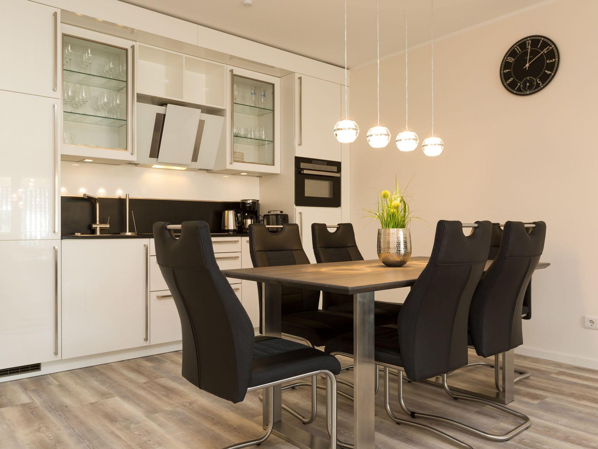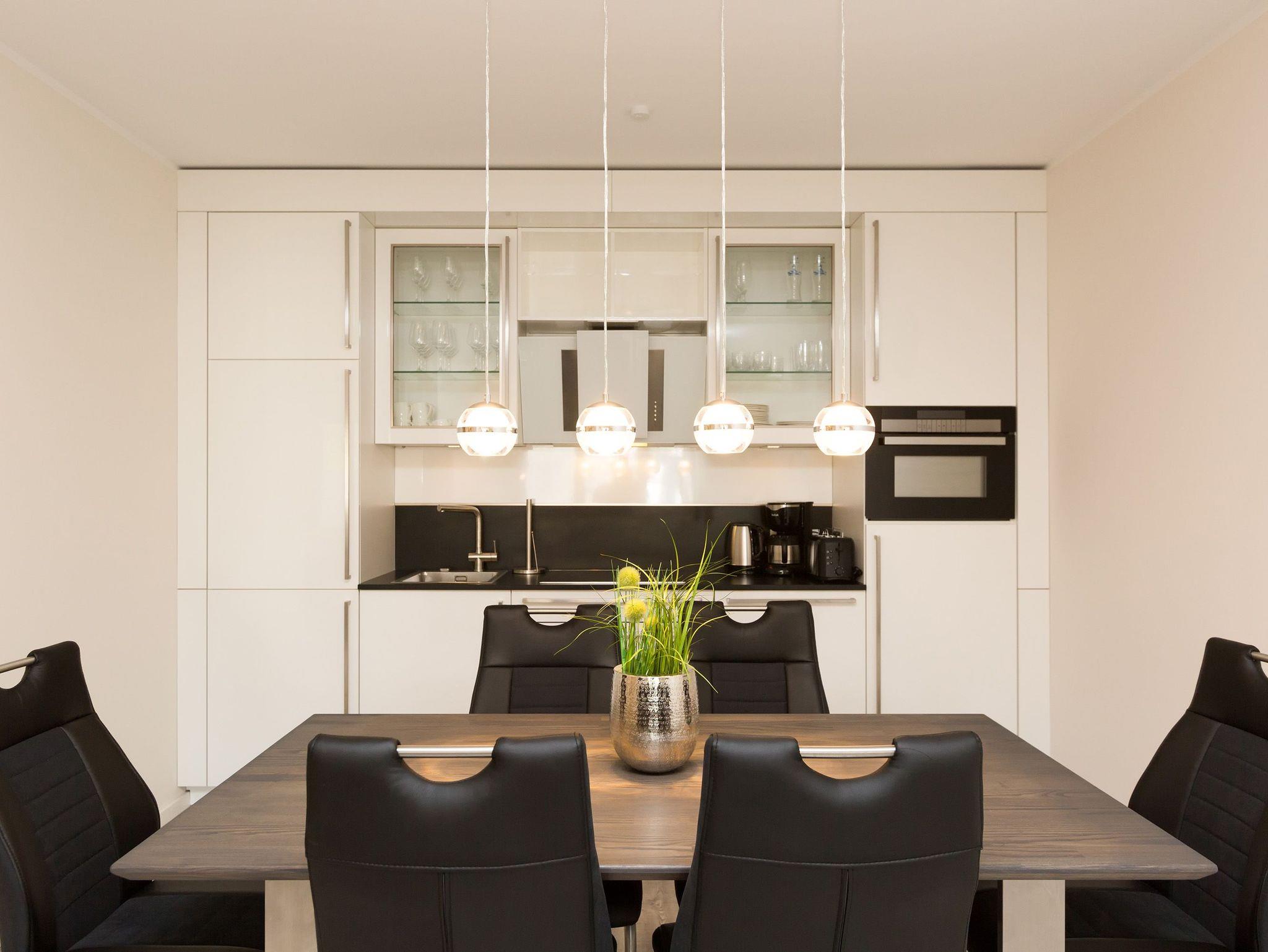 Das Appartement 10 in der Dünenresidenz werden Sie schnell in Ihr Herz schließen. Durch die moderne, liebevolle Ausstattung und die schöne Aufteilung der Räume ist das 3 Raum Appartement (80 qm) im 1. Obergeschoss ein ideales Urlaubsziel für 2 Personen und 2 Kinder bis 16 Jahre. Ihr Wohnbereich ist großzügig, lichtdurchflutet und empfängt Sie mit einer großen, bequemen Sitzgruppe, Flat-TV und modernen Elektrokamin. Die angrenzende, offene Küche mit Essplatz fügt sich harmonisch ein und ist natürlich komplett ausgestattet. Das Schlafzimmer mit komfortablen Doppelboxspringbett (1.80m x 2.00m) und Flat -TV sorgt für entspannte Nächte. Das zweite Schlafzimmer ist mit einem modernen Ausziehbett (je Liegefläche 0.90m x 2.00m) ausgestattet. Ein großes Bad mit Dusche und WC ergänzt die Wohnung. Neben der schönen Infrarotsauna in der Wohnung ist der große (21 qm) Südbalkon das Highlight der Wohnung. Ausgestattet mit Gartenmöbeln genießt man hier die Usedomer Sonne bis in die Abendstunden hinein. Für Ihren Komfort sind die Betten bei der Anreise bezogen und Handtücher liegen bereit. Ein Pkw-Stellplatz steht in der Tiefgarage (max. Einfahrtshöhe 1,93 m) zur Verfügung. Das Wlan-Netz kann kostenlos genutzt werden. Für den Tag am Meer steht Ihnen als besonderes Bonbon von Ende Mai bis Ende September (je nach Witterung) ein Strandkorb am Strand kostenlos zur Verfügung.