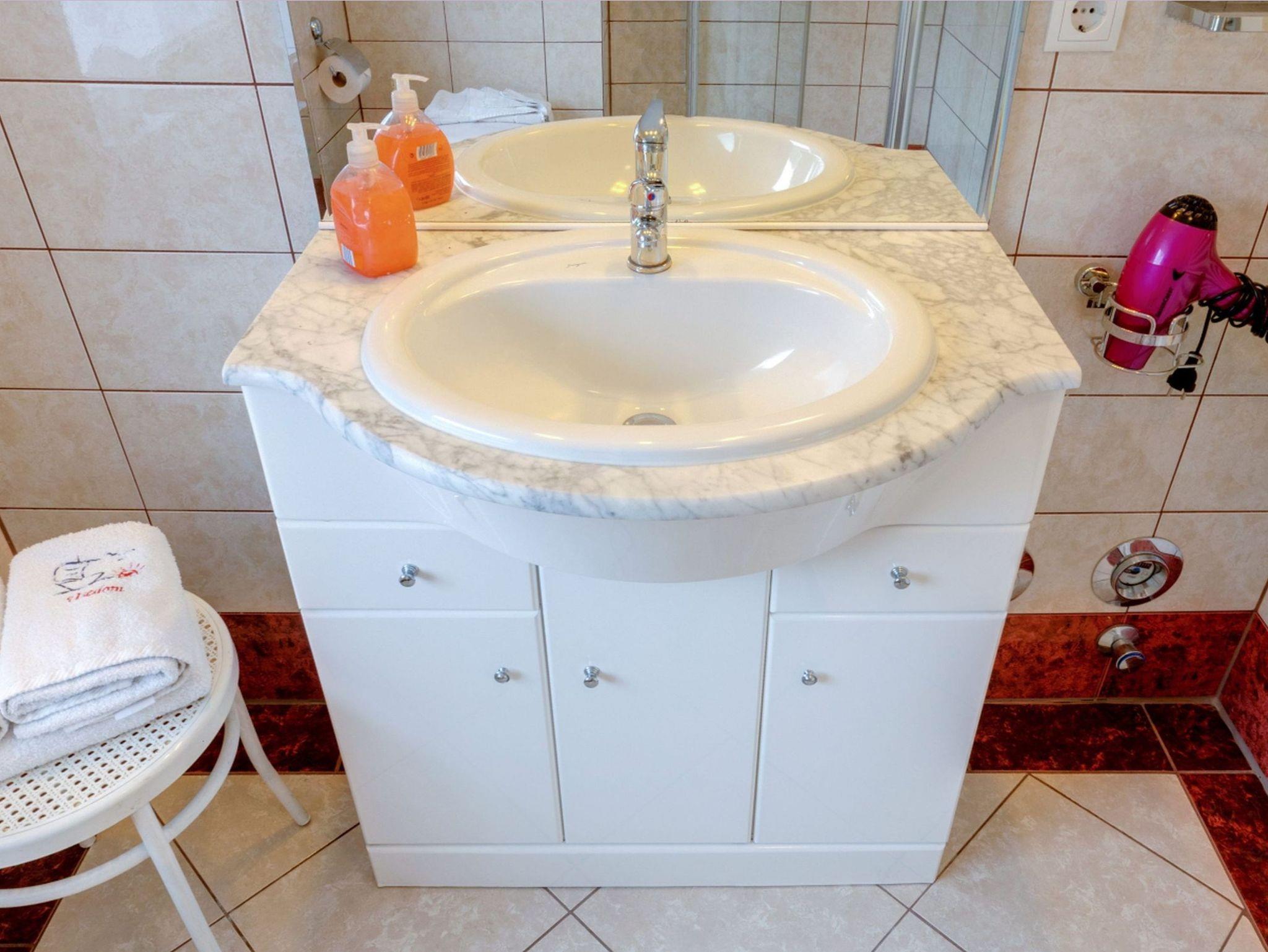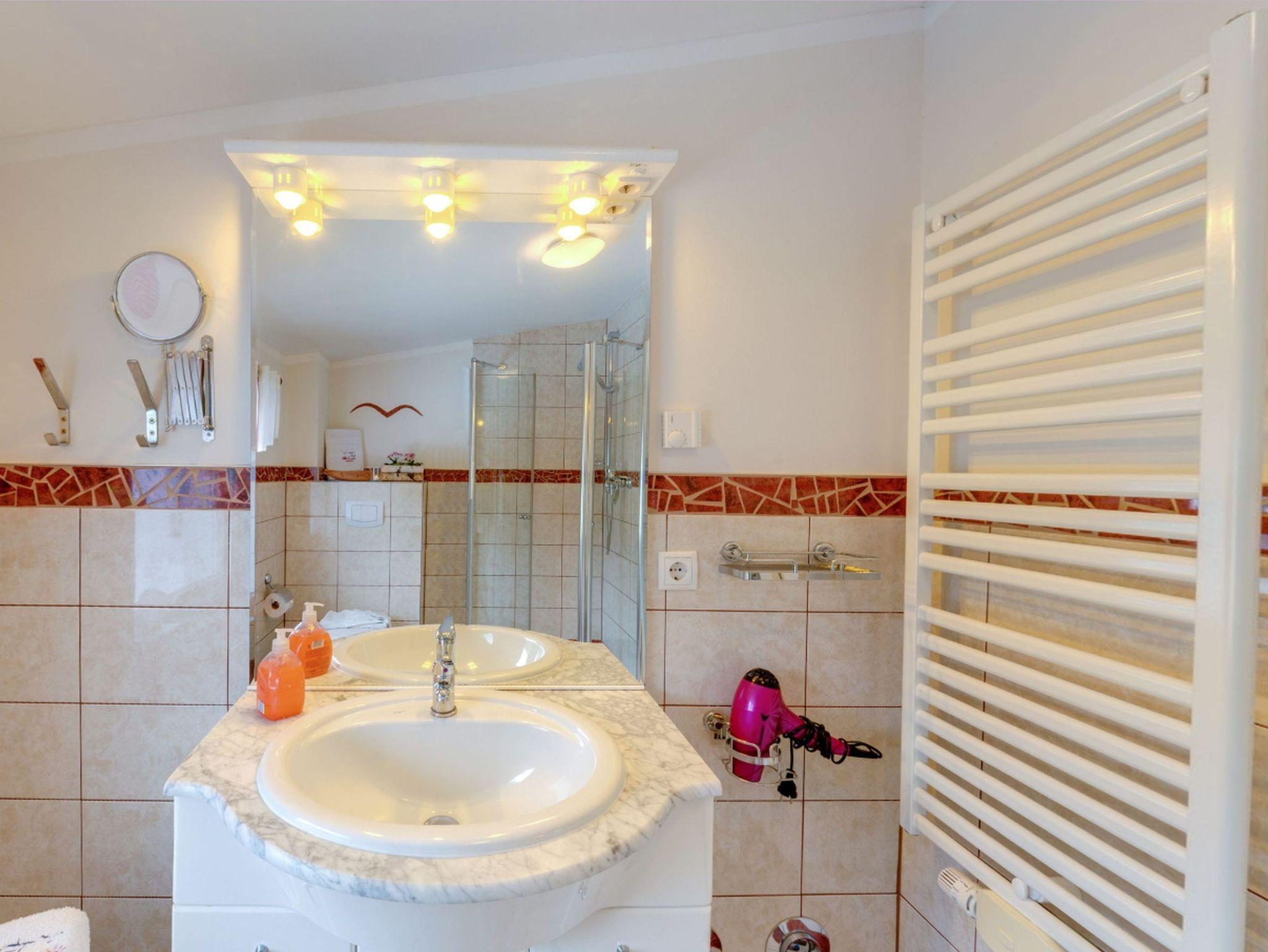 Das Badezimmer verfügt über ein Fenster, eine Dusche, ein Waschbecken, ein WC und einen Föhn alles für Ihren Komfort.