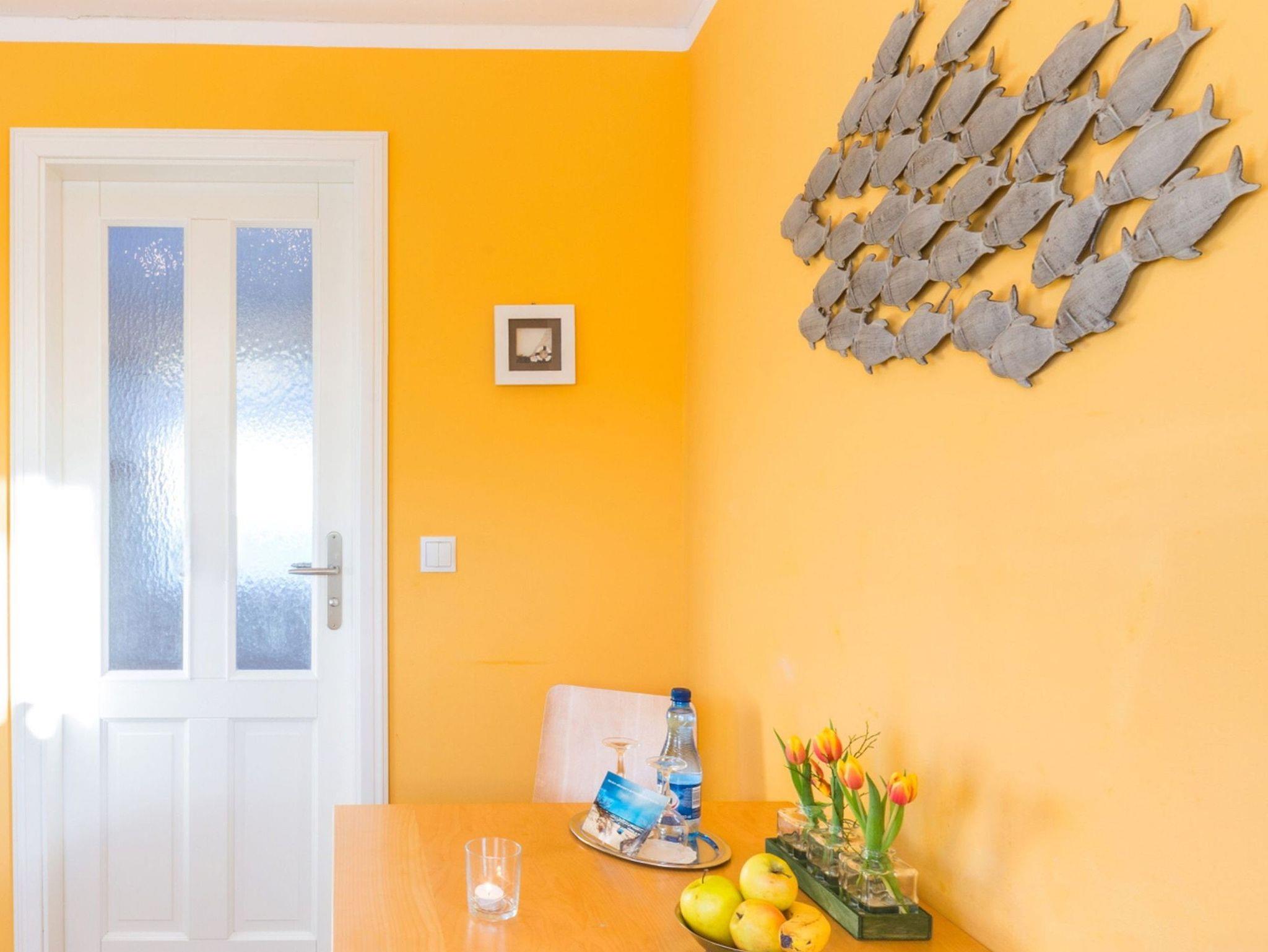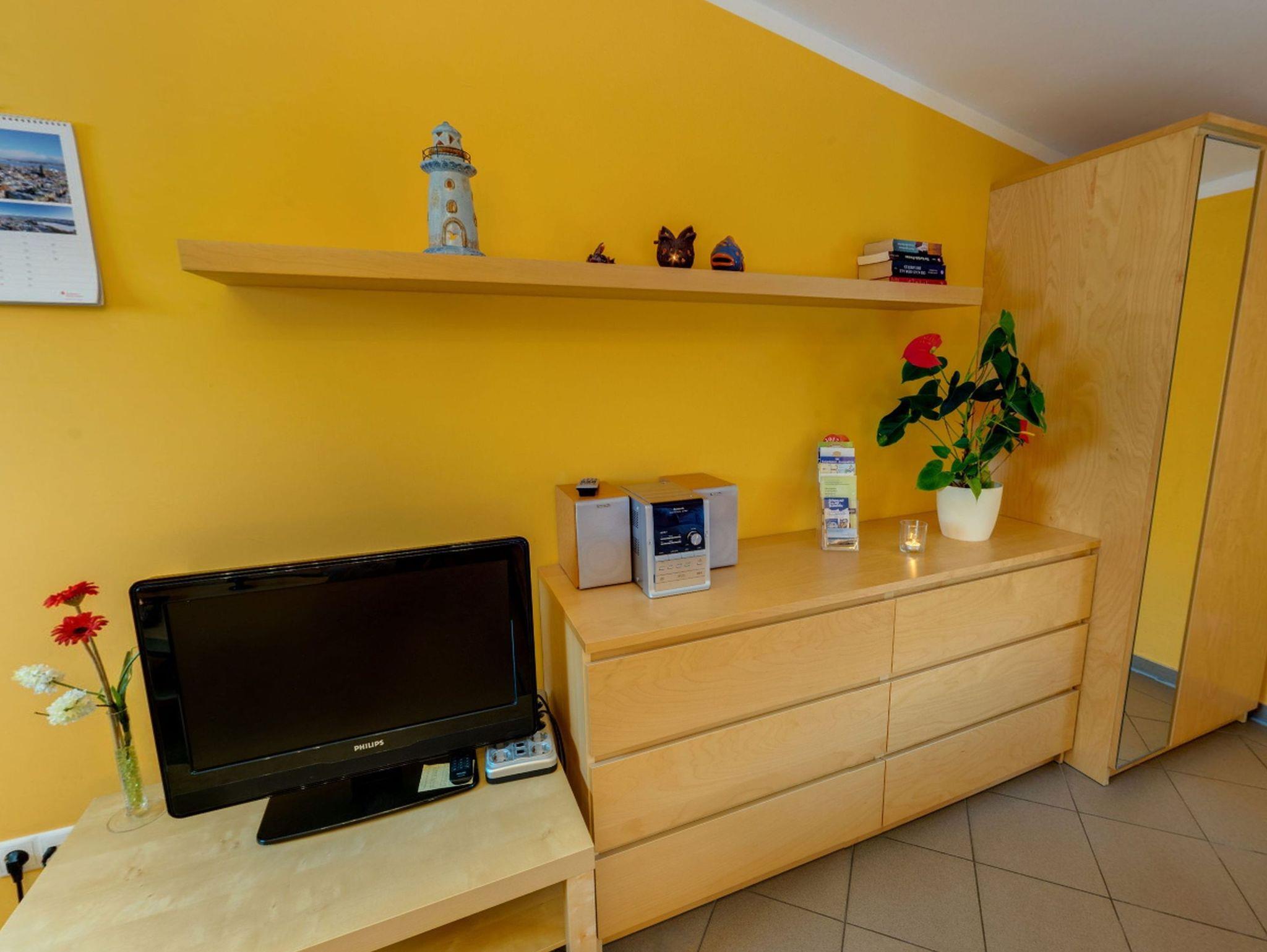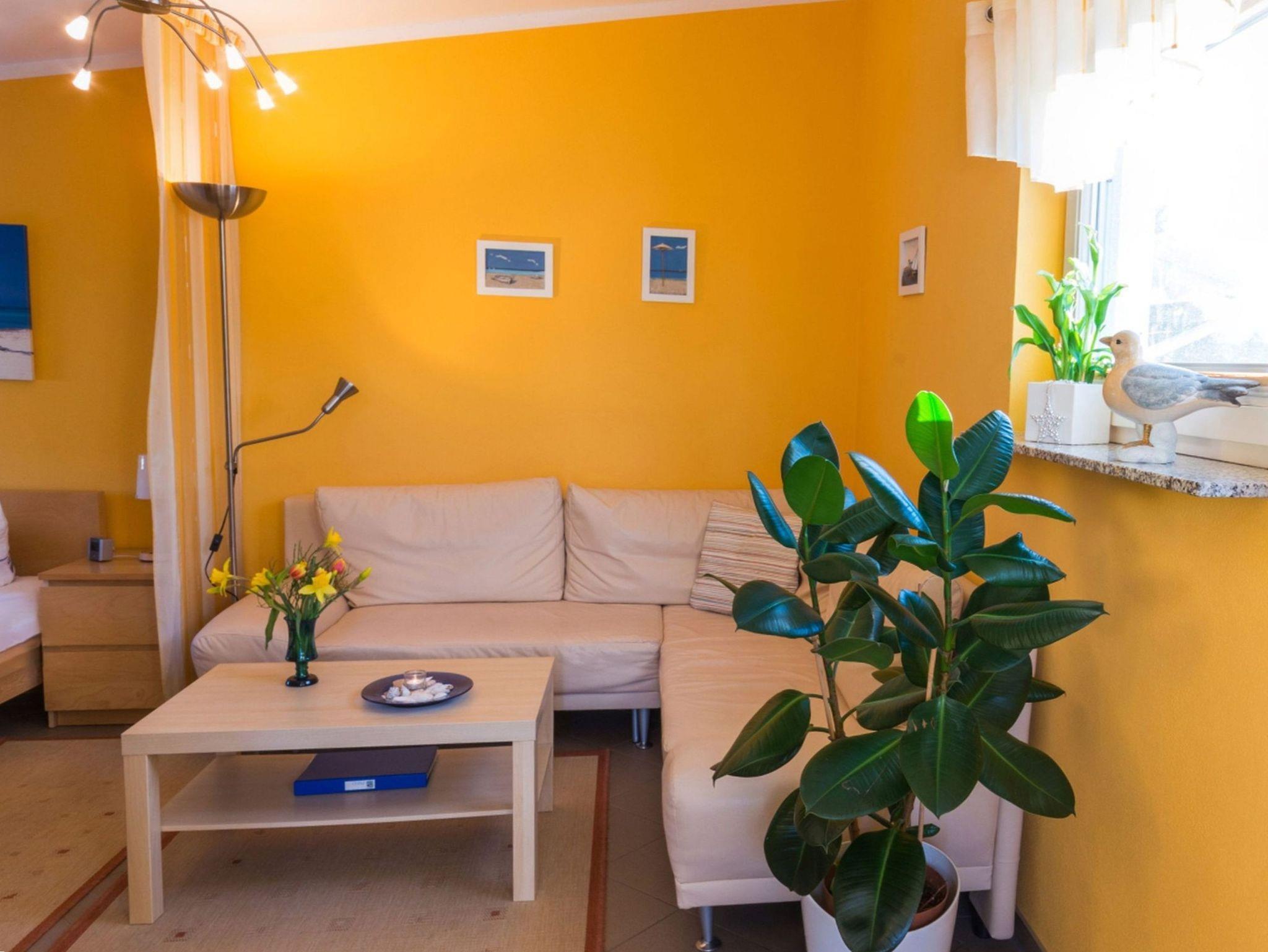 Das lichtdurchflutete und geschmackvoll eingerichtete Appartement verfügt über einen gemütliche Schlafbereich, ein modernes Bad mit Dusche sowie einen einladenden Wohnbereich mit integrierter Küche. Die maritime Einrichtung schafft eine entspannte Atmosphäre, die zum Wohlfühlen einlädt.