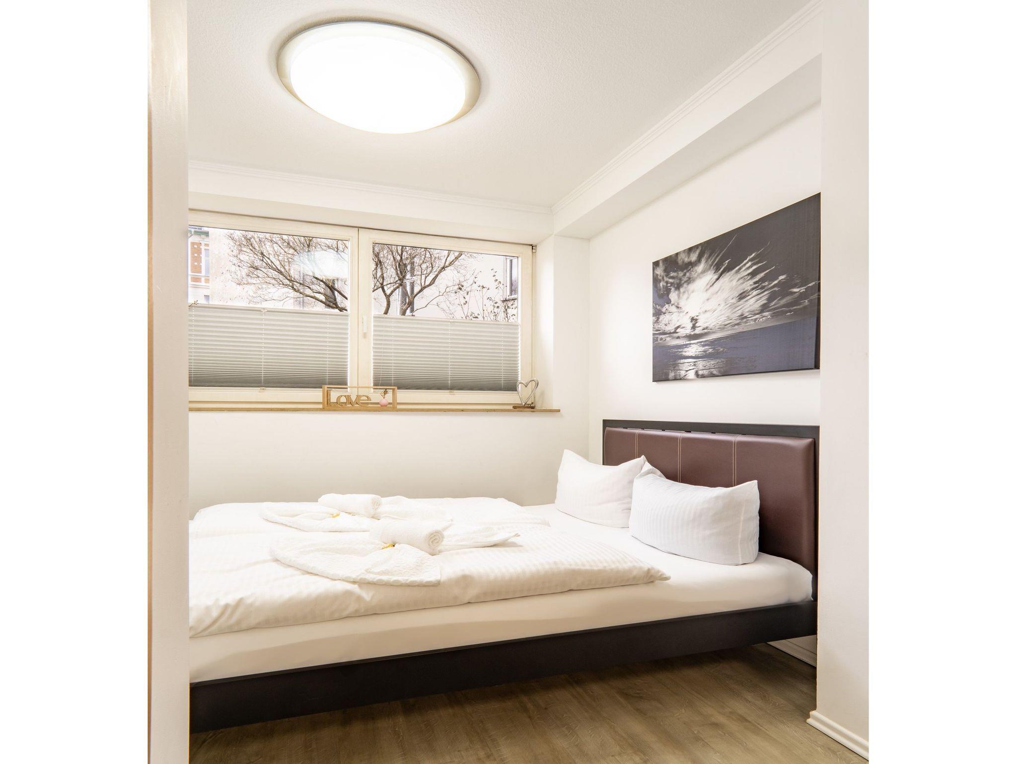 Auf 63 qm bietet Ihnen die Wohnung alles, was Sie zum Wohlfühlen brauchen: ein großes Wohnzimmer zum Entspannen, ein Schlafzimmer mit einem 180 cm breiten Doppelbett und eine sonnendurchflutete Veranda, auf der Ihre Kinder, Eltern oder Bekannte zwei weitere Schlafplätze auf einem 140 cm breiten Bett finden. Für die Nachtstunden ist die Veranda selbstverständlich verdunkelbar.
