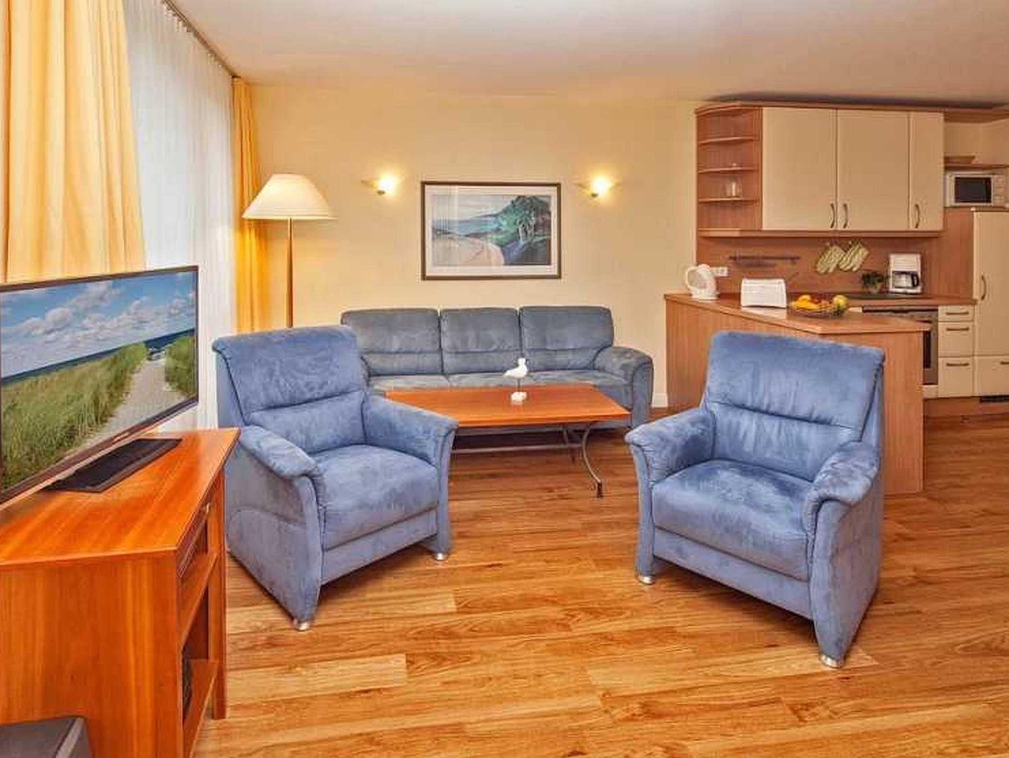 Die komfortable Ferienwohnung befindet sich im ersten Obergeschoss im Haus 1 der Anlage Strandpark Heringsdorf. Die Promenade und den breiten Ostseestrand sind direkt vom Grundstück aus erreichbar.