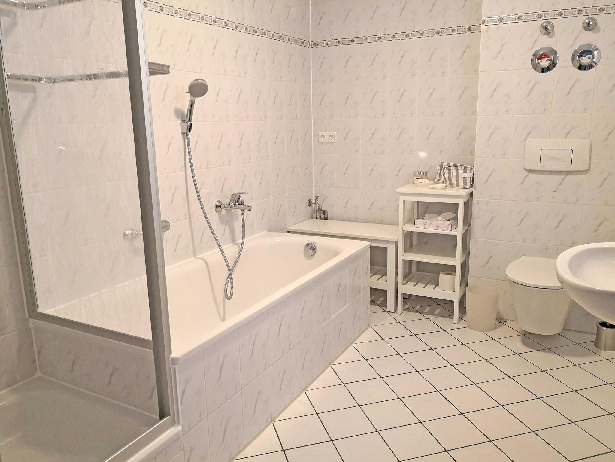 Die komfortabel und modern ausgestattete 2-Zimmer-Ferienwohnung mit separater Küche und Dusch- Wannenbad verfügt über zwei Zimmer, welche sich beide als Wohn- und Schlafzimmer nutzen lassen. Beide Zimmer verfügen jeweils über Doppelbetten und eine Schlafcouch sowie Flachbildfernseher. Die Wohnung ist somit ideal geeignet für zwei Paare oder Familien mit Kindern. Der sonnige, möblierte Balkon mit unverbautem Blick ist von einem der beiden Zimmer begehbar. Ein Tiefgaragenstellplatz und ein Fahrradkeller gehören zur Wohnung.