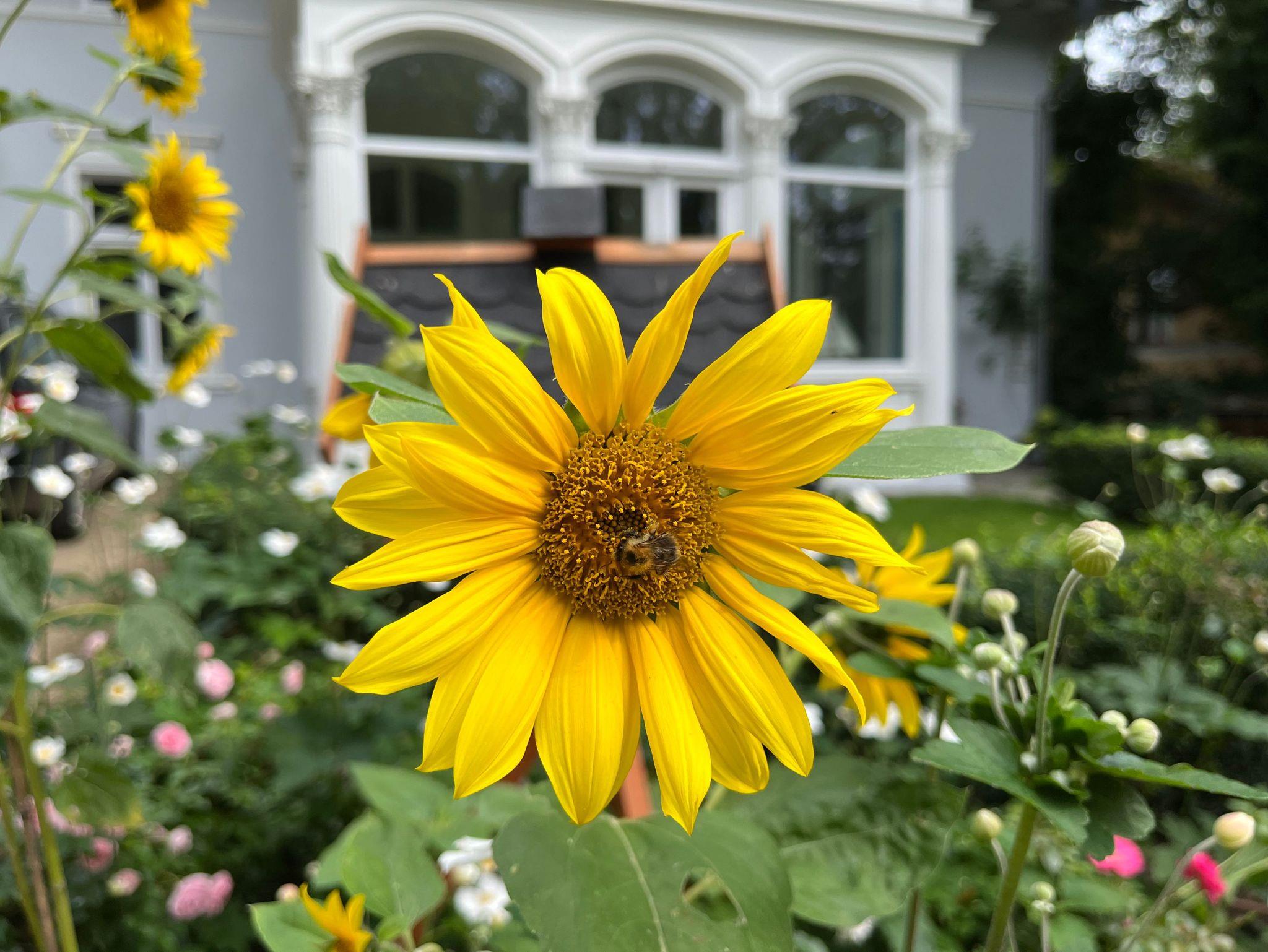 Durch die großen Fensterfassaden dieser ca. 85 qm großen Wohnung geht der Innen- in den Außenraum über und bietet Weite und Aufenthaltsqualität. Der Blick geht über den gepflegten Garten hin zur Ostsee und ist zu jeder Jahreszeit beeindruckend. Im Sommer das satte Grün der Bäume und das herrliche Blau des Meeres, mit Schiffen am Horizont, mit Möwengeschrei und dem vom Strand herauf wehenden Lachen der Badenden. Und bei all dem ist man ganz für sich und kann erholsam die Seele baumeln lassen. Als besonderes Ausstattungsmerkmal dieser Wohnung ist das Klavier hervorzuheben.