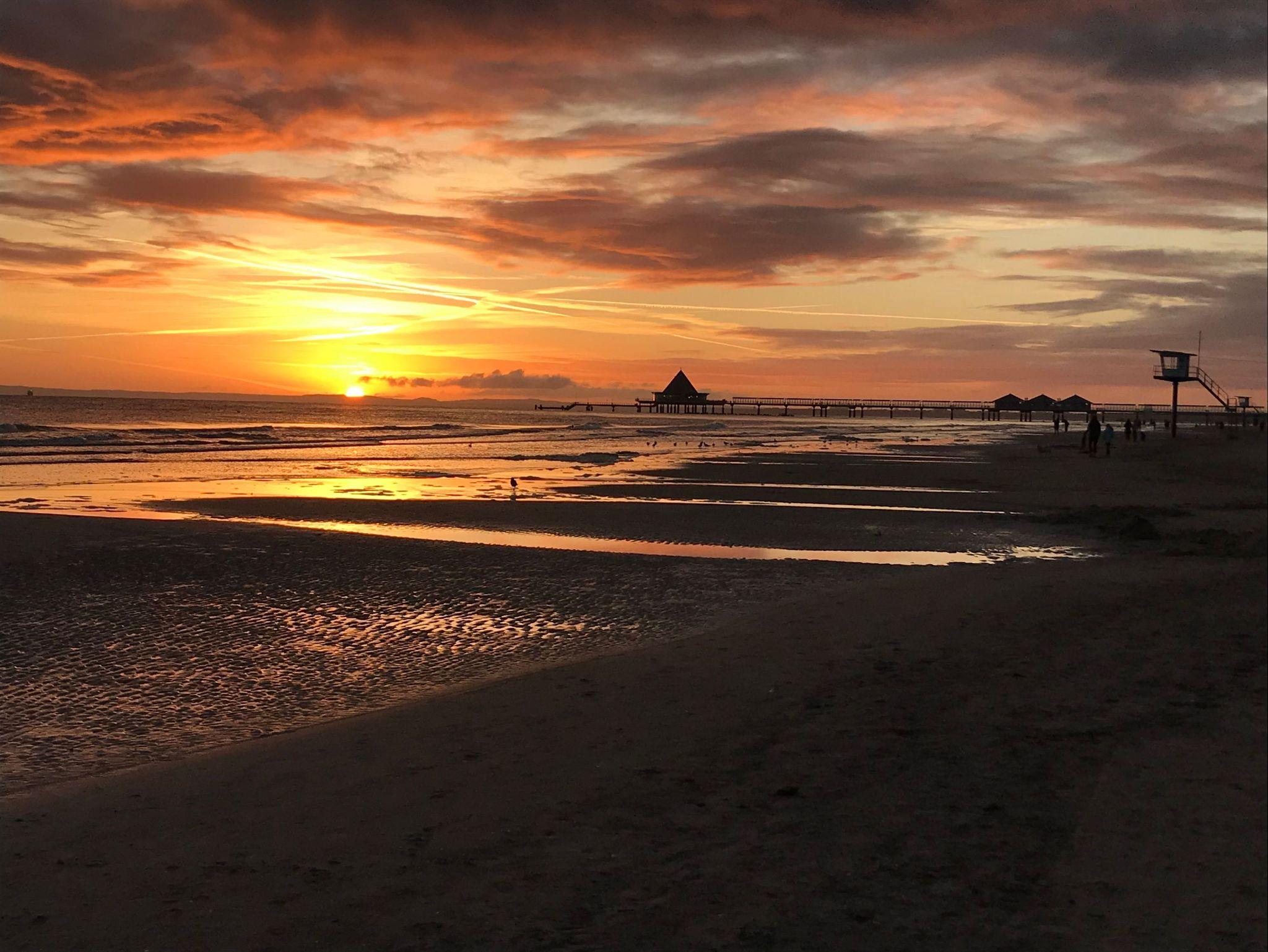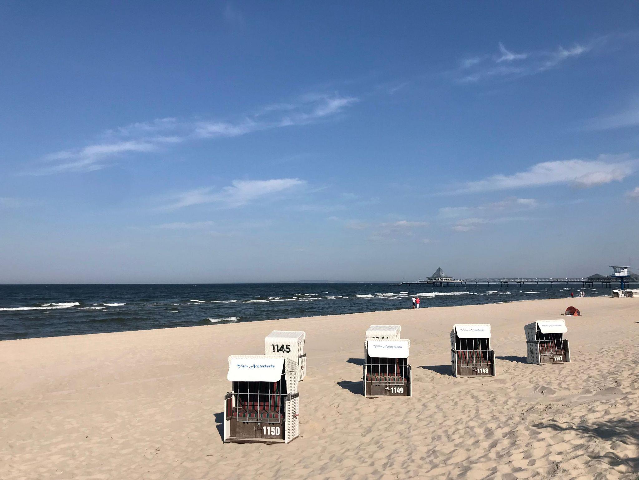 Auf dem Grundstück führt eine Treppe hinunter in den Kurpark und an den breiten, weißen Sandstrand. Hier bieten wir Ihnen von Mai bis September die Möglichkeit - noch vor Reiseantritt - einen unserer 4 Strandkörbe zu reservieren (70 €/Woche). Unser Strandabschnitt liegt etwas ruhiger, abseits vom quirligen Strandleben rund um die Seebrücke. Restaurants sowie Möglichkeiten zum Bummeln und Shoppen gibt es in der Kulmstraße und im wenige Schritte entfernten Ortszentrum.