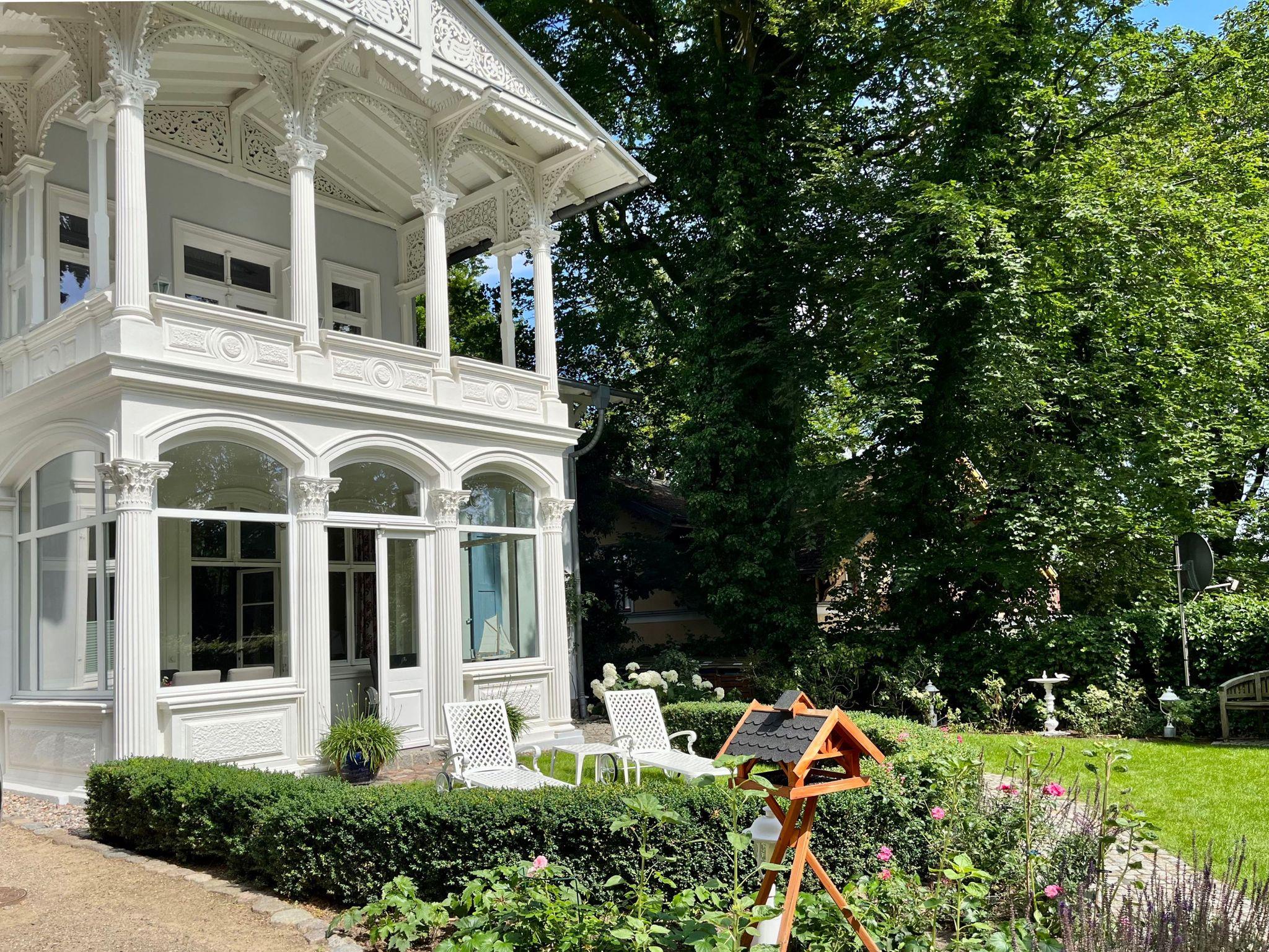 Die bezaubernde 5-Sterne-Villa (erbaut im Jahre 1845) ist eine der ältesten erhaltenen Villen Heringsdorfs. Erhaben liegt sie - mit phantastischem Blick - auf der Anhöhe des Kulms, auf einem großzügigen, gepflegten Grundstück mit altem Baumbestand. Meerseitig wurde das Haus erweitert und öffnet sich zur Ostsee ? mit Meerblick aus allen Wohnungen. Viele Stammgäste kehren immer wieder an diesen erholsamen Ort zurück und schätzen das inhabergeführte Haus.