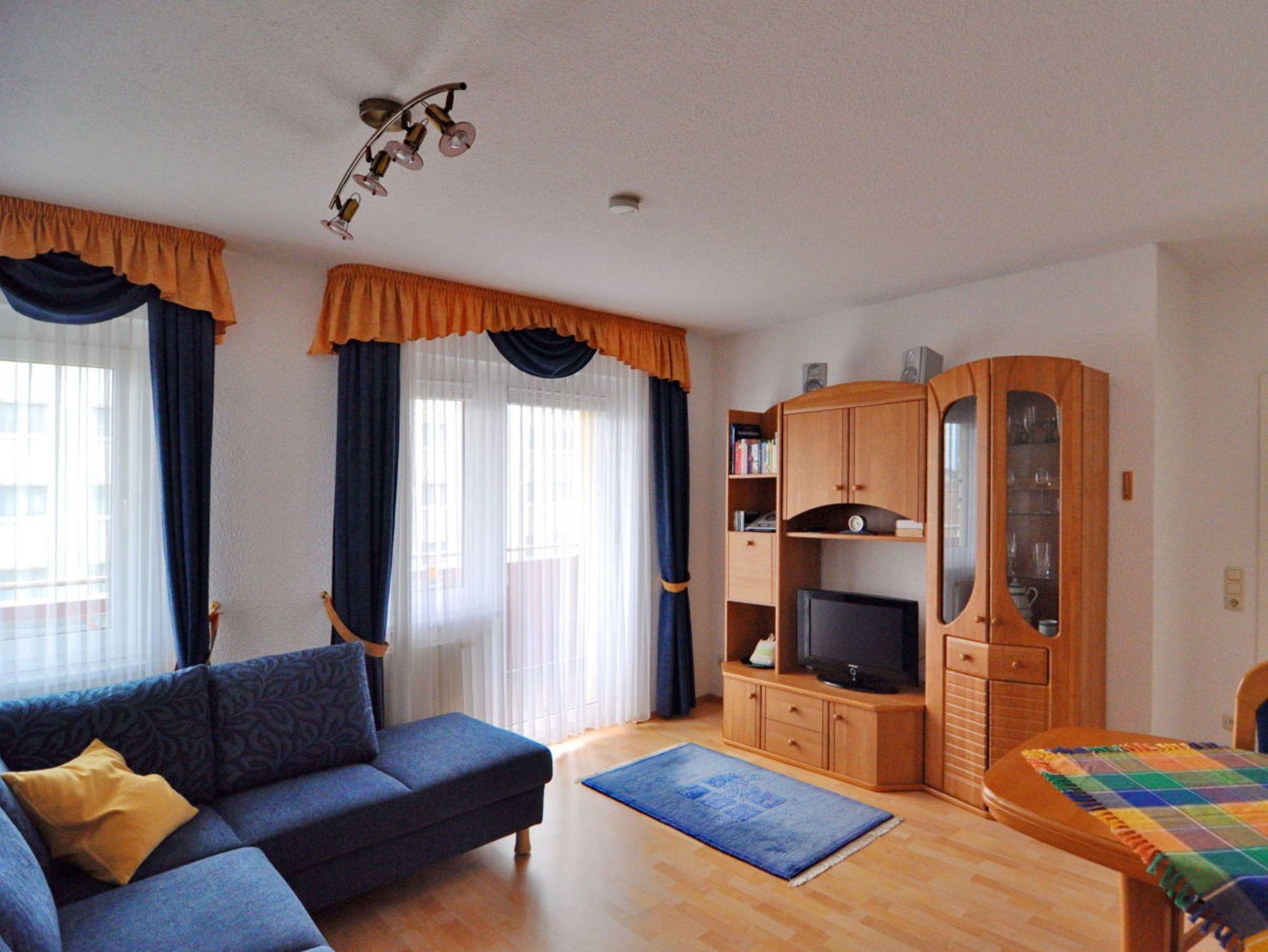 Die für 2 Personen eingerichtete Ferienwohnung liegt im zweiten Stock eines größeren Wohnobjektes. Sie besteht aus einem Wohnzimmer mit Balkon in südwestlicher Ausrichtung, einem Schlafzimmer, einer separaten Küche und einem Bad. Ein Aufzug ist vorhanden, ebenso ein Parkplatz unmittelbar am Eingangsbereich.