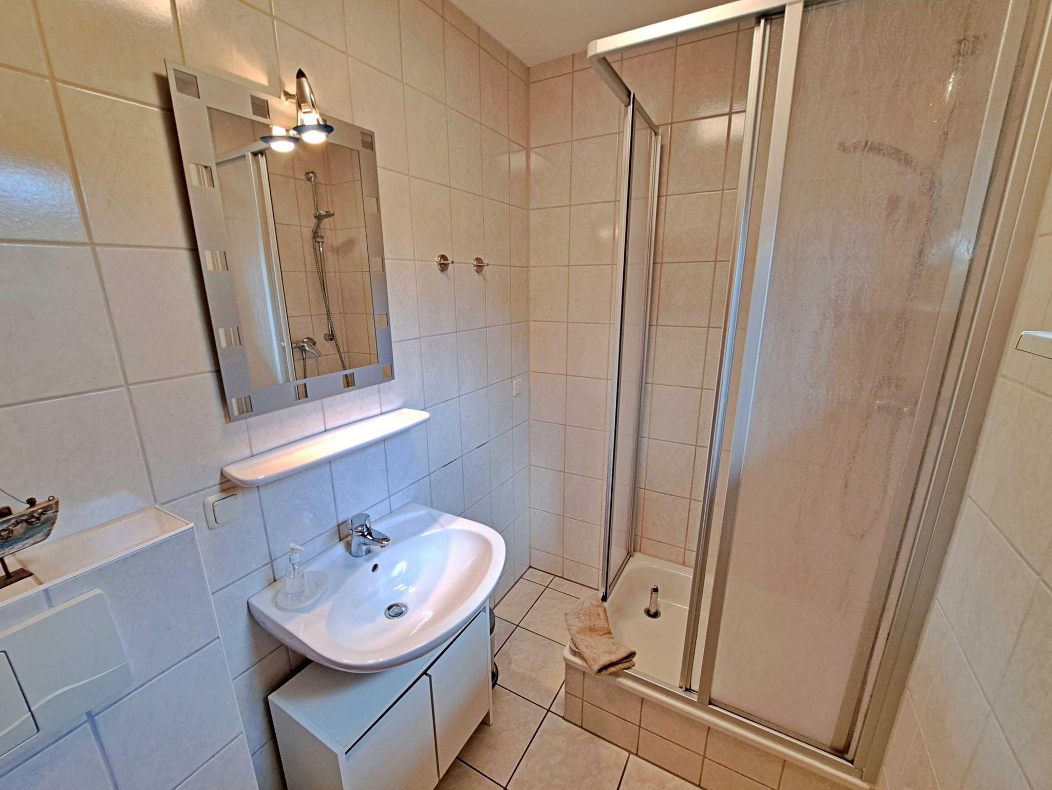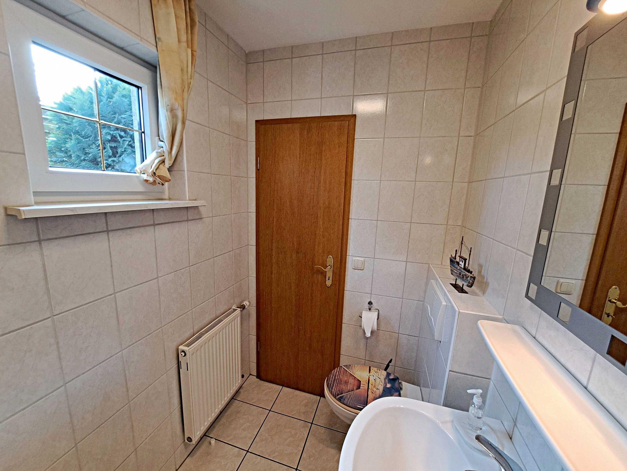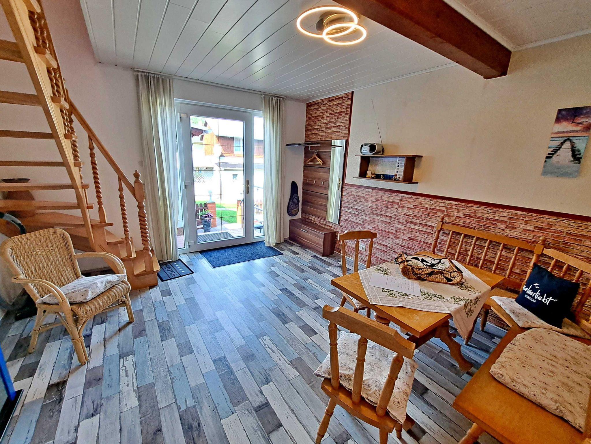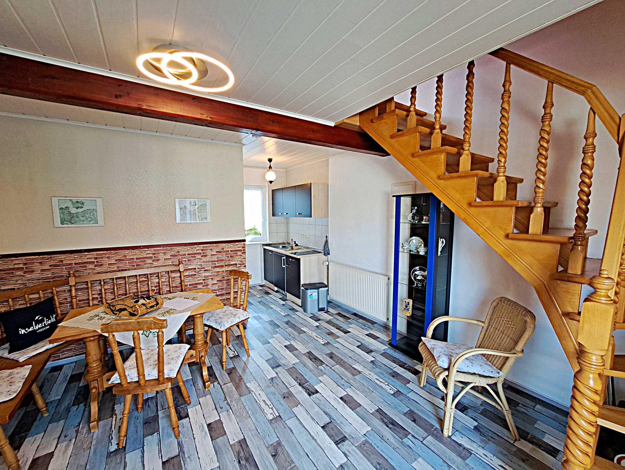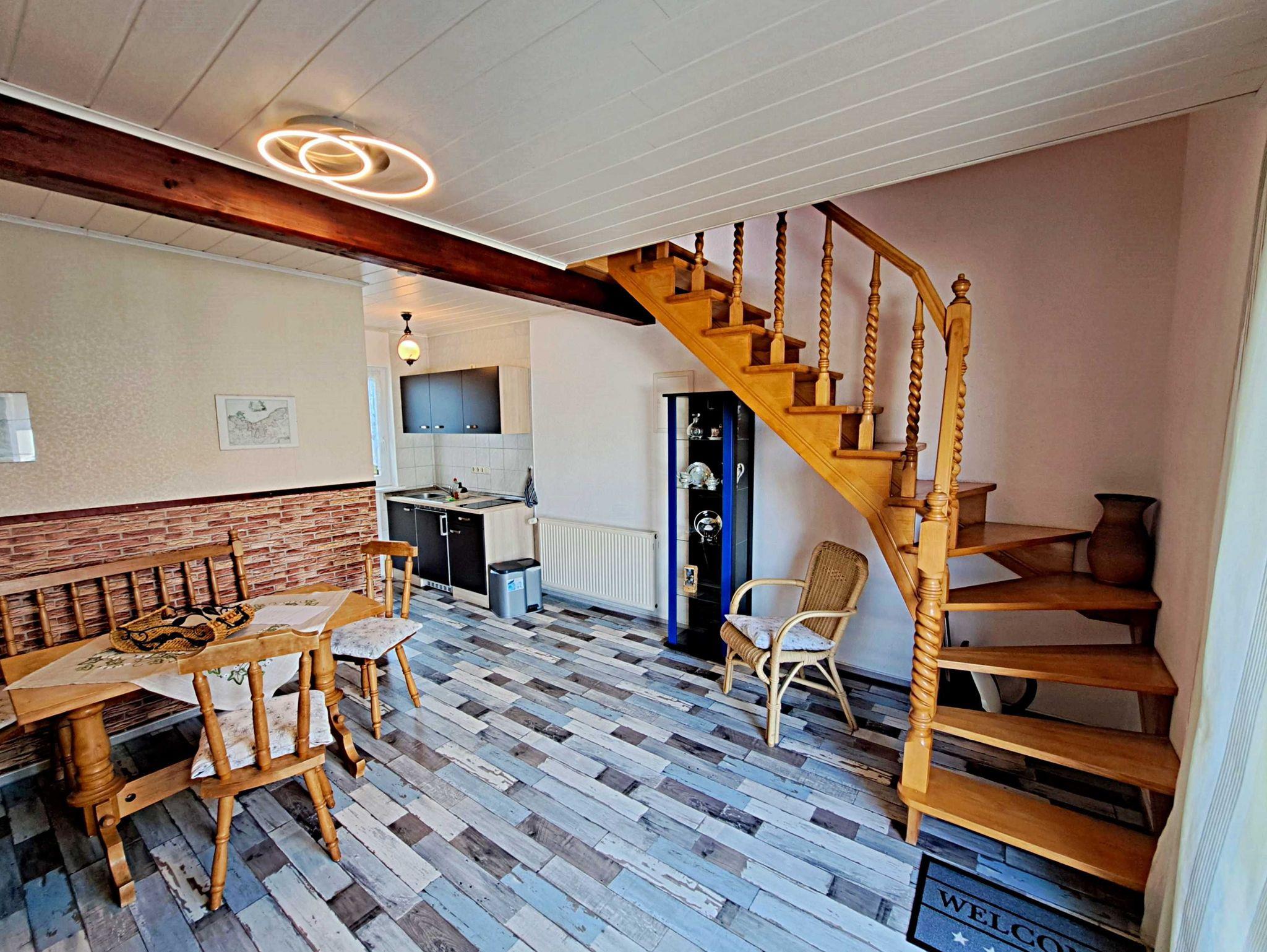 Über eine Treppe gelangen Sie ins 1. Obergeschoss, wo ein einladendes Wohnzimmer mit einer bequemen Couch, die auch als Schlafgelegenheit für zwei weitere Personen dient, auf Sie wartet. Außerdem gibt es ein separates Schlafzimmer mit einem komfortablen Doppelbett und Kleiderschrank. Genießen Sie die frische Luft auf der möblierten Terrasse direkt am Eingang, die perfekt ist um bei schönem Wetter Ihr Frühstück zu genießen oder den Abend mit einem Glas Wein ausklingen zu lassen. Ein Pkw-Stellplatz direkt am Haus sowie kostenfreies W-LAN stehen Ihnen ebenfalls zur Verfügung. Falls Sie gerne grillen möchten, können Sie auf Anfrage eine Grillmöglichkeit direkt beim Vermieter ausleihen. Zudem besteht die Möglichkeit gegen eine Kaution von 50 € eine Mikrowelle zur Verfügung gestellt zu bekommen.