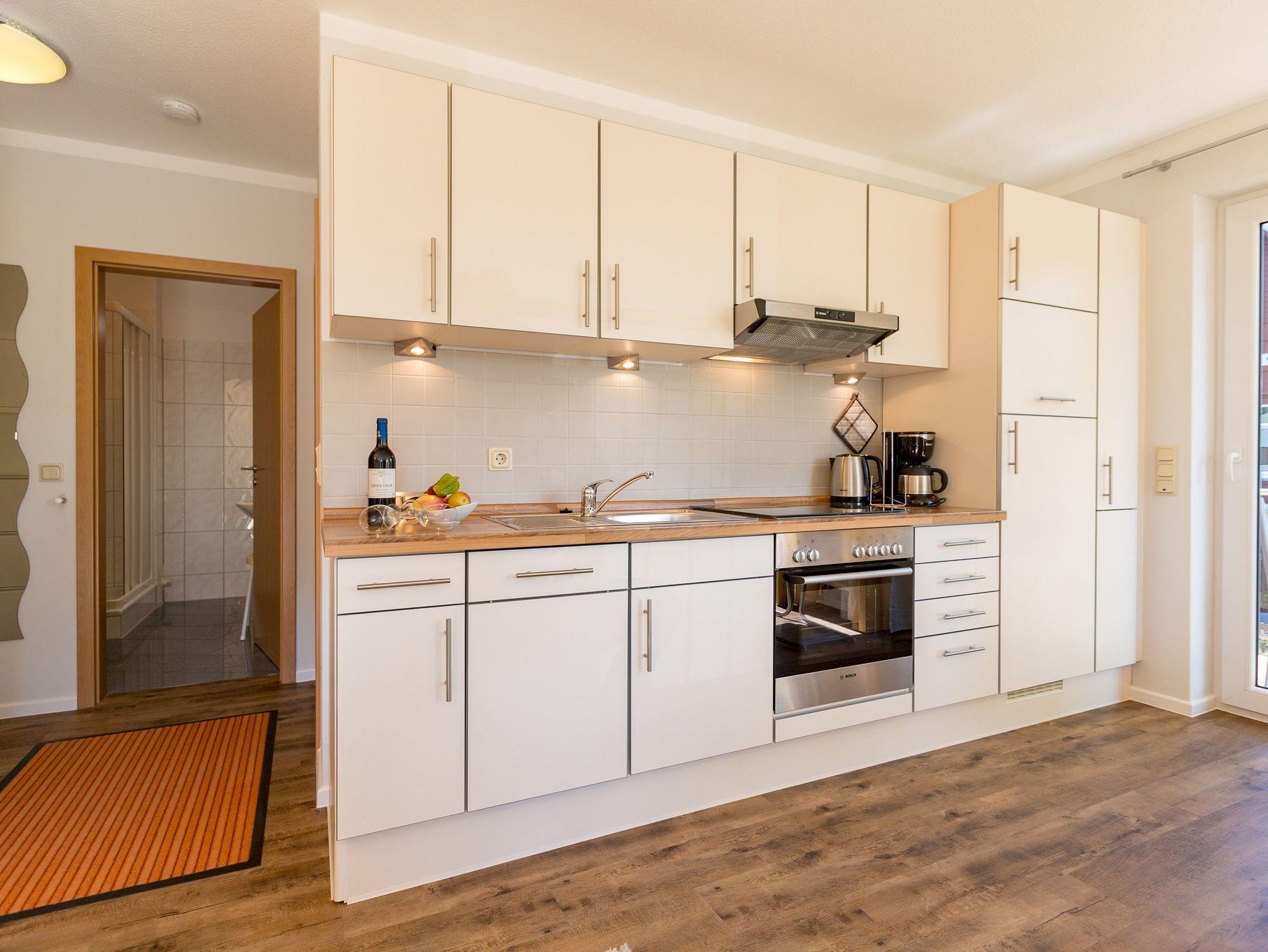 Wohlfühlen von der ersten Minute an, das verspricht die Ferienwohnung 11 im Haus auf dem Hügel die Moderne. Die hochwertige Einrichtung sowie die harmonisch abgestimmten Farben und Stoffe werden Sie genauso begeistern, wie die Lage dieses Domizils. Es befindet sich in der 1. Etage und ist nach Süden ausgerichtet, so dass Sie die Mittags - und Abendsonne auf Ihrem Balkon genießen können. Im Wohnbereich sind eine komplett ausgestattete Küchenzeile und ein Essplatz integriert. Vom Wohnbereich aus gelangen Sie auch auf Ihre beiden Balkone die einmal zur Morgensonne und zur Abendsonne ausgerichtet sind. Nach einem erkundungsreichen Tag bietet das Schlafzimmer mit Doppelbett eine erholsame Nacht. Auf Wunsch stellen wir für unsere kleinen Gäste ein Kinderreisebett (ohne zusätzliche Matratze [&] Bettzeug) und einen Kinderhochstuhl ( gegen einen Aufpreis) zur Verfügung. Für Ihren Komfort sind die Betten bei der Anreise bezogen und Handtücher liegen bereit. Ihr Bad ist mit einer Dusche ausgestattet.