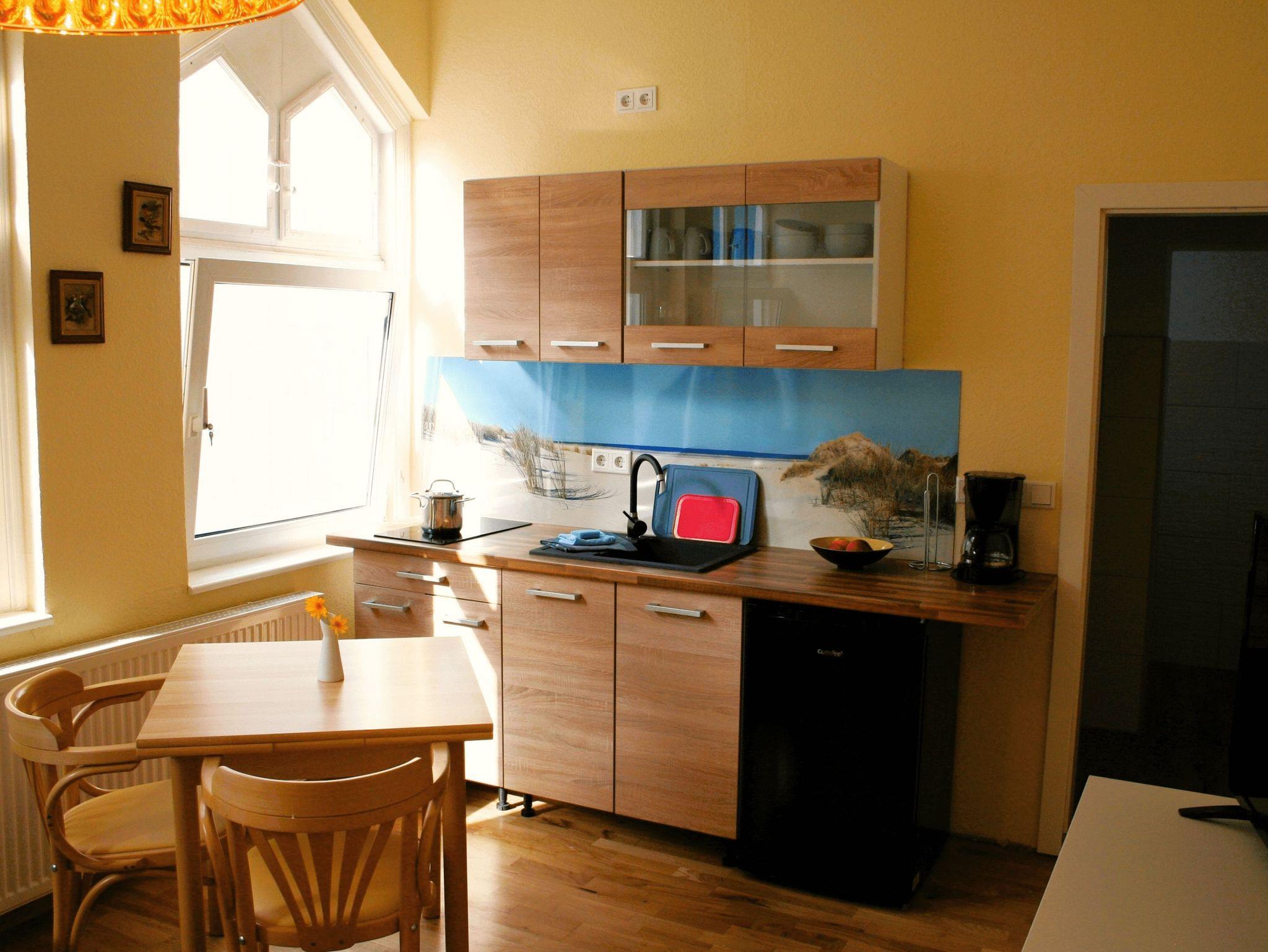 Das Appartement 5 eignet sich perfekt für einen gemütlichen Pärchenurlaub, vielleicht auch mit Baby. Im kombinierten Wohn- und Schlafraum befinden sich ein Doppelbett (160cm breit), ein großer Kleiderschrank, ein Tisch mit zwei Stühlen, sowie ein Flat-TV. Zu dem gibt es in der Wohnung ein kleines Badezimmer mit Dusche und ein separates WC. Dieses Appartement verfügt über Pantry-Küche mit 2 Herdplatten, Mikrowelle, Kühlschrank und Toastersowie Kaffeemaschine und Wasserkocher.