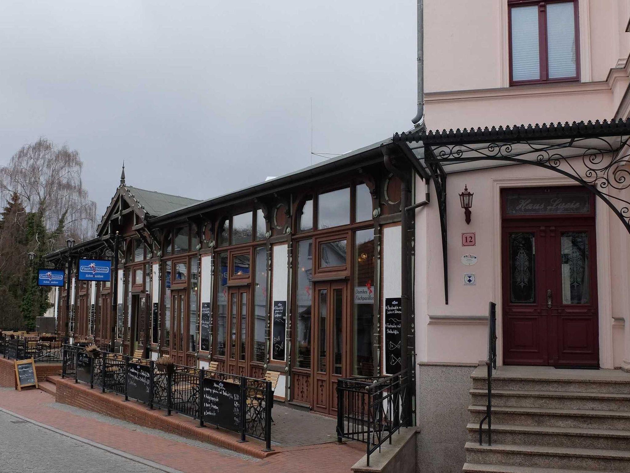 Nach liebevoller Sanierung, die im April 1999 abgeschlossen wurde, bieten wir Ihnen einen erholsamen Aufenthalt in dem Haus Lucie. Die Parkmöglichkeit befindet sich direkt auf dem Grundstück. Das Haus Lucie liegt im Herzen von Heringsdorf. In 3 Gehminuten erreichen Sie den Ostseestrand, den Rosengarten, die Konzertmuschel, Restaurants, Cafés und sämtliche Einkaufsmöglichkeiten. Eine Bäckerei befindet sich direkt im Erdgeschoss des Hauses. Ebenfalls befindet sich ein Fischrestaurant im Erdgeschoss. Der Bahnhof ist ca. 600 m entfernt. Ein Kinderbett kann auf Anfrage gestellt werden.