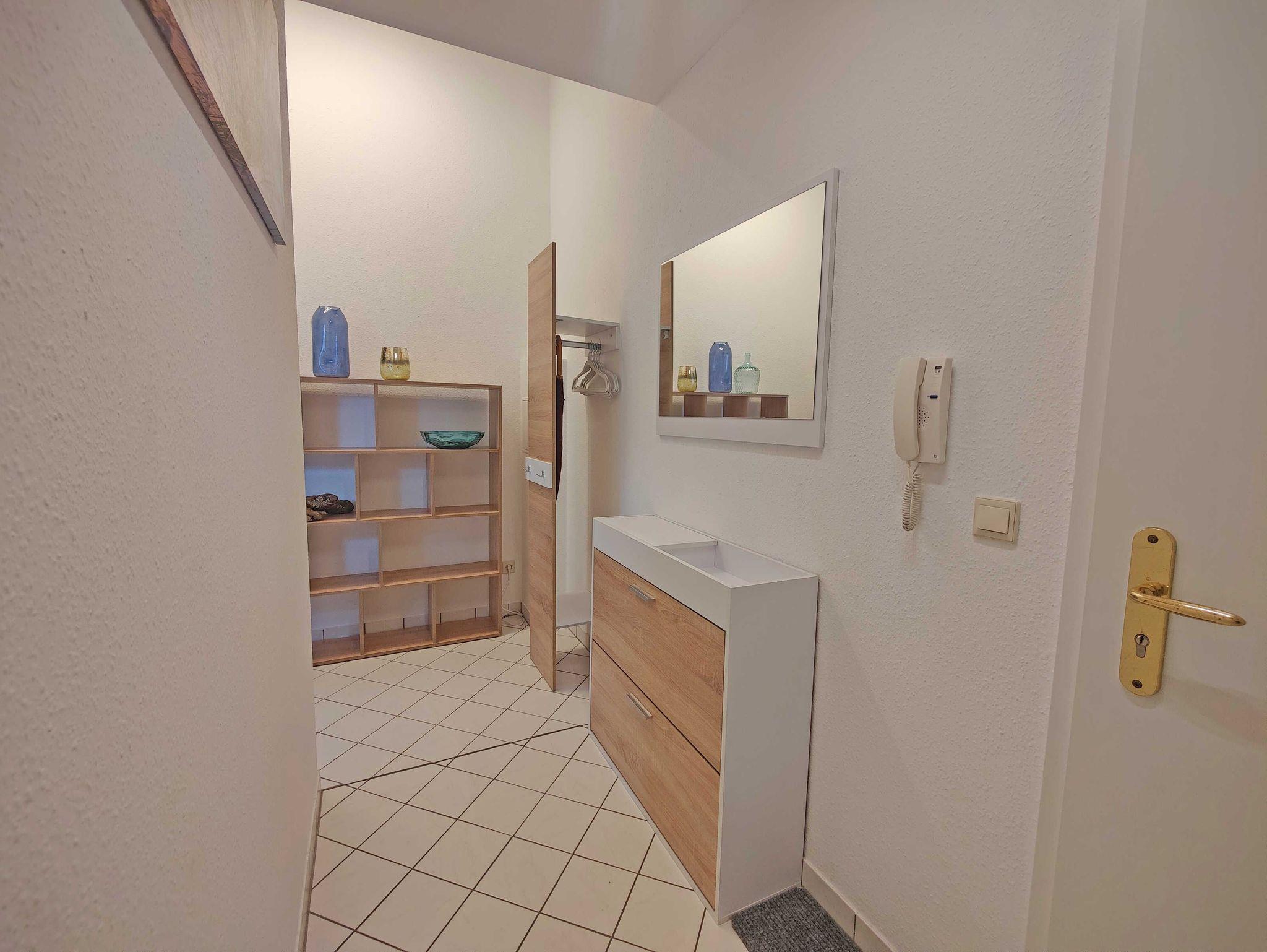Die im Jahr 2022 frisch renovierte und eingerichtete Zweizimmerwohnung ist 55 m² groß und verfügt über einen Balkon. Das Wohnzimmer ist modern und komfortabel eingerichtet. Die offene Küche lässt keine Wünsche offen. Das Schlafzimmer ist mit einem Doppelbett und einem Doppelstockbett als Aufbettungsmöglichkeit ausgestattet. Besonders für die kalte Jahreszeit glänzt diese Wohnung mit einer eigenen kleinen Sauna im Münzbetrieb. Somit ist die Wohnung der ideale Ausgangspunkt für einen entspannten Urlaub an der Ostsee.
