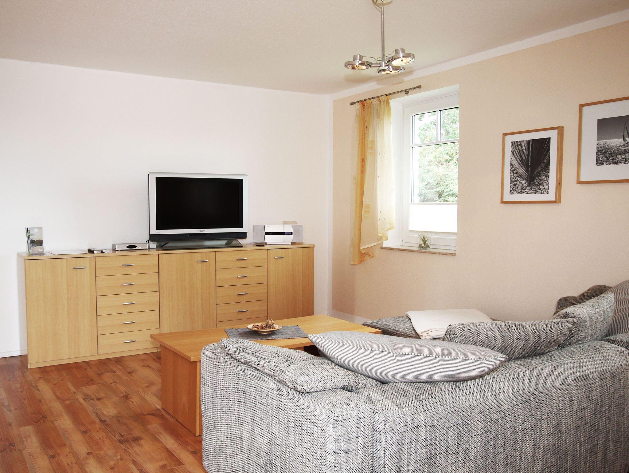 Wohnbereich mit Sofa, Flat-TV und Radio
