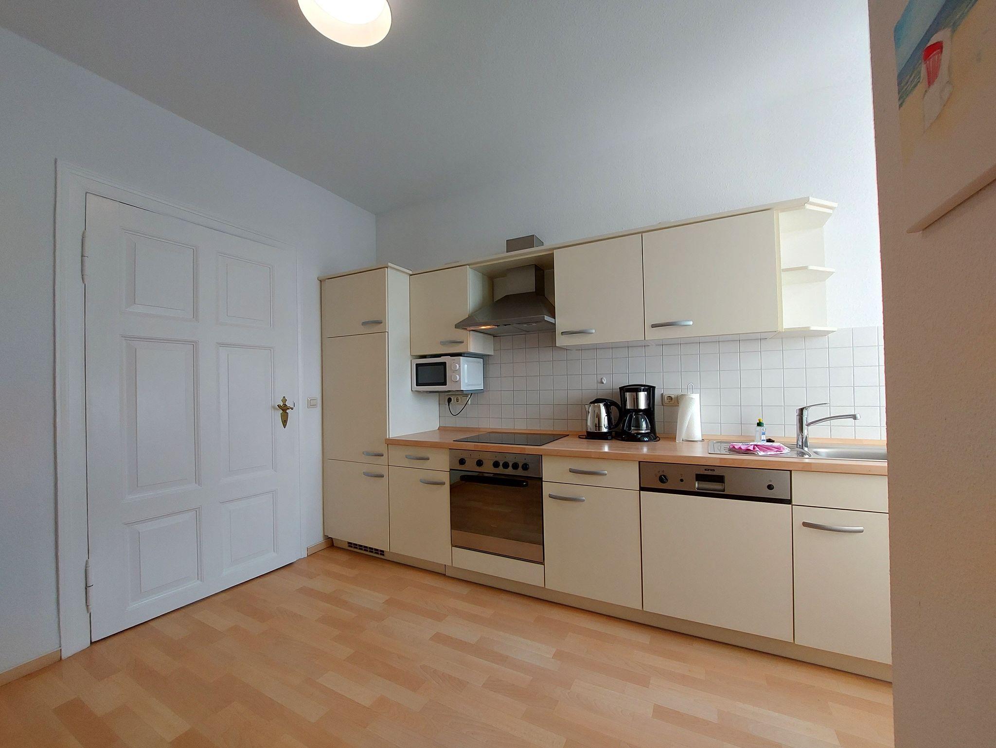 Die Ferienwohnung 7 befindet sich im Obergeschoss des Hauses und verfügt über Meerblick. Sie teilt sich auf in ein Eingangsbereich mit einer Küche, Wohnzimmer, Schlafzimmer und Loggia.. Die Küche ist ausgestattet mit Herd, Backofen, Spülmaschine, Kühlschrank mit Gefriermöglichkeit, Mikrowelle, Kaffeemaschine, Wasserkocher und Toaster. Das Wohnzimmer verfügt über eine gemütliche Couch, Sessel und Flachbildfernseher.