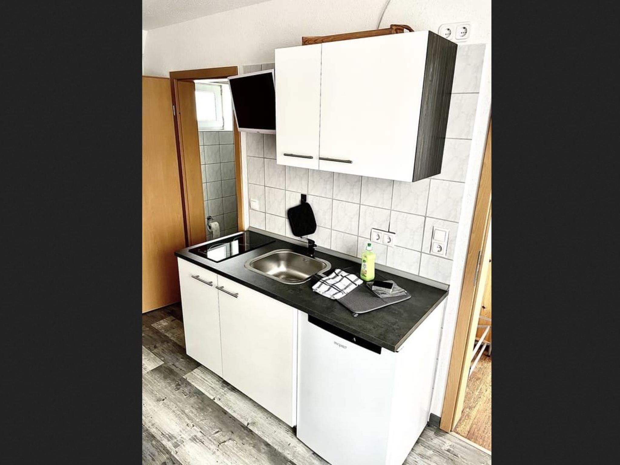 Im Erdgeschoss befindet sich der Wohn- und Kochbereich, welcher mit einer Pantry-Küchenzeile mit 2-Kochstellen-Ceranfeld, Kühlschrank mit Gefrierfach, Wasserkocher, Kaffeemaschine, Toaster und Spüle sowie einem Ecksofa (Schlafcouch) und Flachbild-TV ausgestattet ist. Des Weiteren befindet sich im Erdgeschoss das Badezimmer mit Dusche/WC und Fön.