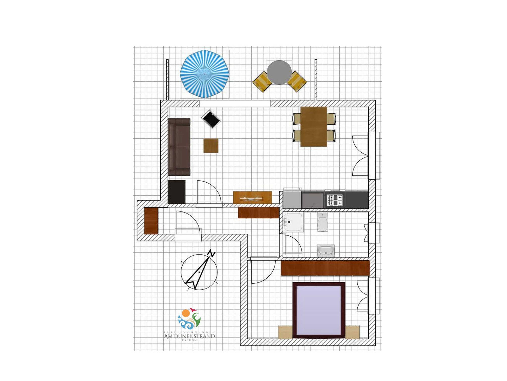 Die modern ausgestattete 2 Zimmer Ferienwohnung liegt in ruhiger und bester Lage direkt an der Strandpromenade von Heringsdorf. Die helle Wohnung mit Südwestbalkon befindet sich in der zweiten Etage (Dachgeschoss) des Hauses Ferienidyll an der Düne. Das Wohnzimmer verfügt über einen Flachbildfernseher und eine Kompaktanlage. Ein kostenloses WLAN-Netzwerk steht Ihnen zur Verfügung. Vom Gartengrundstück kommen Sie direkt auf die Strandpromenade und an den Strand (15 m). Auf dem Grundstück steht Ihnen ein PKW-Stellplatz und ein abschließbarer Fahrradschuppen zur Verfügung. Die Zentren von Heringsdorf und Bansin erreichen Sie fußläufig in ca. 15 Minuten. Ein Strandkorb- und Fahrradverleih ist in unmittelbarer Nähe.
