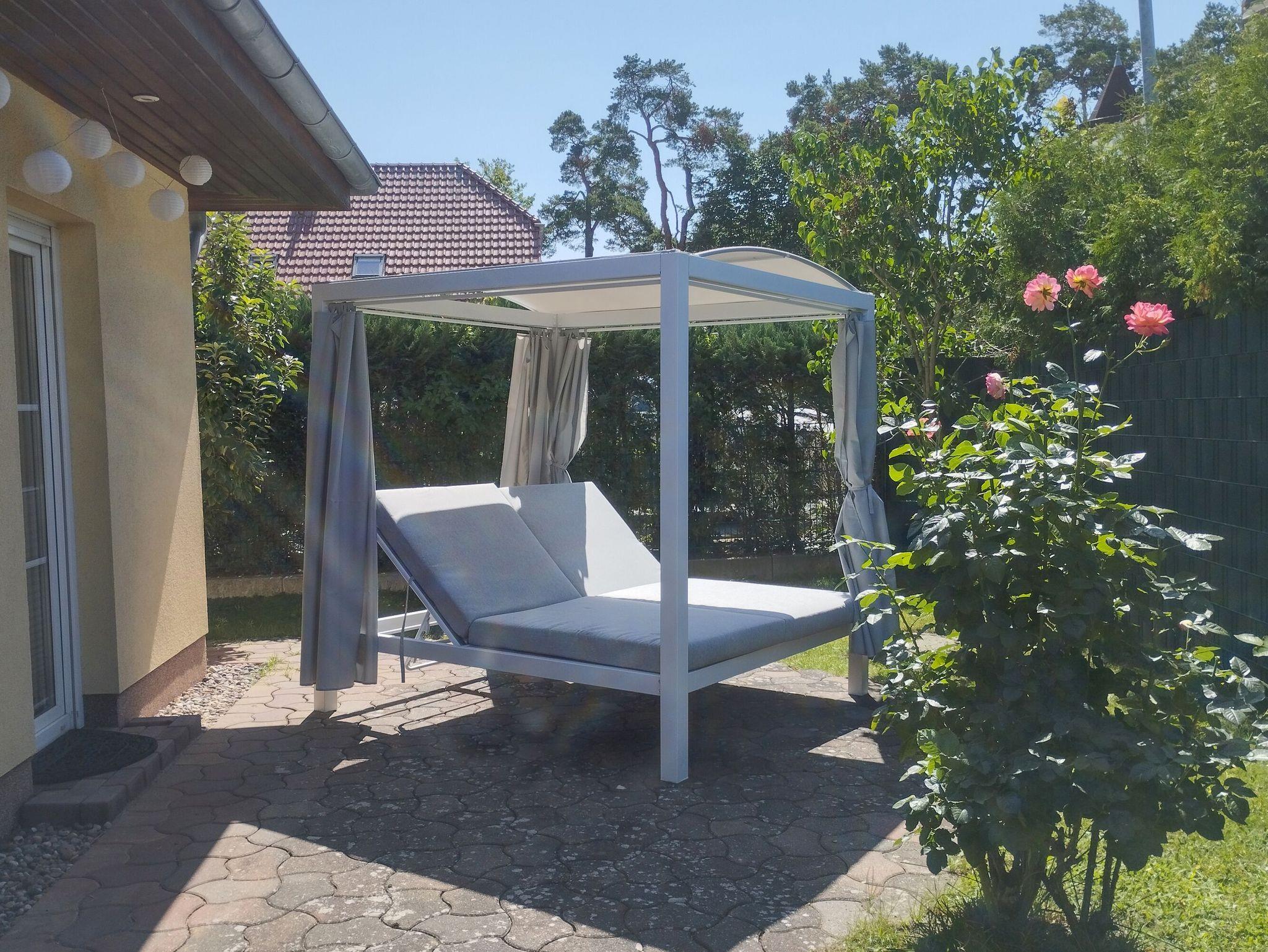 • Terrasse: Tisch, 4 Stühle mit Auflagen, 2er Strandkorb, Grill, Sonnenschirm