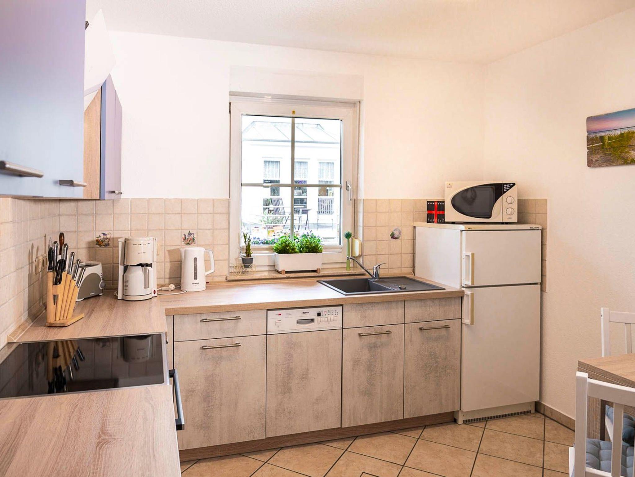 • Küche: E-Herd mit Ceranfeld und Backofen, Kühlschrank mit Gefrierfach, Spülmaschine, Mikrowelle, Dunstabzugshube, Toaster, Wasserkocher, Kaffeemaschine, Küchenhandtücher, Kochutensilien