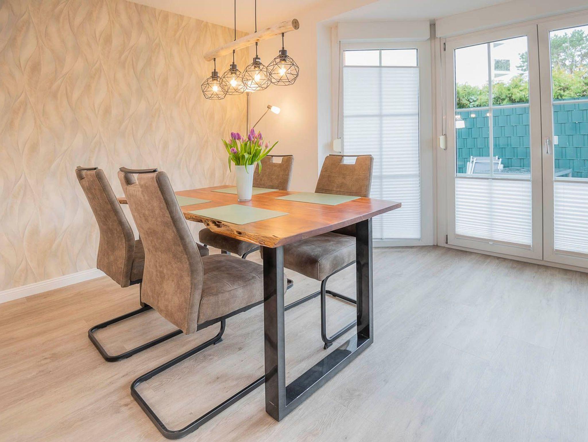 • Wohnzimmer: Bietet WLAN, einen Flat-TV und einen Esstisch für sechs Personen, neben einer Couch mit Bettfunktion.