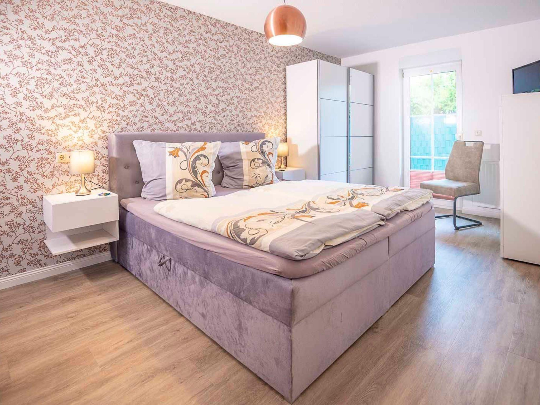 • Schlafzimmer 1: Doppel-Boxspringbett 200x180cm, Kleiderschrank, Kommode, Flat-TV