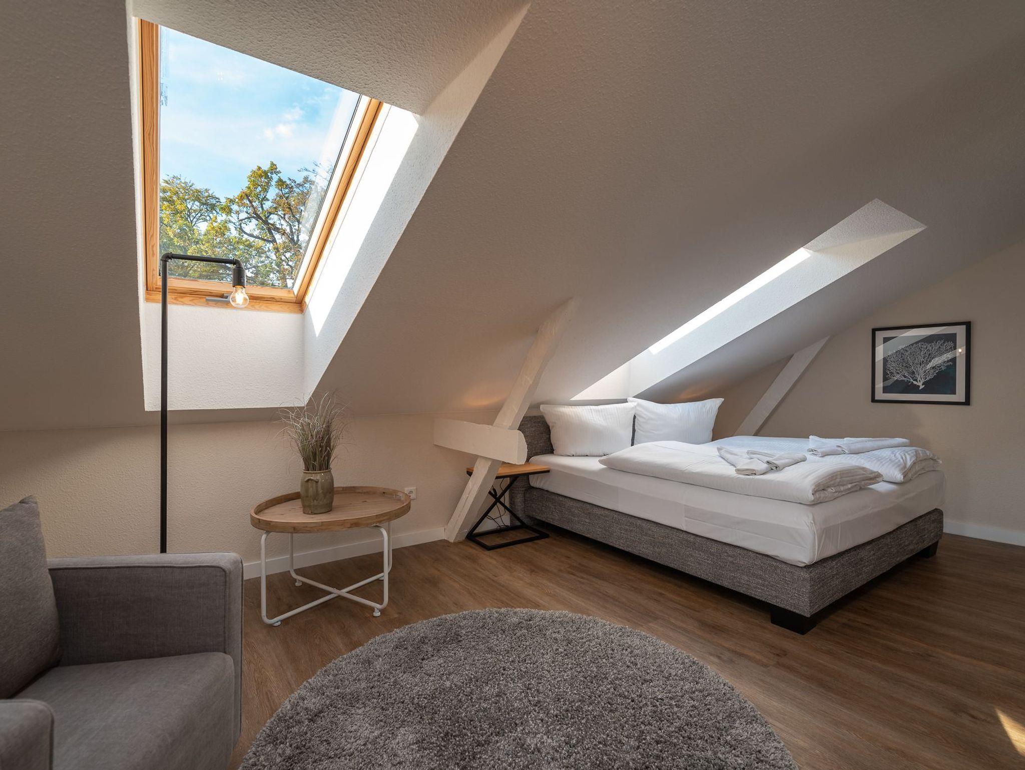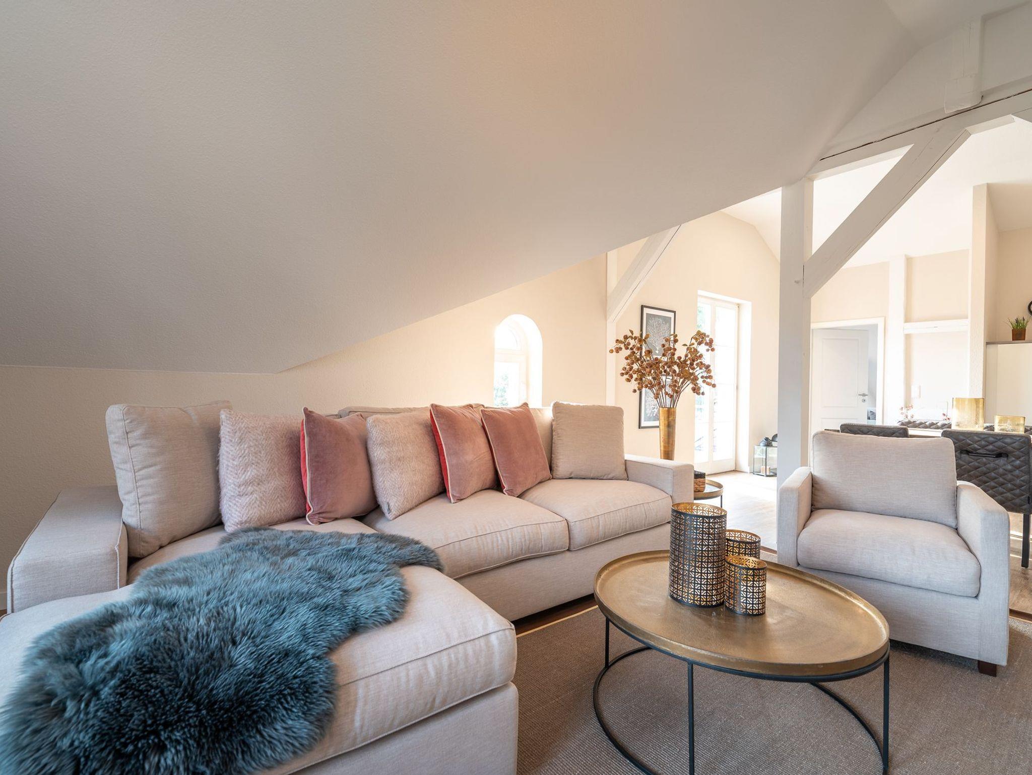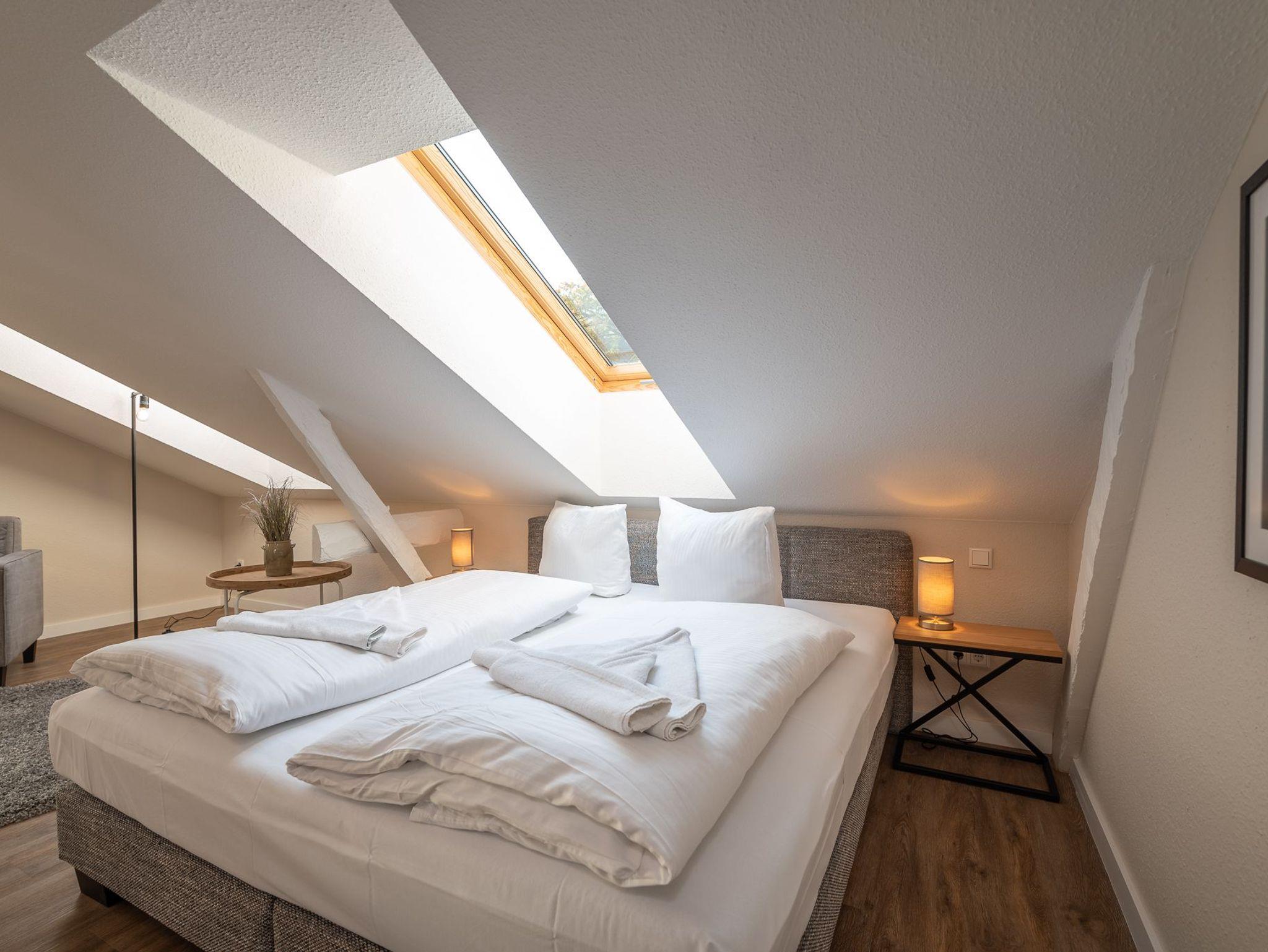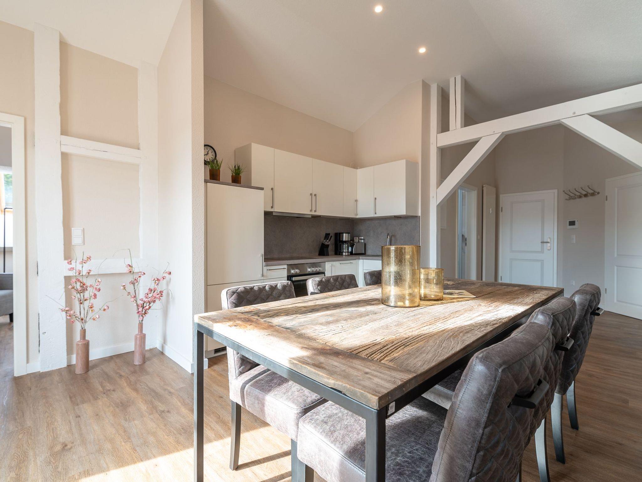 Diese außergewöhnlich geschnittene Dachgeschosswohnung befindet sich in einer außergewöhnlichen Villa im Herzen von Seebad Heringsdorf. Das 1898 erbaute Haus wurde 2017 aufwendig saniert und der Charme aus kaiserlichen Zeiten gekonnt mit dem exklusiven Wohnkomfort der heutigen Zeit kombiniert. Das 106qm große Appartement empfängt Sie mit einem hellen Wohn-Essbereich. Farben wie Sand und Beige, dazu eine hochwertige Möblierung sorgen für ein exklusives Wohngefühl. Der großzügige Wohnbereich verfügt über einen Flat-TV und eine gemütliche Sitzgruppe, die zum Schlafsofa umfunktioniert werden kann und Platz für zwei Aufbettungen bietet. Weitere 4 Personen finden in den beiden Schlafzimmern mit Boxspringbetten und Flat-TV ausreichend Raum für einen erholsamen Schlaf. Außerdem verfügen die Fenster über einen Sonnenschutz und Verdunklungsrollos. Zwei Duschbäder mit WC, Waschtisch und Dusche sind jeweils mit den Schlafzimmern verbunden und bieten somit Privatsphäre für Reisen mit der Familien oder Freunden. Ein kleiner Balkon ist vom Wohnzimmer aus zu erreichen. Genießen Sie den Blick über die Dächer des Seebades vom Echtholztisch aus, der Platz für bis zu 6 Personen bietet. Keine Wünsche lässt die voll ausgestattete Küche mit Herd, Backofen, Kühlschrank, Spülmaschine, Senseo-Kaffeemaschine sowie Kleinküchengeräte offen. Ihre Fahrräder finden im Fahrradständer am Haus oder im Gemeinschaftsraum Platz. Kostenfreies W-Lan rundet das Appartement ab. Bei Ihrer Anreise sind die Betten bereits bezogen und Handtücher liegen für Sie bereit.