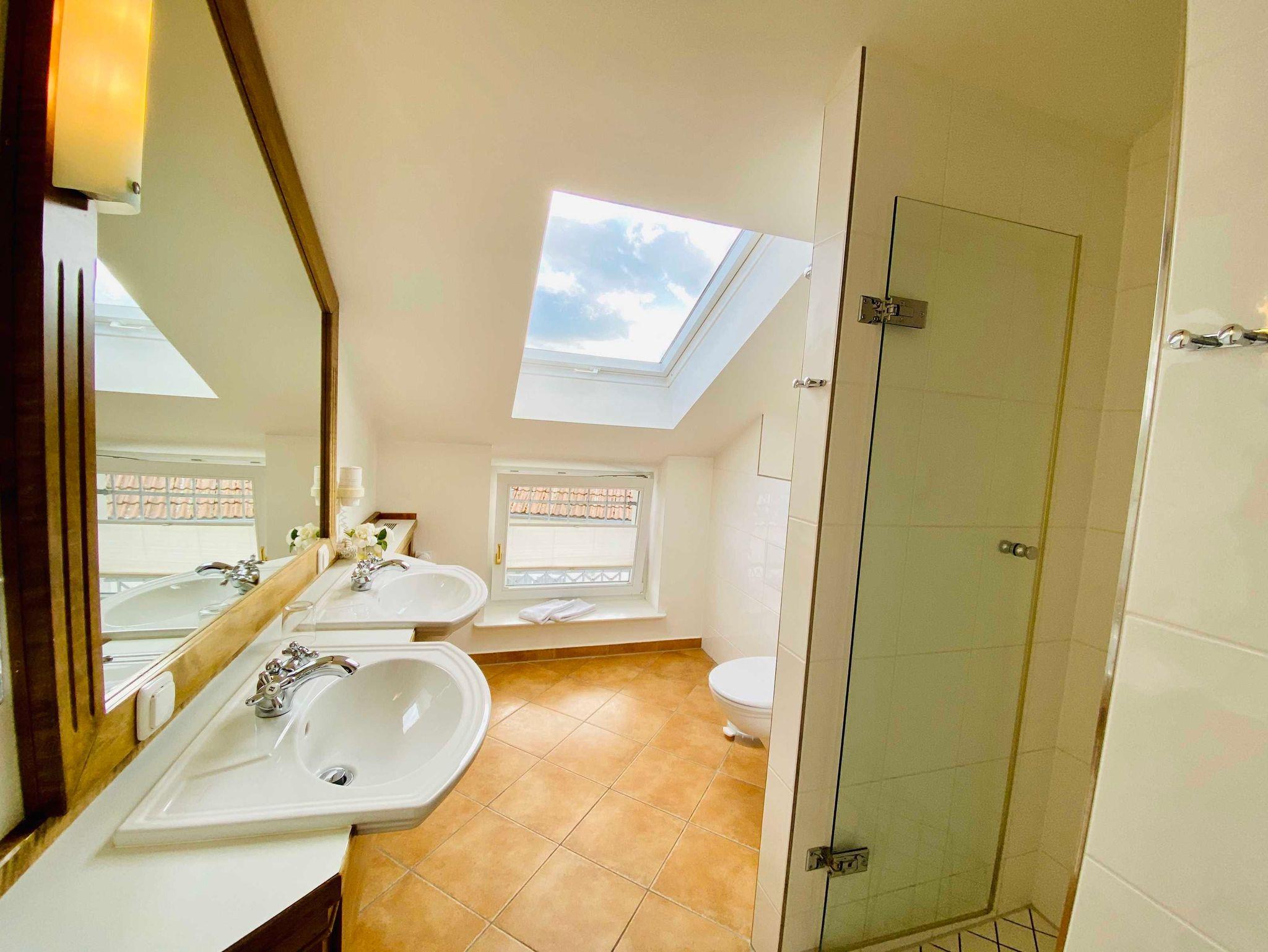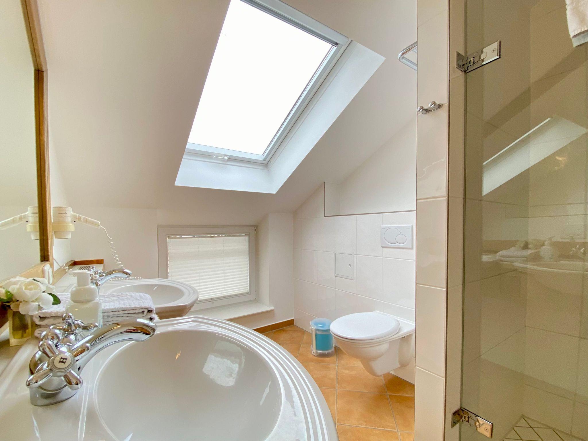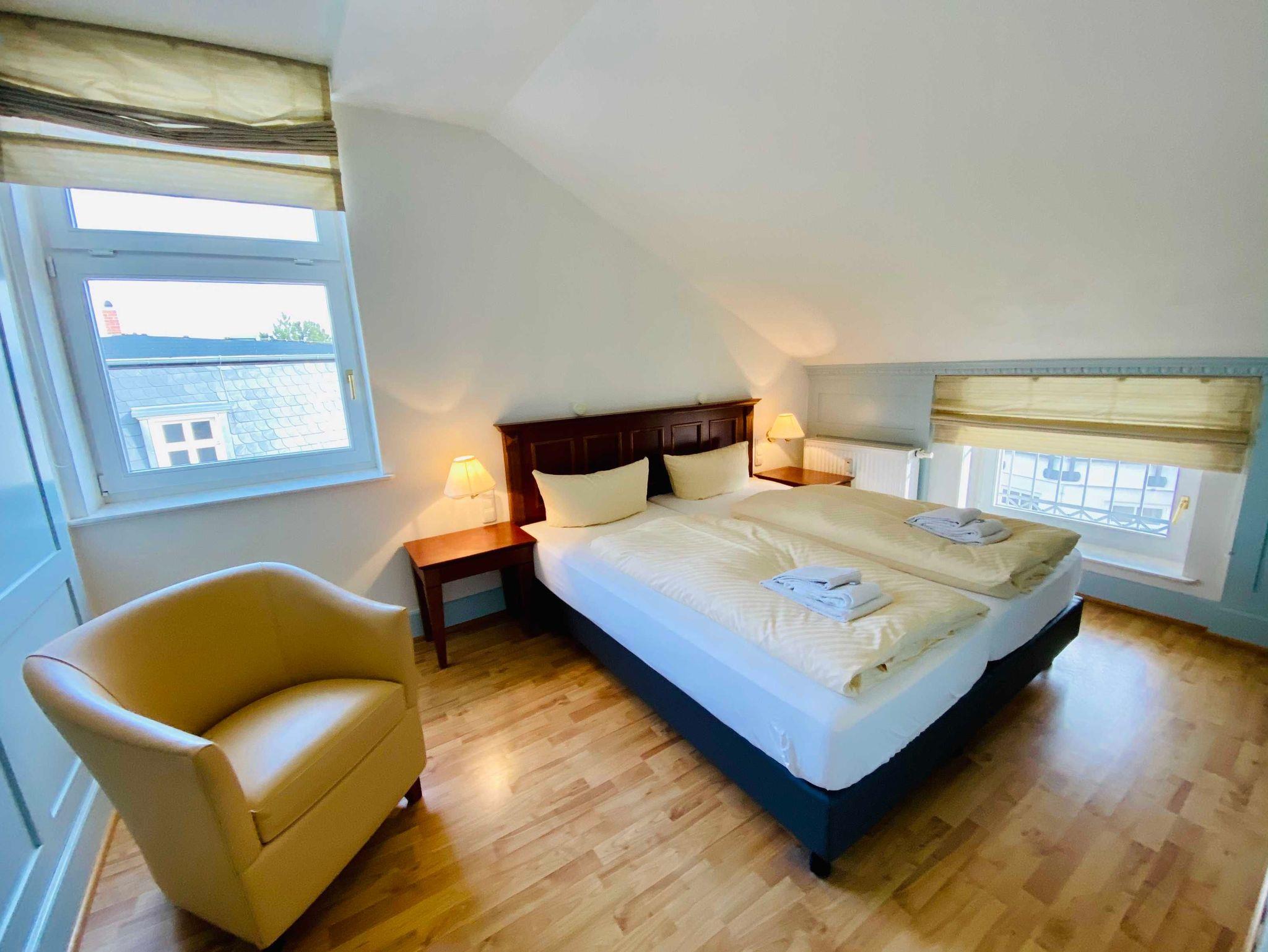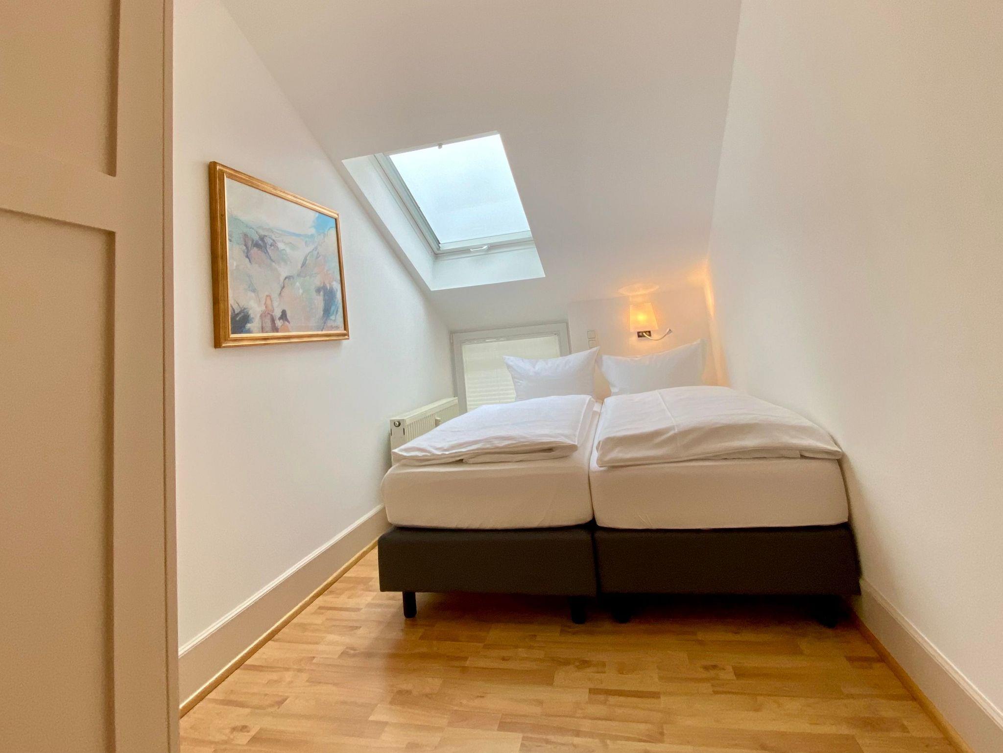 Urlaub in der Bäderstilvilla Usedom: Das bedeutet Komfort im Apartment und Spaß im Wellnessbereich inklusive. Die komfortable Ferienwohnung 31 befindet sich im zweiten Obergeschoss der Villa Usedom und ist über das historische Treppenhaus zu erreichen. Sie besteht aus einem gemütlichen Wohnraum mit offener Küchenzeile, zwei Schlafzimmern mit Doppelbett bzw. zusammenschiebbaren Einzelbetten und einem Bad mit Dusche und Doppelwaschtisch. Hochwertige Einbaumöbel bieten viel Platz für Ihre Kleidung. Genießen Sie von hier oben den Blick über die Dächer von Heringsdorf. Die Ferienwohnung eignet sich als Domizil für einen Strandurlaub oder auch für einen Wellnessurlaub, denn Schwimmbad und Finnische sowie Bio-Sauna in der neu gebauten Nachbarvilla stehen Ihnen kostenfrei zur Verfügung. (Öffnungszeiten) Zum Apartment 31 gehört ein Tiefgaragenplatz. Bitte achten Sie auf die maximale Einfahrtshöhe von 2,00m.