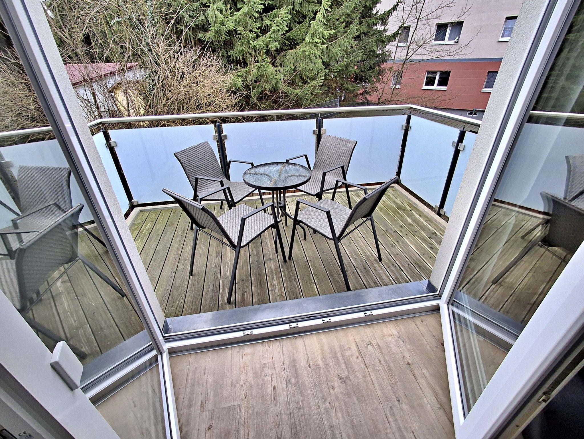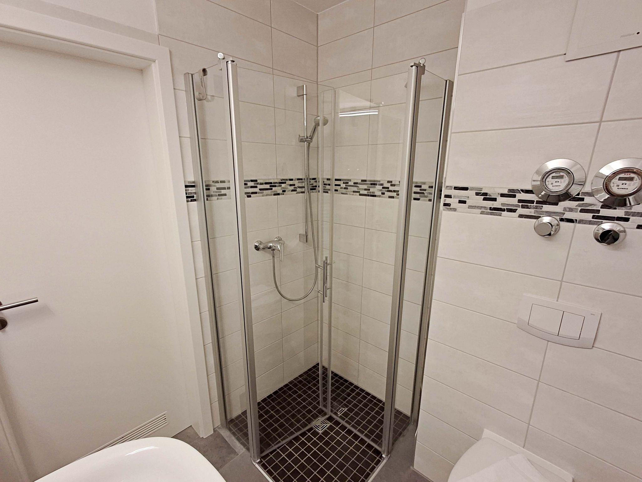 In den beiden Schlafzimmern erwarten Sie komfortable Doppelbetten, wobei das etwas kleinere Schlafzimmer mit einem Bett von 1,40 m Breite und 2,00 m Länge ausgestattet ist. Das Badezimmer mit Dusche und WC sorgt für zusätzlichen Komfort. Genießen Sie die Sonne auf dem möblierten Balkon, den Sie direkt vom Wohnzimmer aus betreten können. Und keine Sorge um Ihr Auto - der nummerierte Parkplatz befindet sich direkt am Haus. Ihre Fahrräder können Sie sicher im Fahrradschuppen unterstellen.