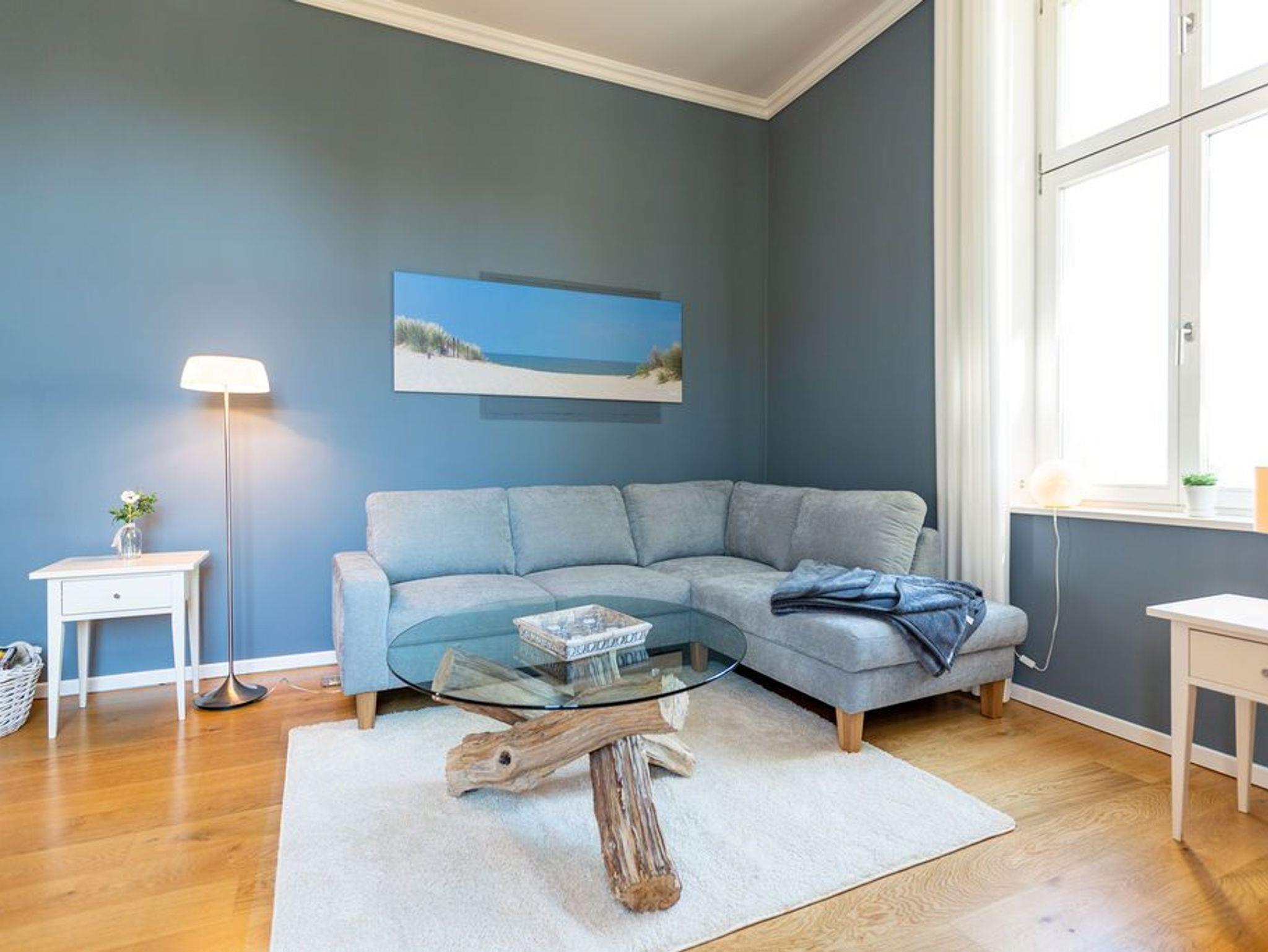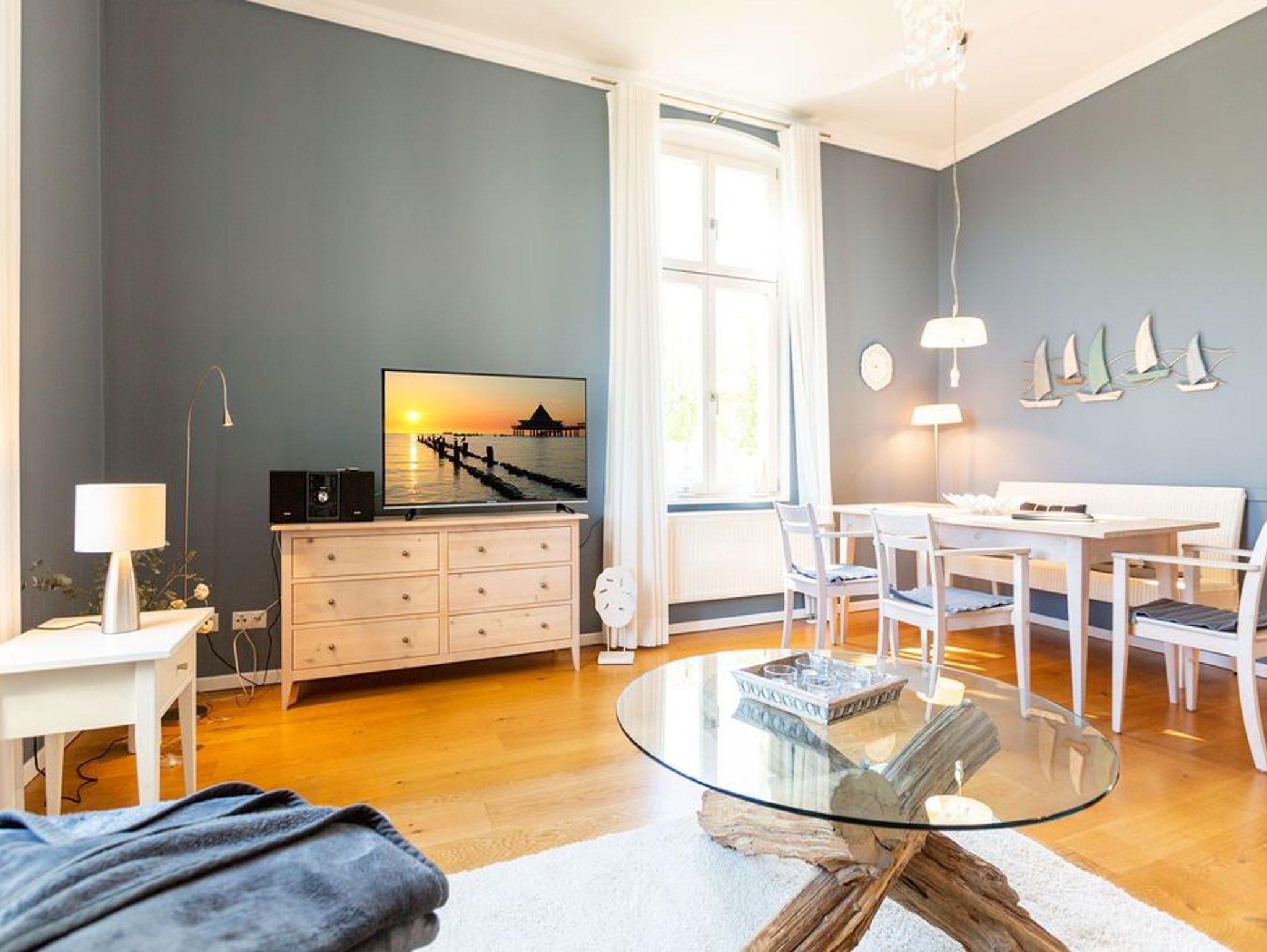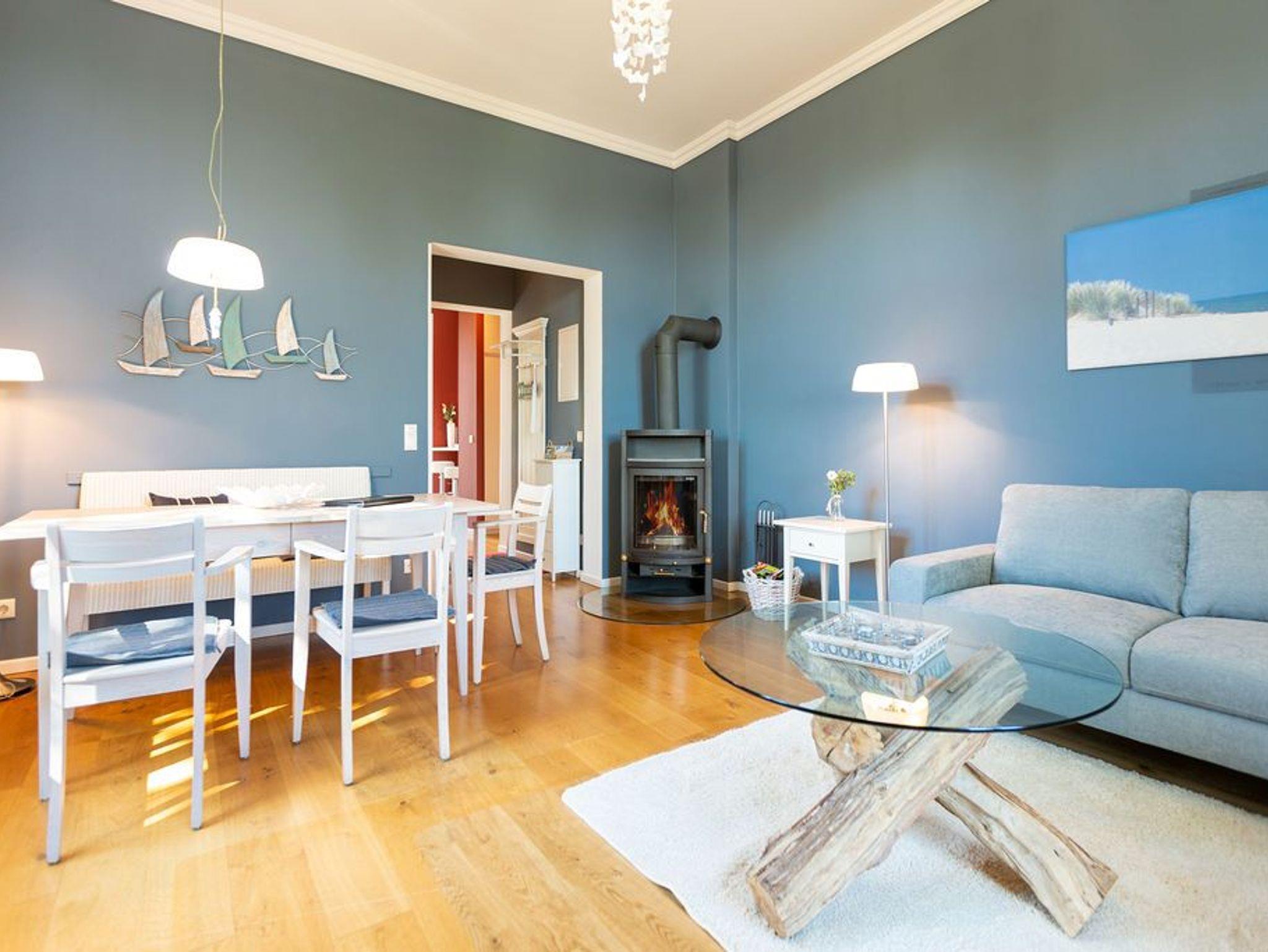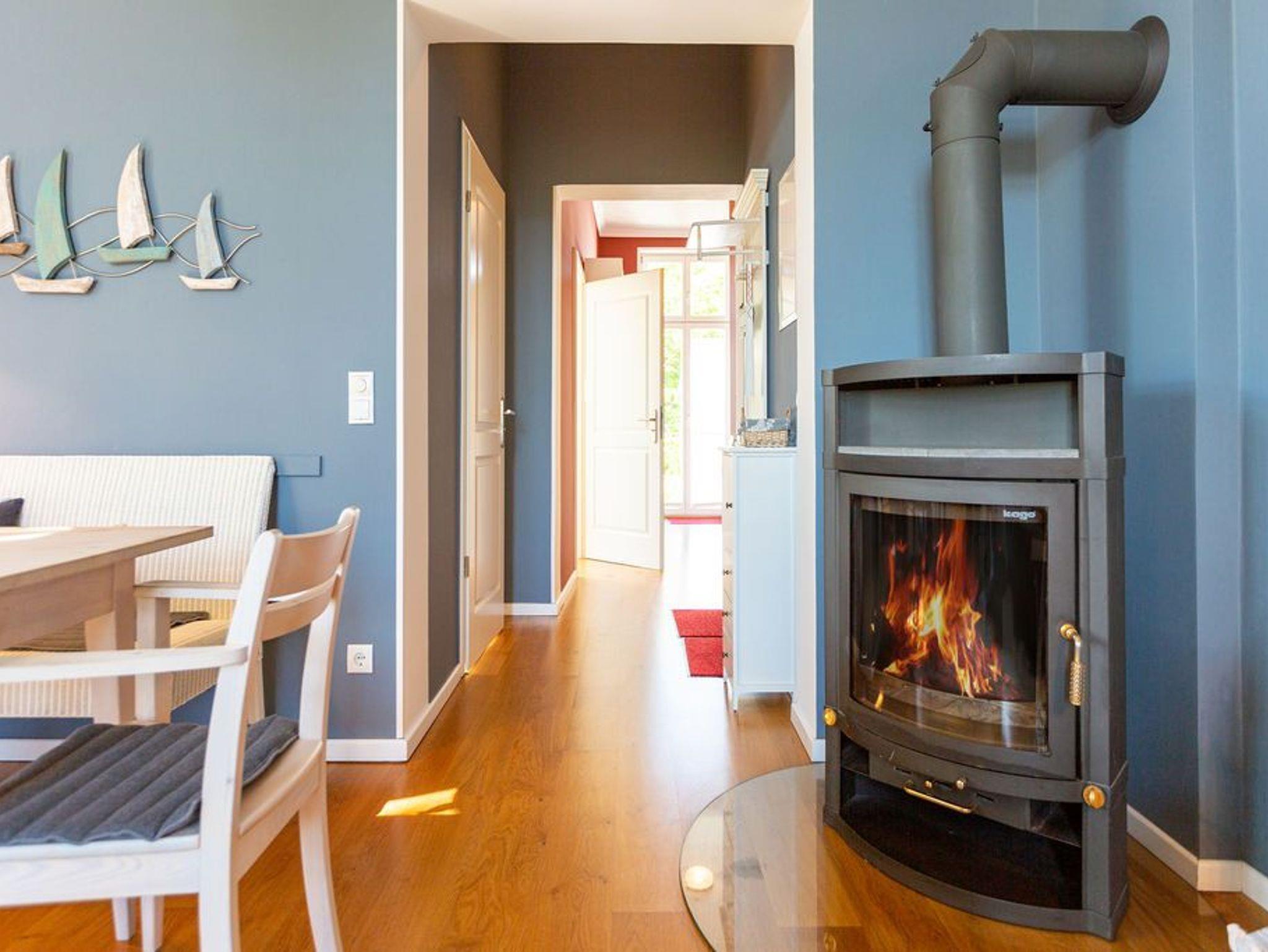 Sie öffnen die Tür und sind sofort beeindruckt: hohe Räume mit gekonnter Farbgestaltung, wunderschöne Details und viel Geschmack. Dazu stilvolle, aber gemütliche Möbel. Die Ferienwohnung 6 im 1.Obergeschoss des Hauses wird sicher auch zu Ihrem Liebling. Der Wohnbereich mit bequemer Couch, Flat-TV, DVD und Essplatz, das Schlafzimmer mit Boxspringdoppelbett und die komplett ausgestattete Küche bieten 2 Personen Platz zum Wohlfühlen. Auf dem Südbalkon genießen Sie die Usedomer Sonne. Und an kalten Tagen wird es durch den knisternden Kaminofen oder in der Infrarotsauna (gegen Gebühr) so richtig warm und kuschelig. Für Ihren Komfort sind die Betten bei der Anreise bezogen und Handtücher liegen bereit (Erstausstattung).