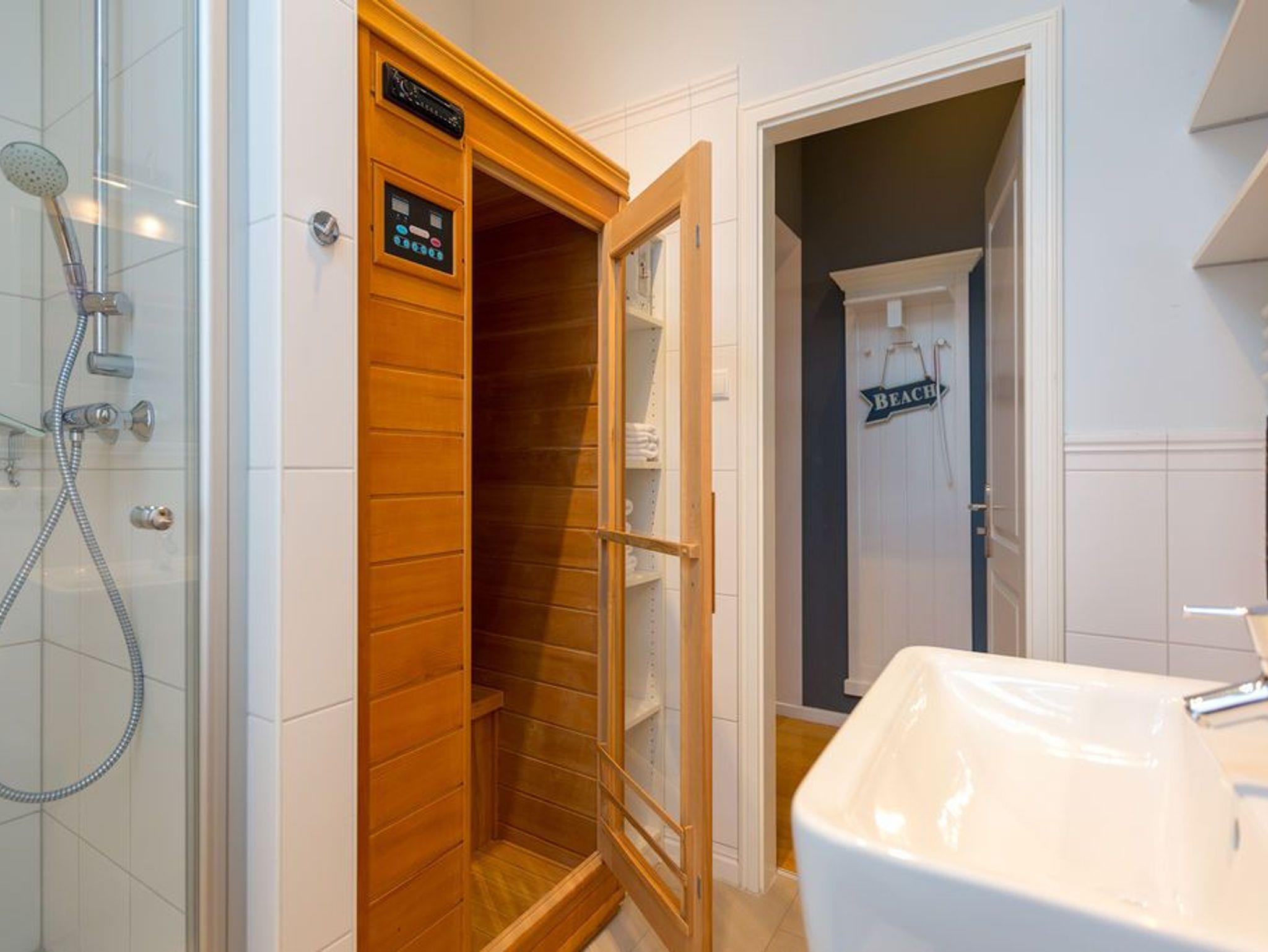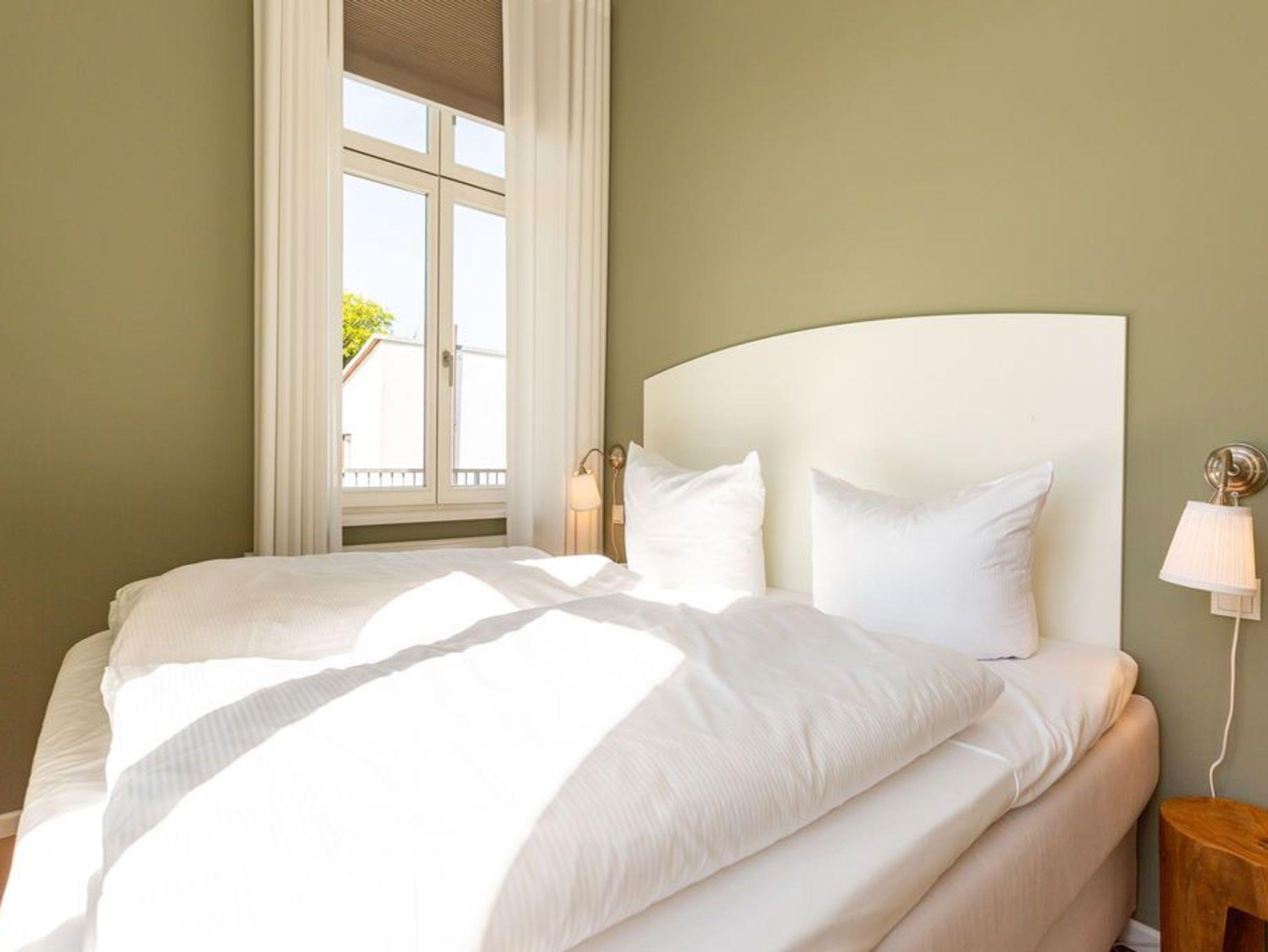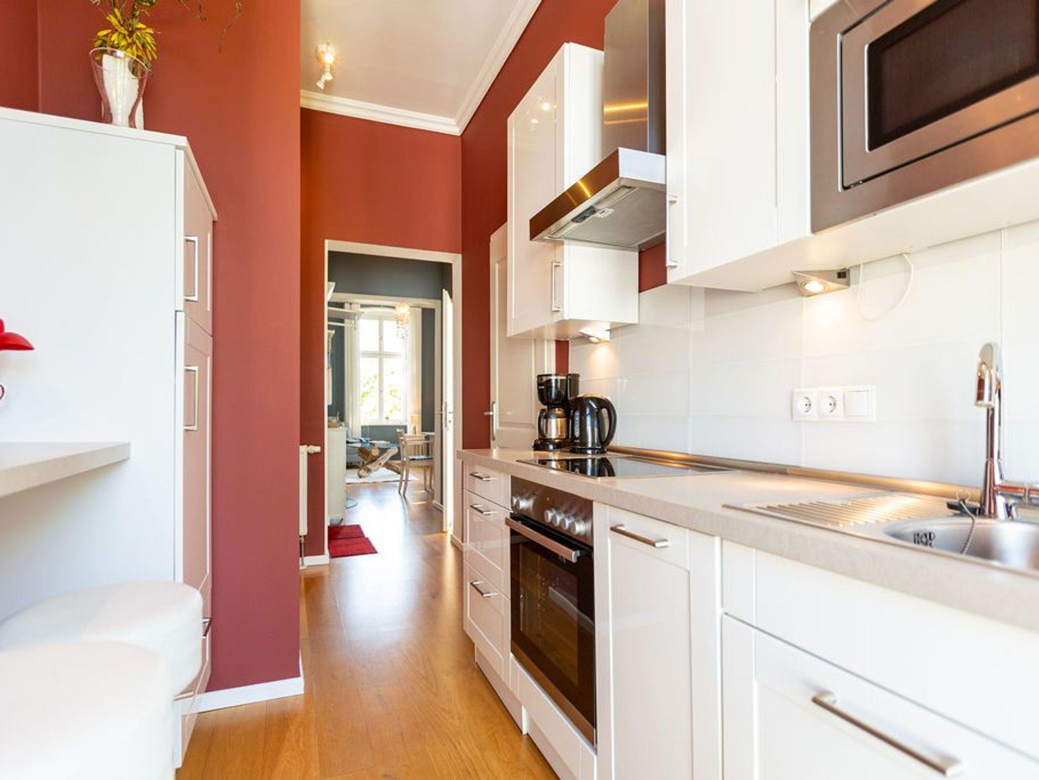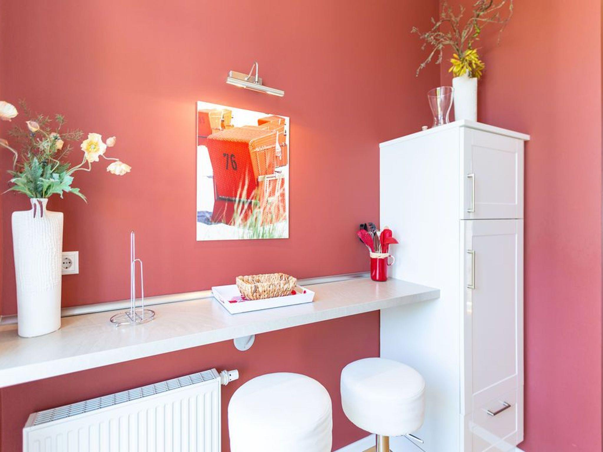 Sie öffnen die Tür und sind sofort beeindruckt: hohe Räume mit gekonnter Farbgestaltung, wunderschöne Details und viel Geschmack. Dazu stilvolle, aber gemütliche Möbel. Die Ferienwohnung 6 im 1.Obergeschoss des Hauses wird sicher auch zu Ihrem Liebling. Der Wohnbereich mit bequemer Couch, Flat-TV, DVD und Essplatz, das Schlafzimmer mit Boxspringdoppelbett und die komplett ausgestattete Küche bieten 2 Personen Platz zum Wohlfühlen. Auf dem Südbalkon genießen Sie die Usedomer Sonne. Und an kalten Tagen wird es durch den knisternden Kaminofen oder in der Infrarotsauna (gegen Gebühr) so richtig warm und kuschelig. Für Ihren Komfort sind die Betten bei der Anreise bezogen und Handtücher liegen bereit (Erstausstattung).