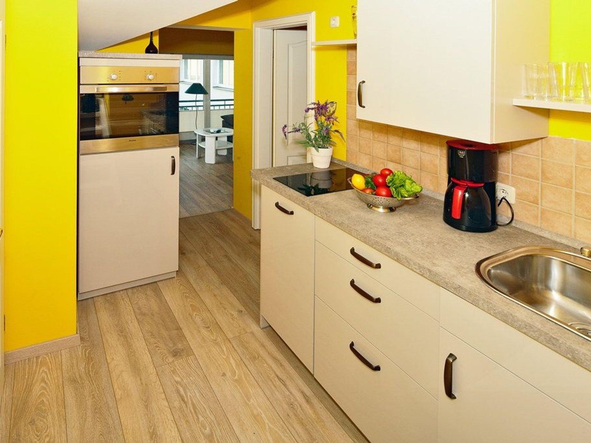 Treten Sie ein, hinter der Eingangstür nur wenige Stufen hinauf sind Sie in Ihrem Urlaubsquartier und in Ihrem wohlverdienten Urlaub angekommen. Bis zu drei Personen können in dem modernen Appartement gemeinsame Urlaubstage verbringen. Der gemütliche und helle Wohnbereich mit bequemer Couch und Flat-TV, bodentiefen Fenstern und Essplatz lädt zu geselligen und unterhaltsamen Stunden ein. Auf dem nach Nordwesten ausgerichteten Balkon können Sie einen erlebnisreichen Urlaubstag bei einem Glas Wein ausklingen lassen. In der offenen gestalteten Küche (Backofen, Geschirrspüler, Kühlschrank, Kaffeemaschine, Wasserkocher, Toaster) können Sie sich all Ihre Lieblingsspeisen zubereiten und anschließend den Geschirrspüler bequem den Abwasch erledigen lassen.