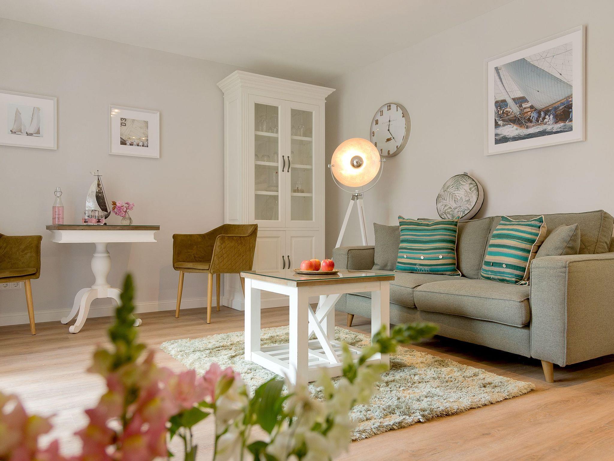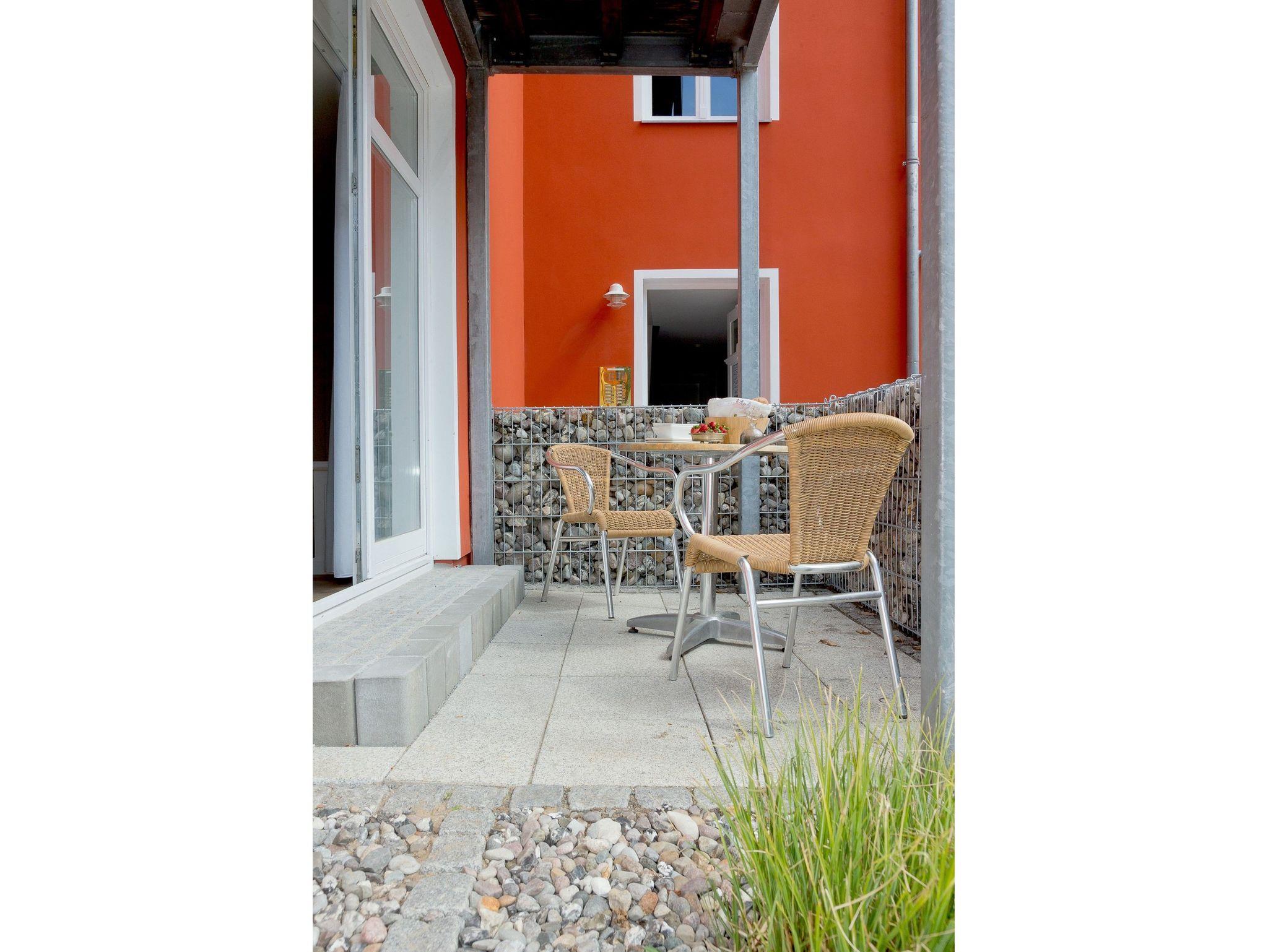Vom Wohnzimmer aus gelangen Sie auf Ihre private Terrasse in Südostlage, auf der Sie sonnig den Morgen begrüßen oder Ihren Urlaubstag auch im Freien ausklingen lassen können.