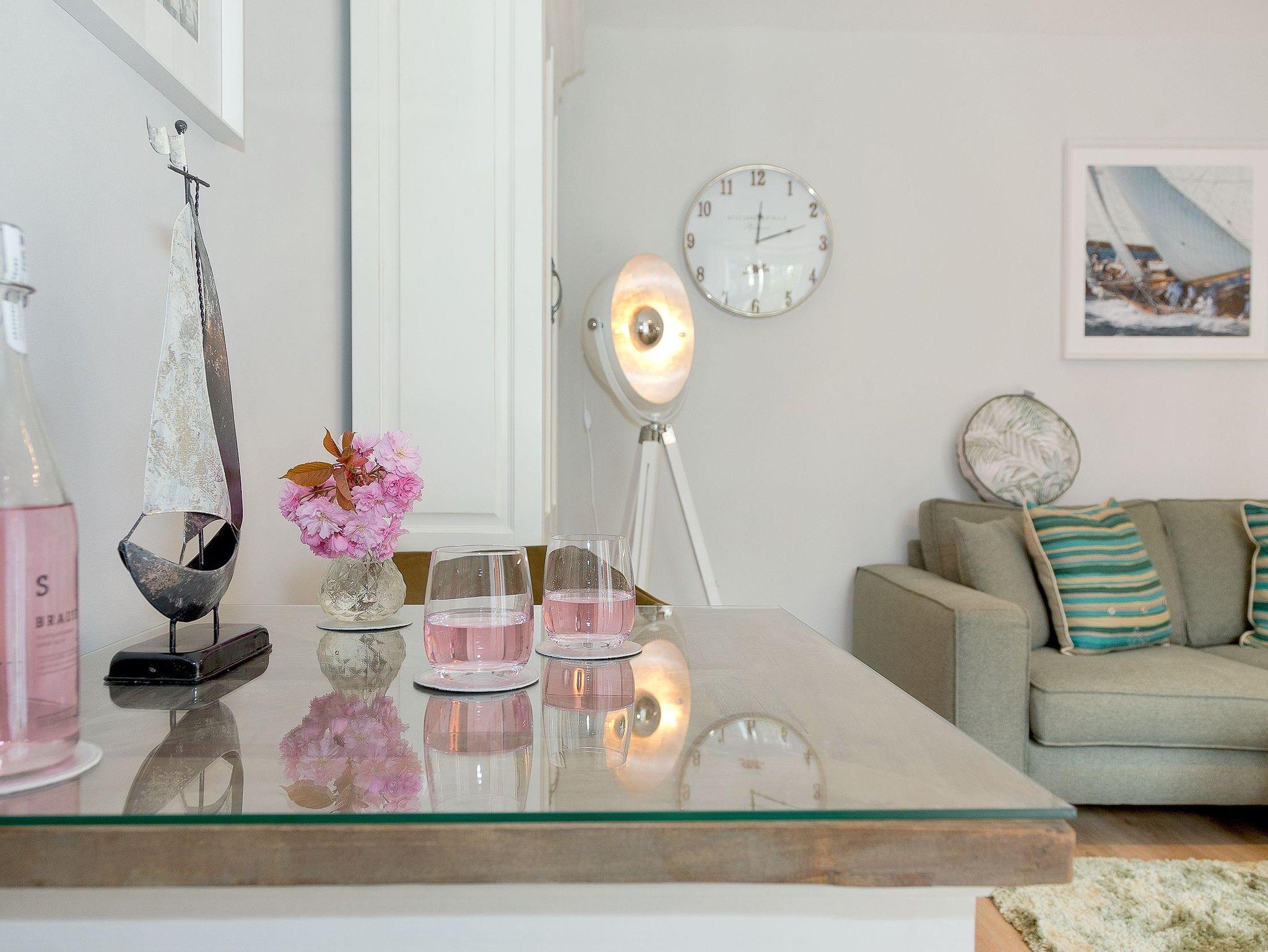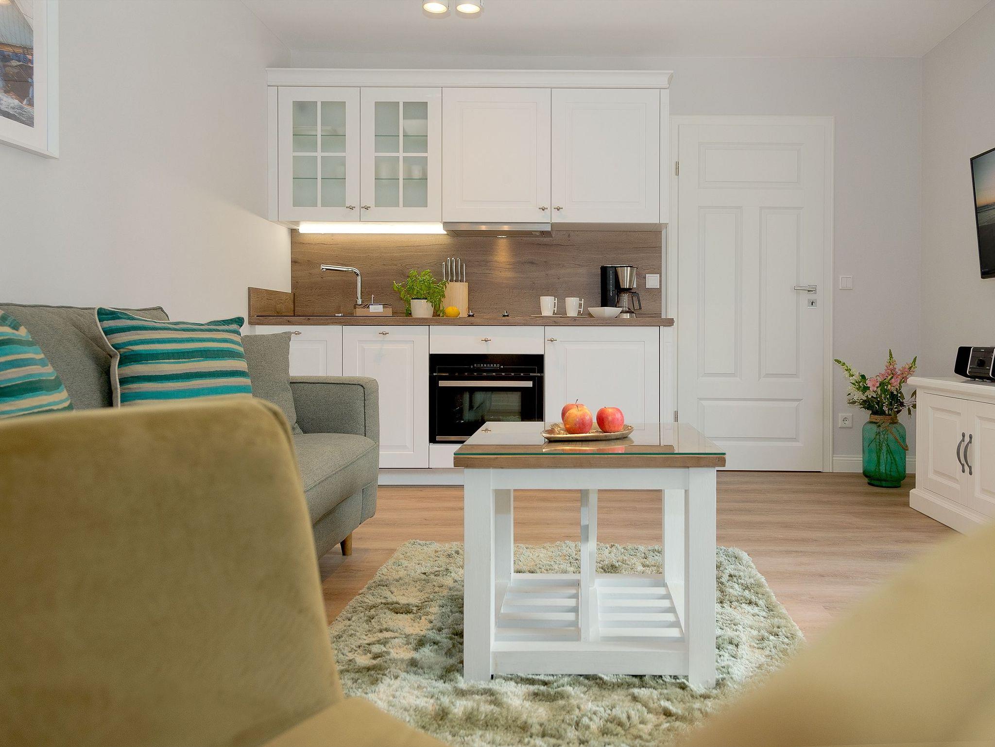 Unser Appartement 1 im Erdgeschoss ist ca. 37 qm groß und ideal für bis zu 2 Personen. Im kombinierten Wohnbereich finden Sie ein gemütliches Sofa, einen Esstisch mit 2 Stühlen und einen internetfähigen Flachbildfernseher.